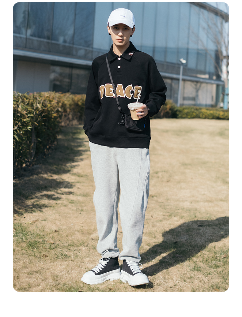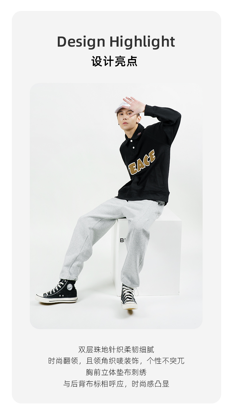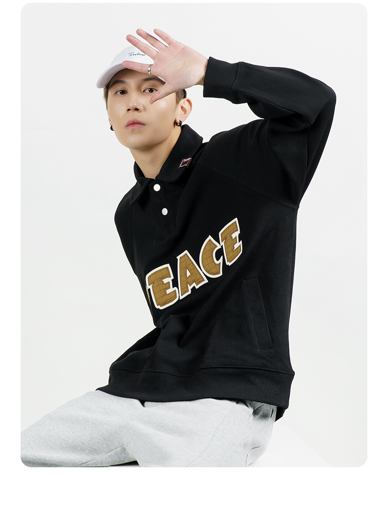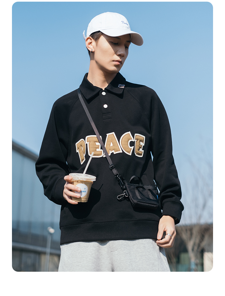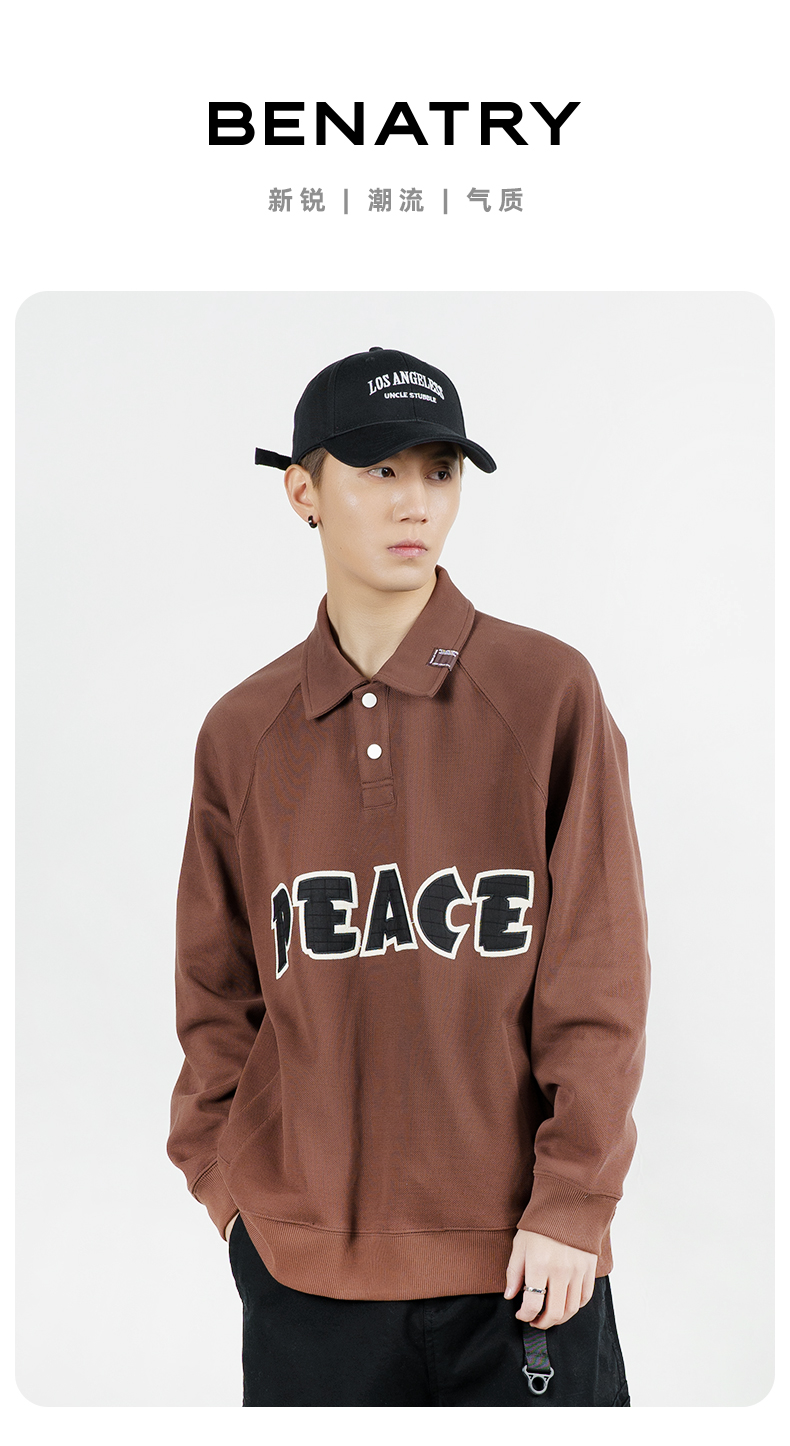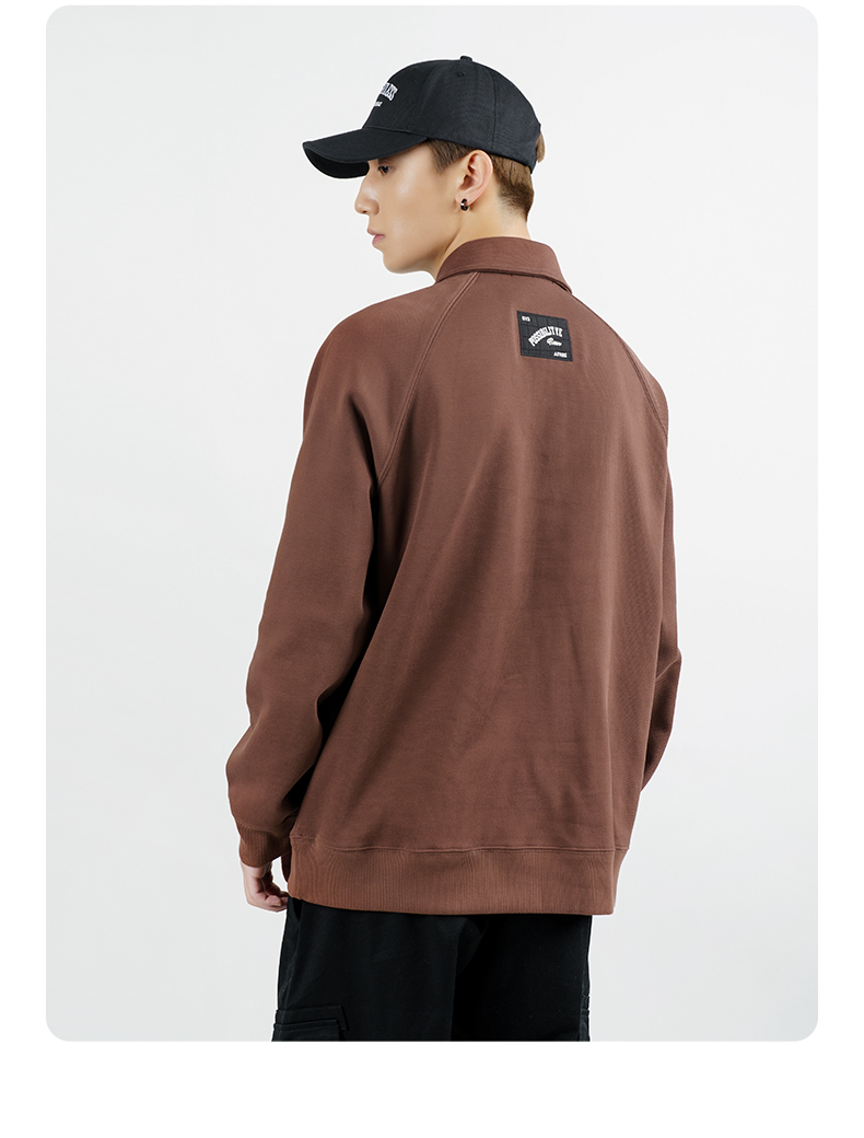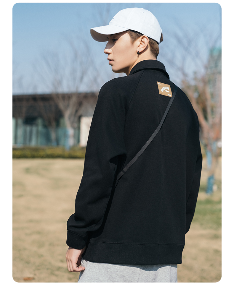 贝纳川翻领字母插袋男士插肩袖卫衣ECP124004