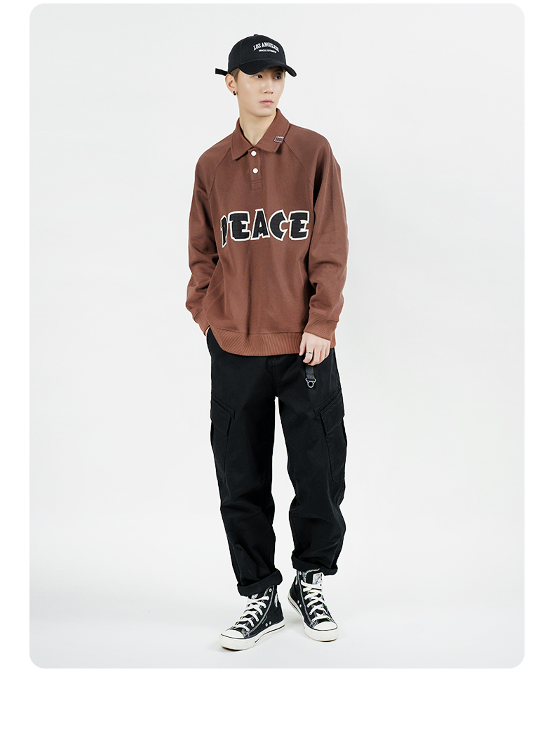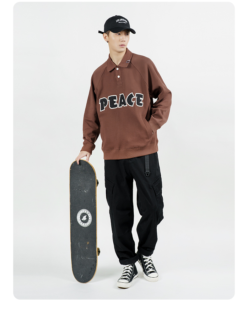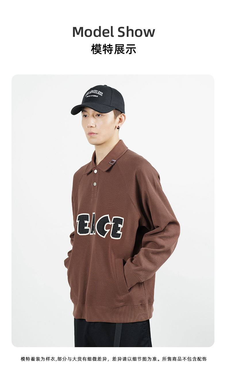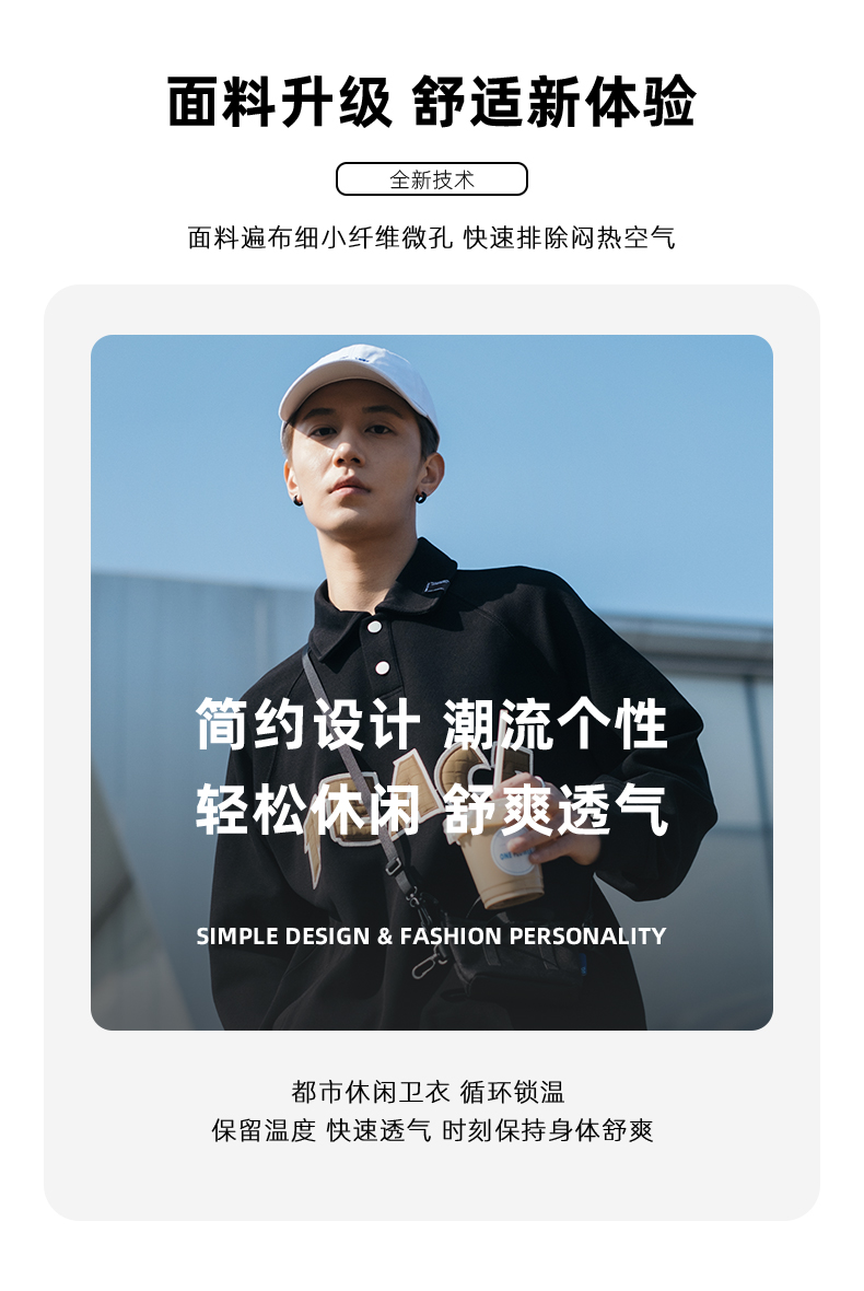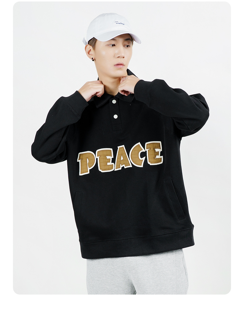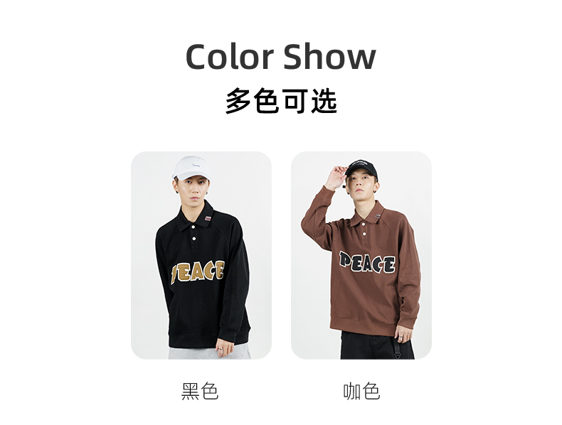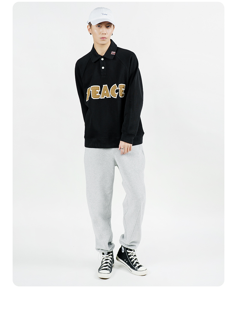 贝纳川翻领字母插袋男士插肩袖卫衣ECP124004