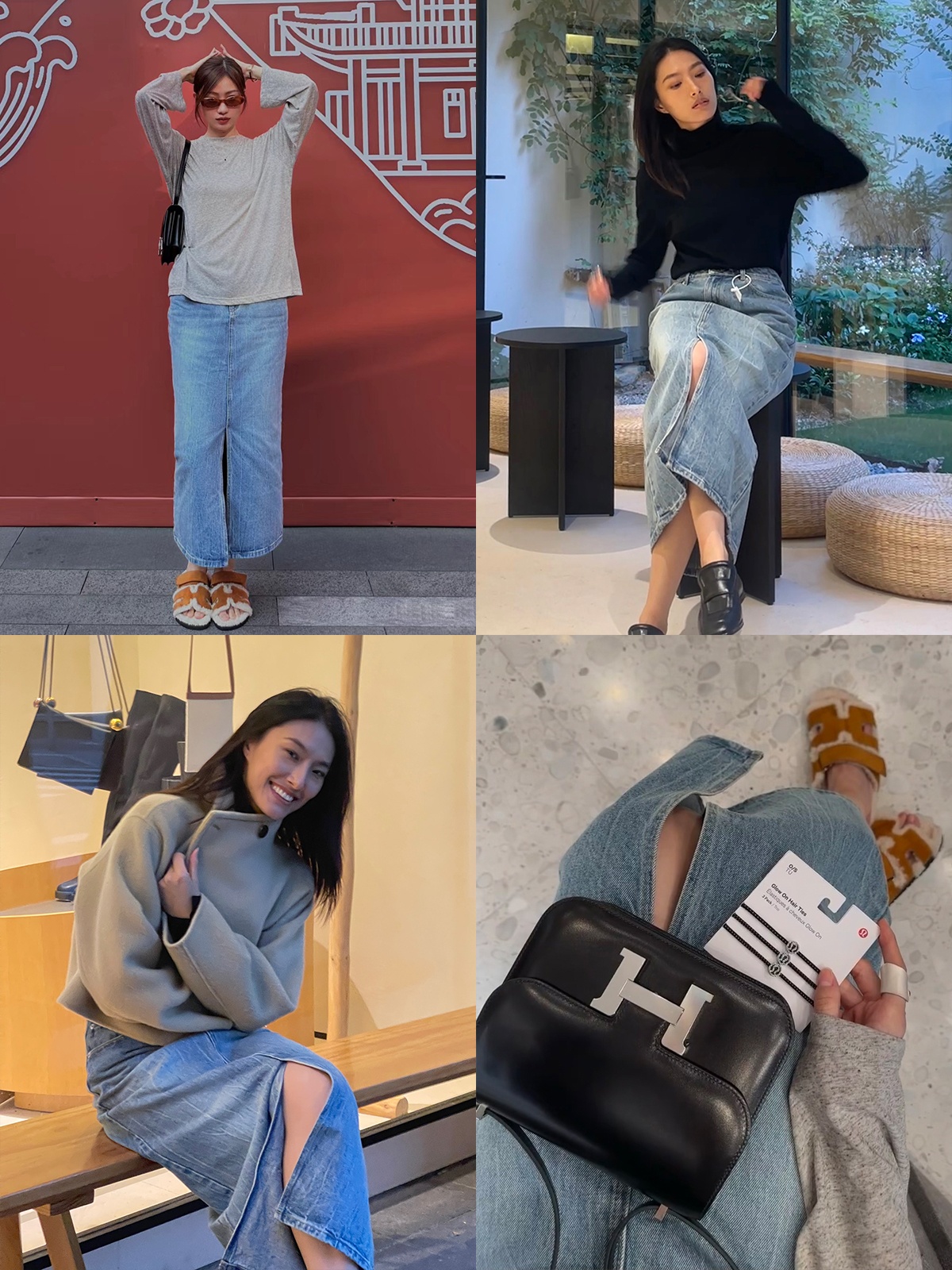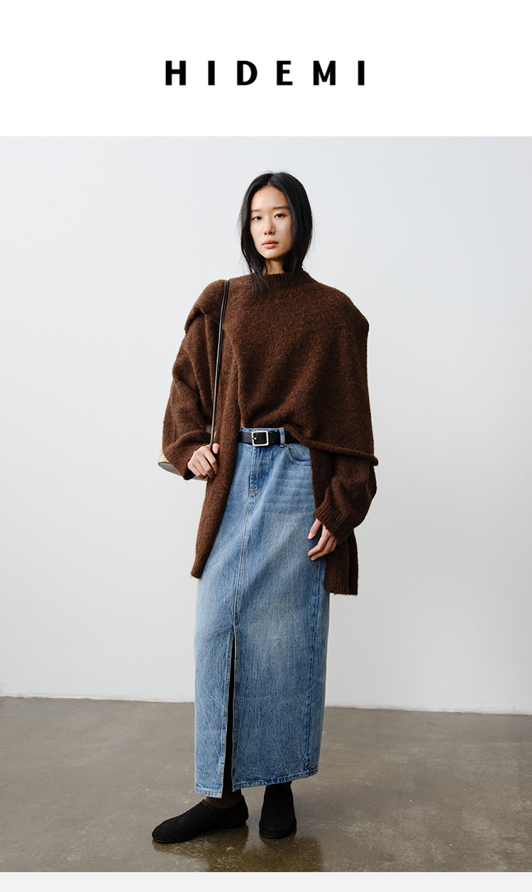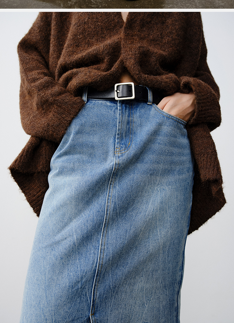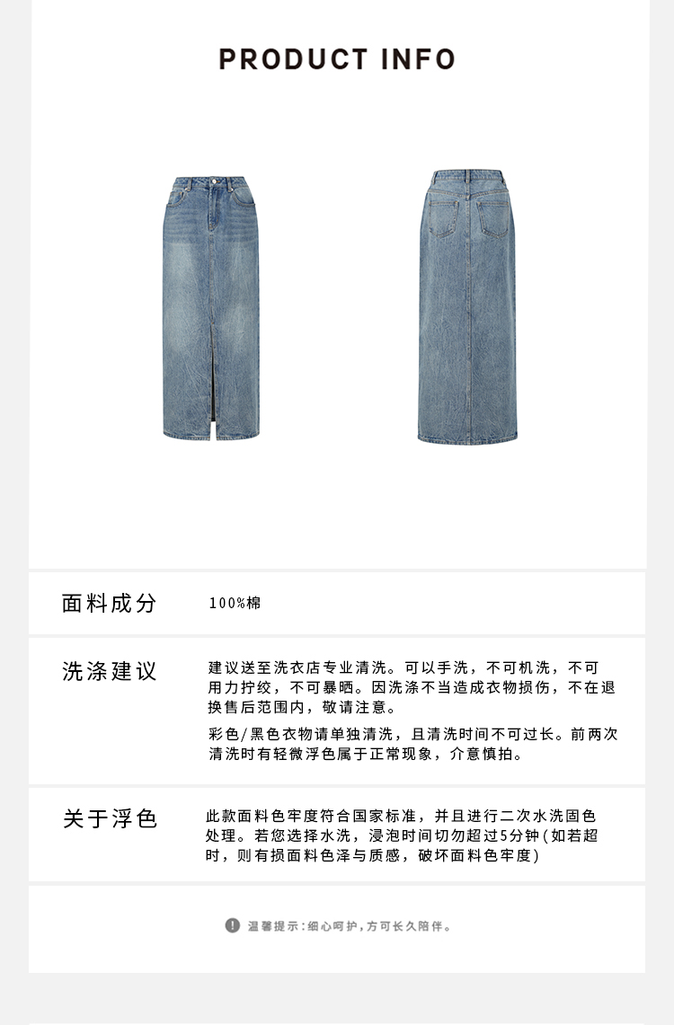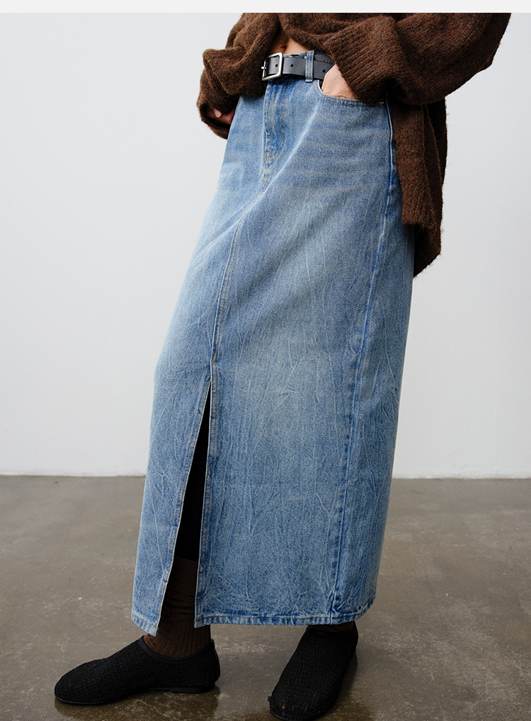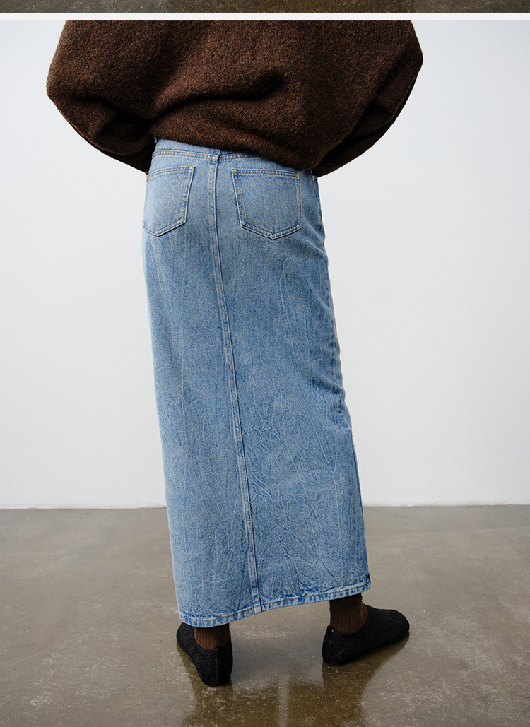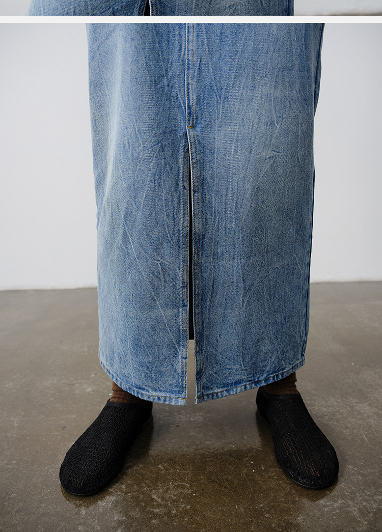 HIDEMI 水洗牛仔龟裂纹口袋开衩式丹宁系列半身裙