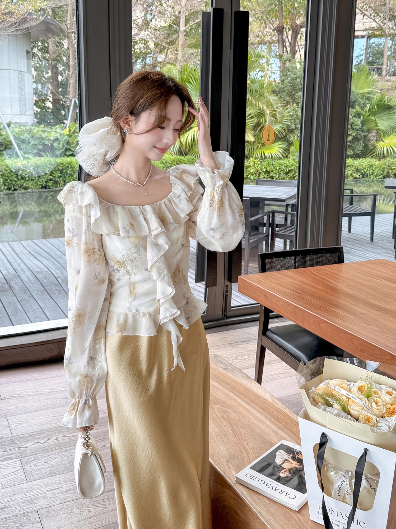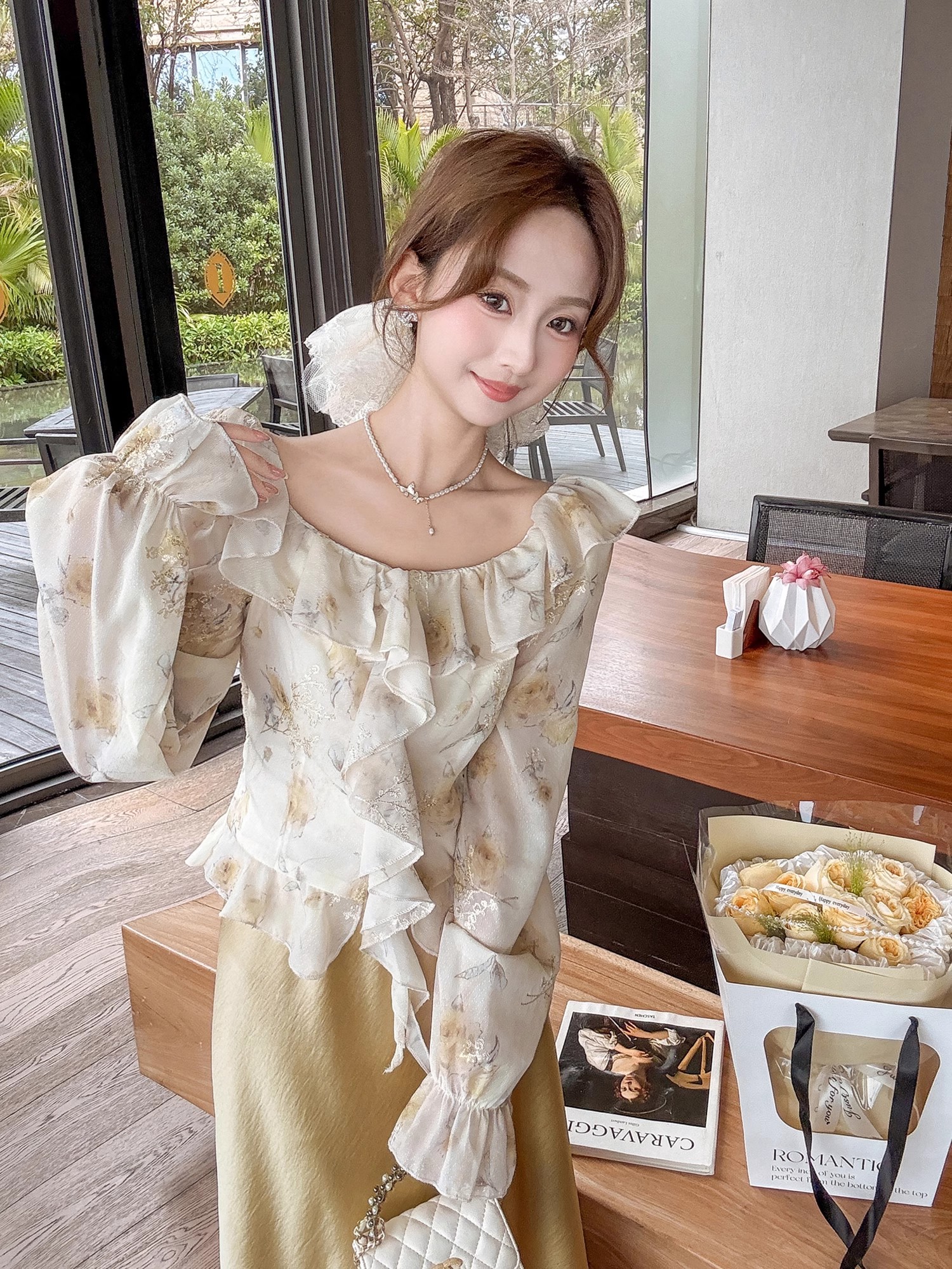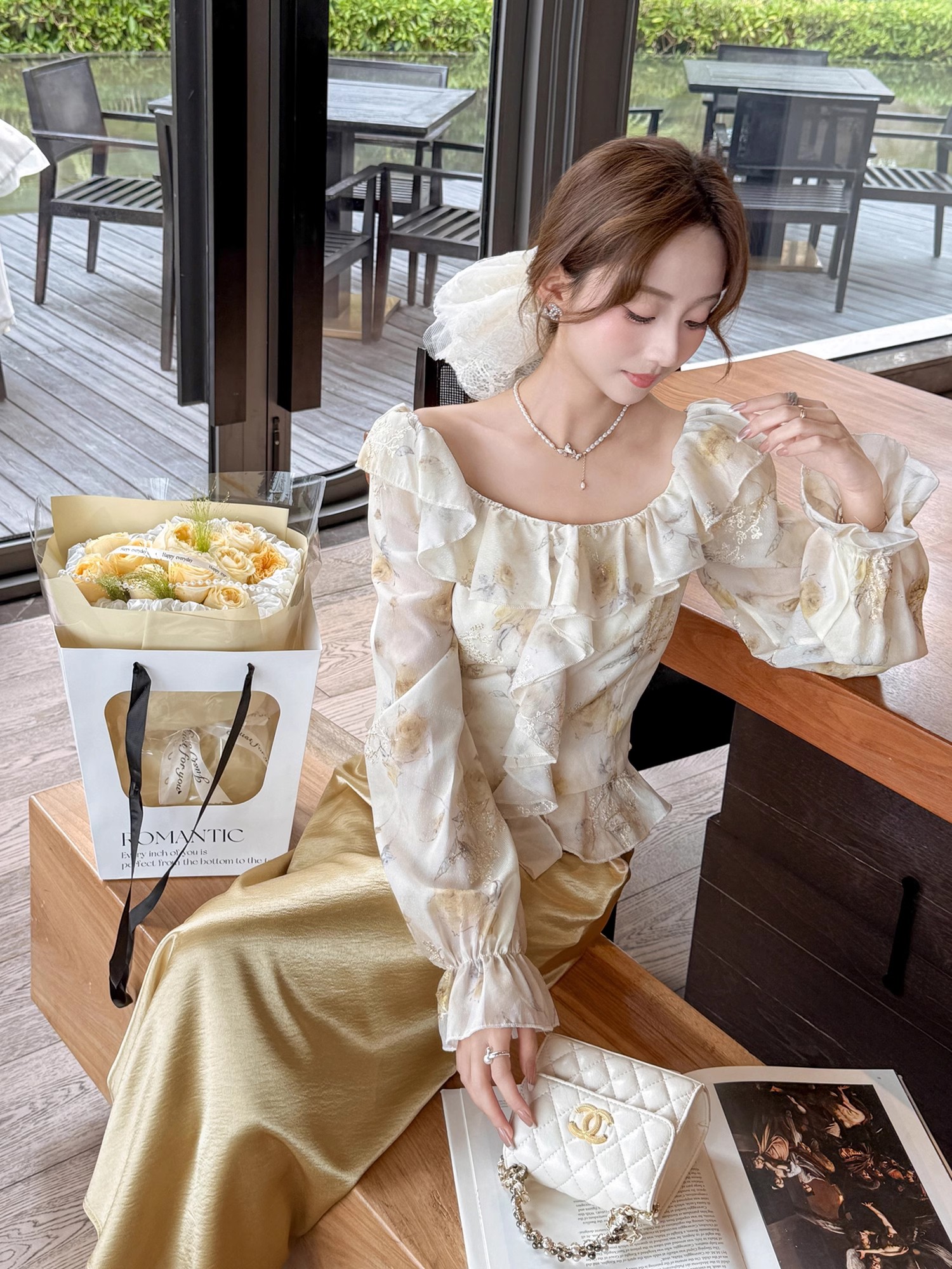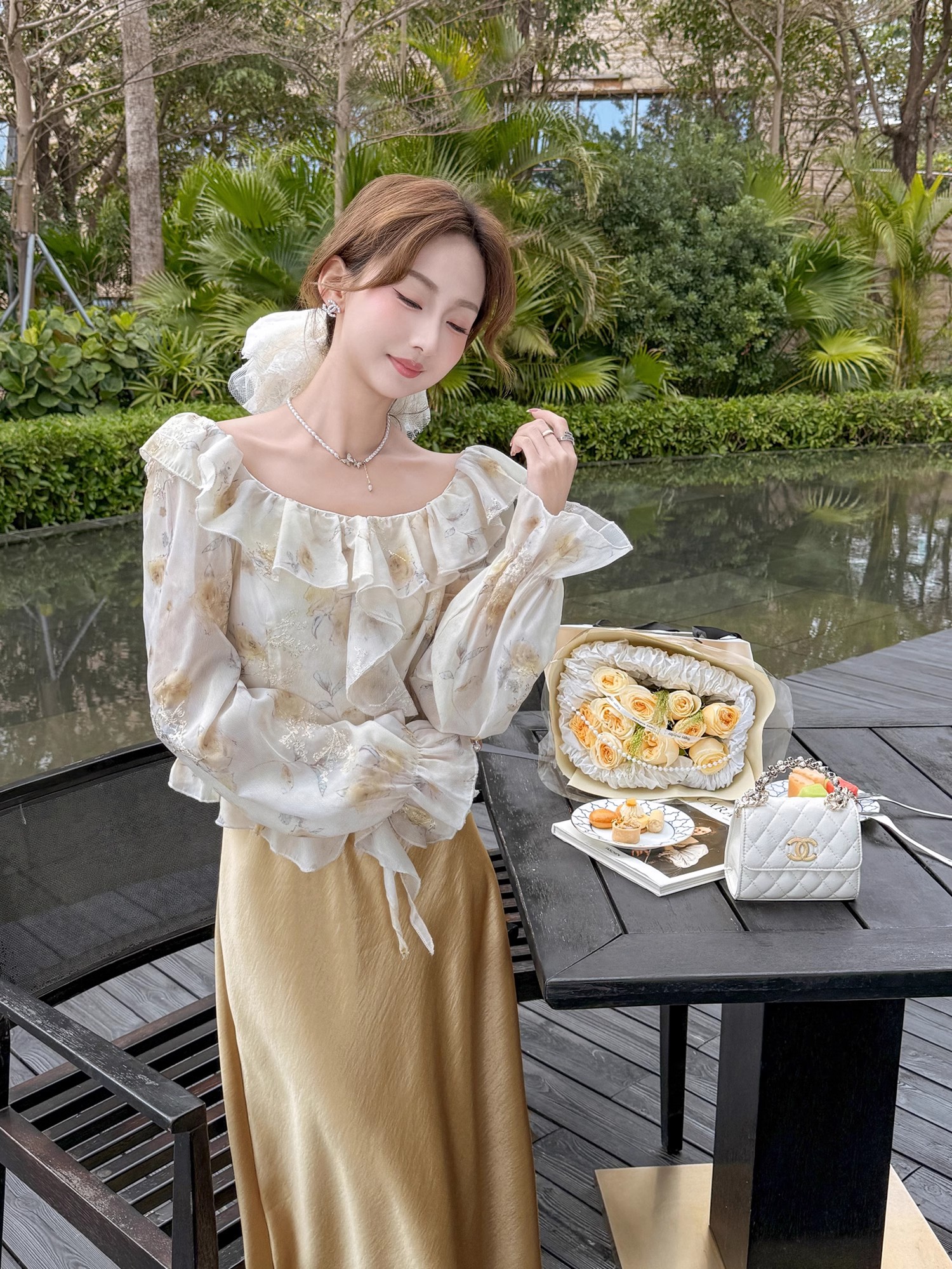 张心子【私有浪漫】春夏防晒气质天丝碎花一字肩上衣 U2502015