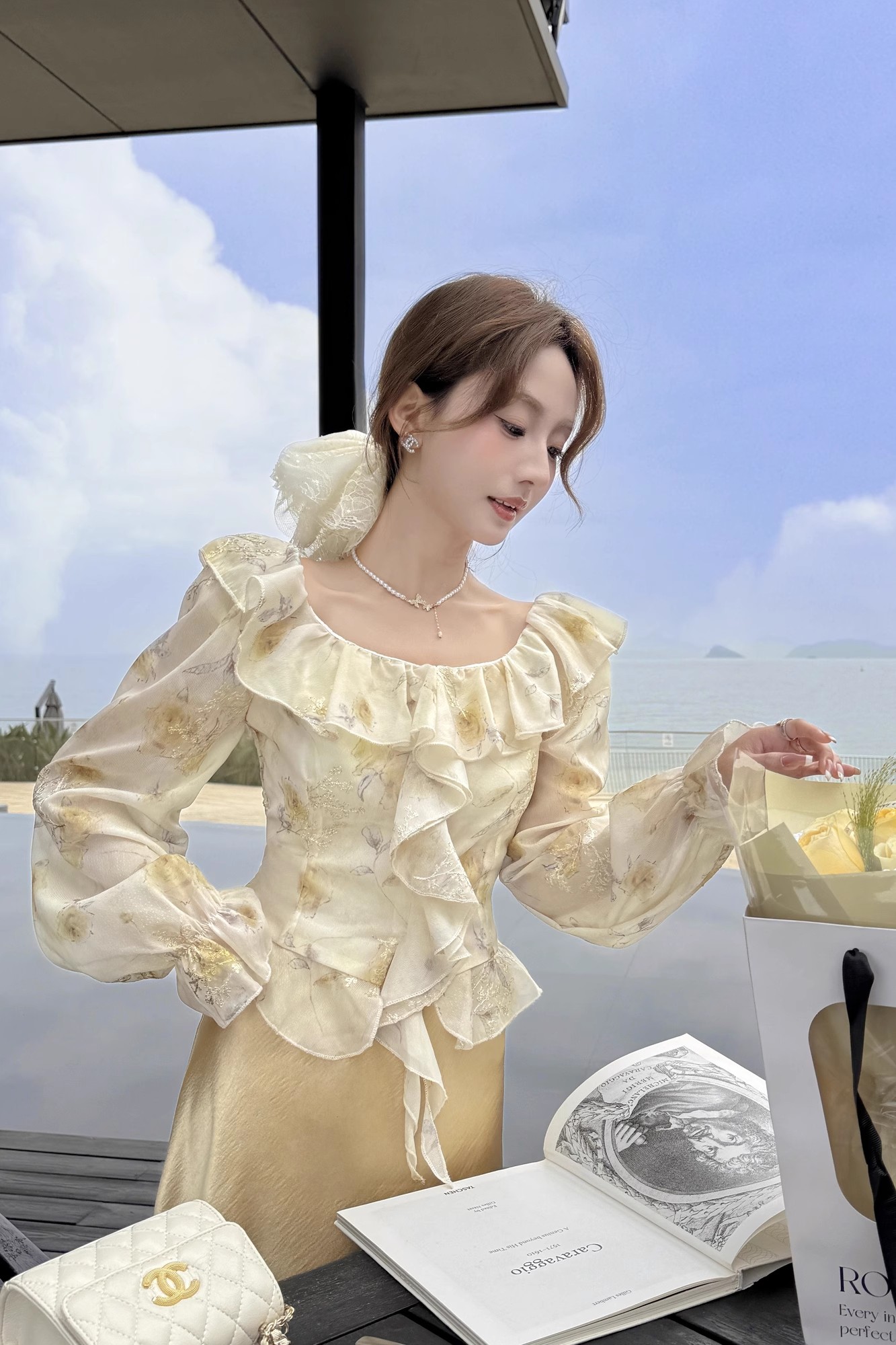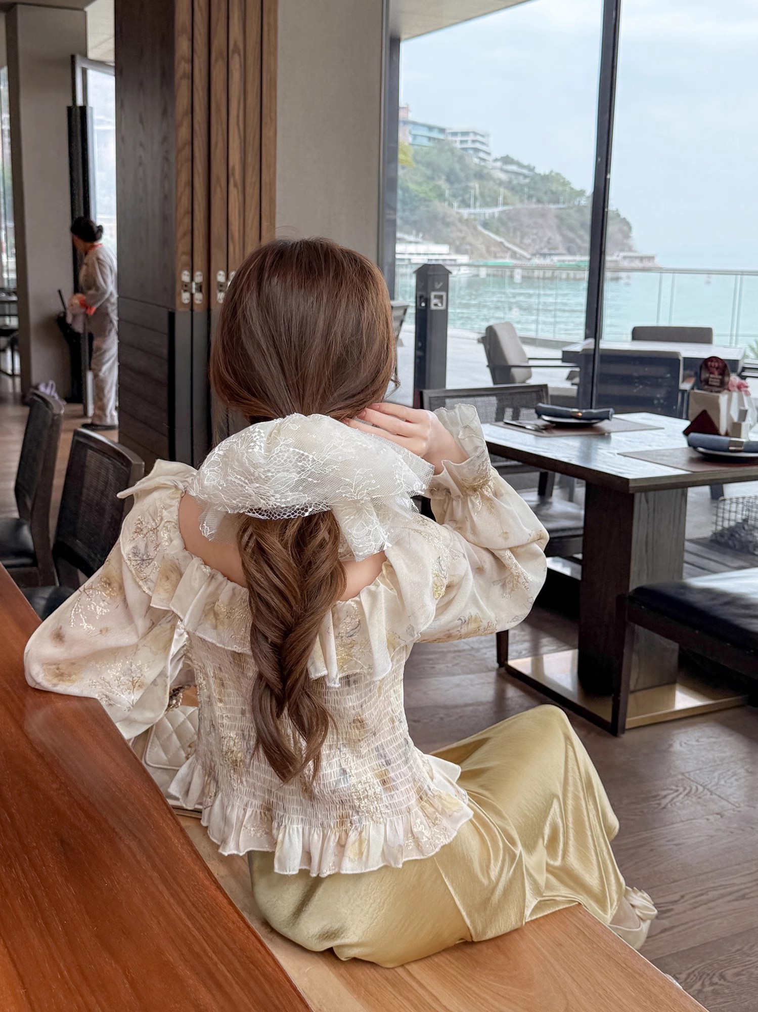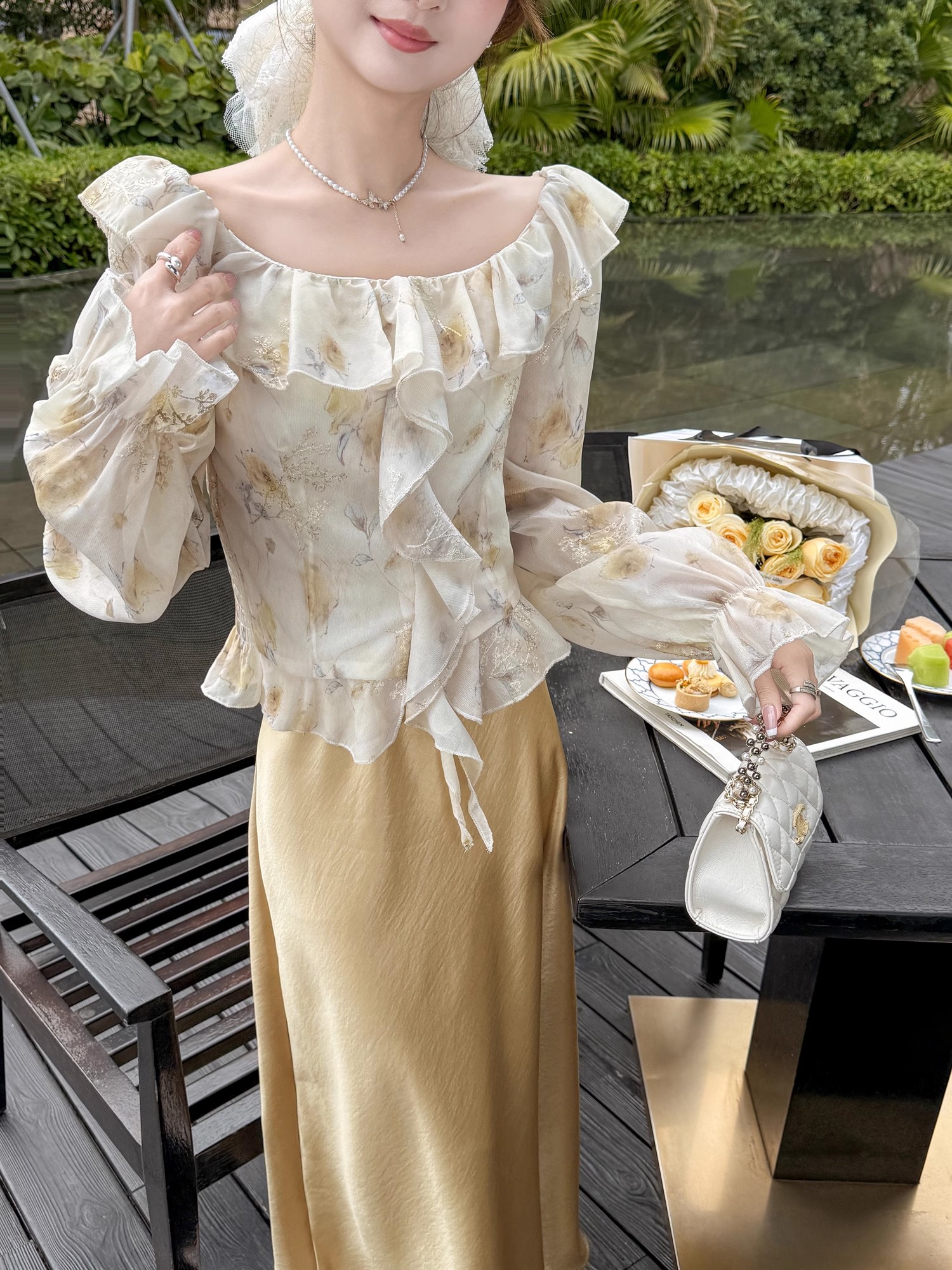 张心子【私有浪漫】春夏防晒气质天丝碎花一字肩上衣 U2502015