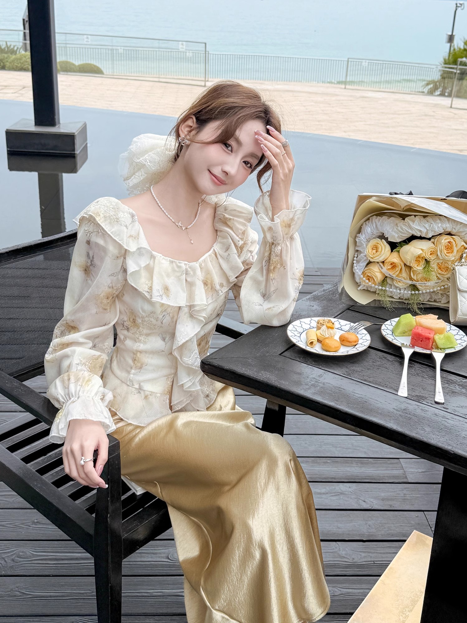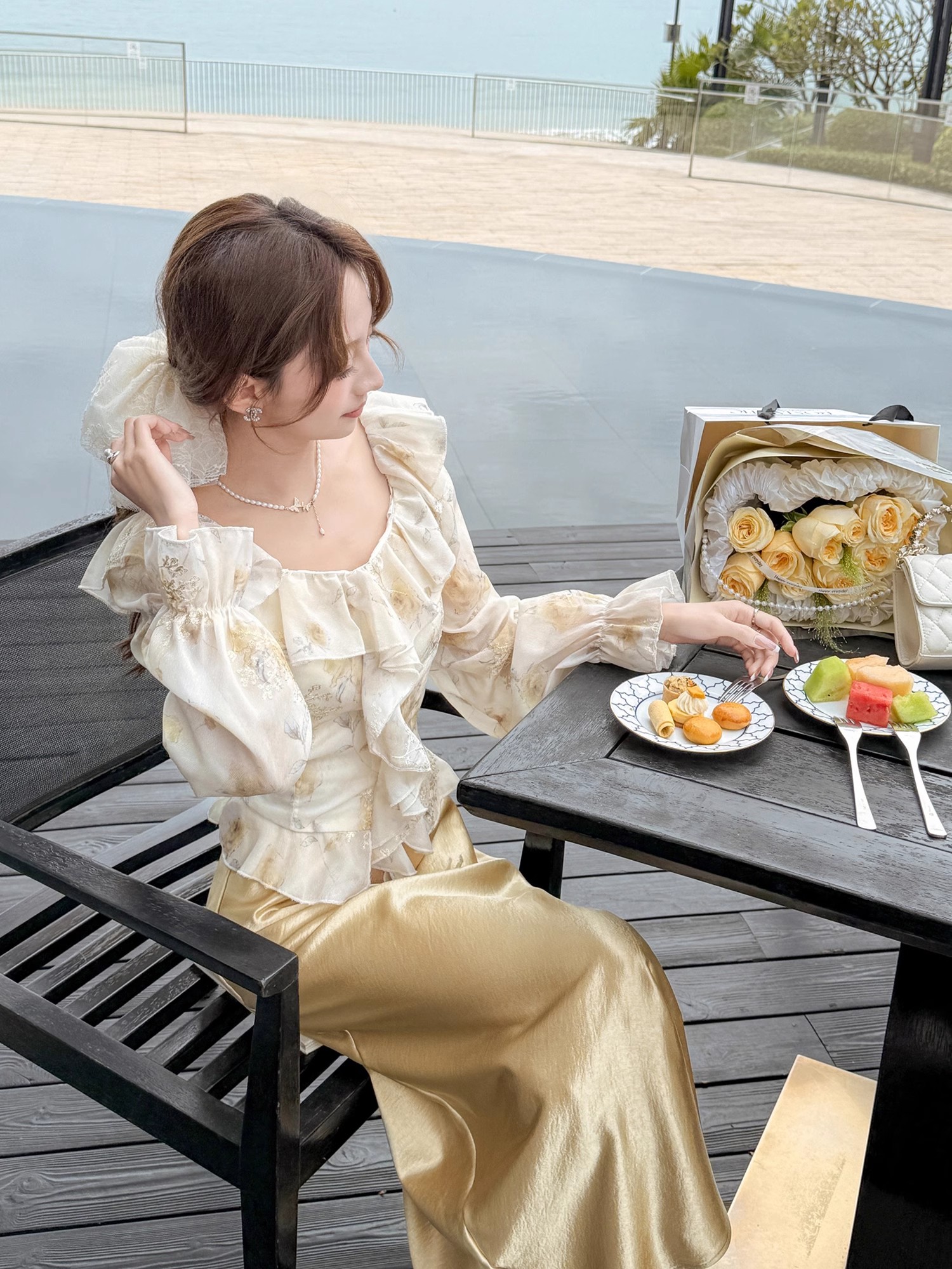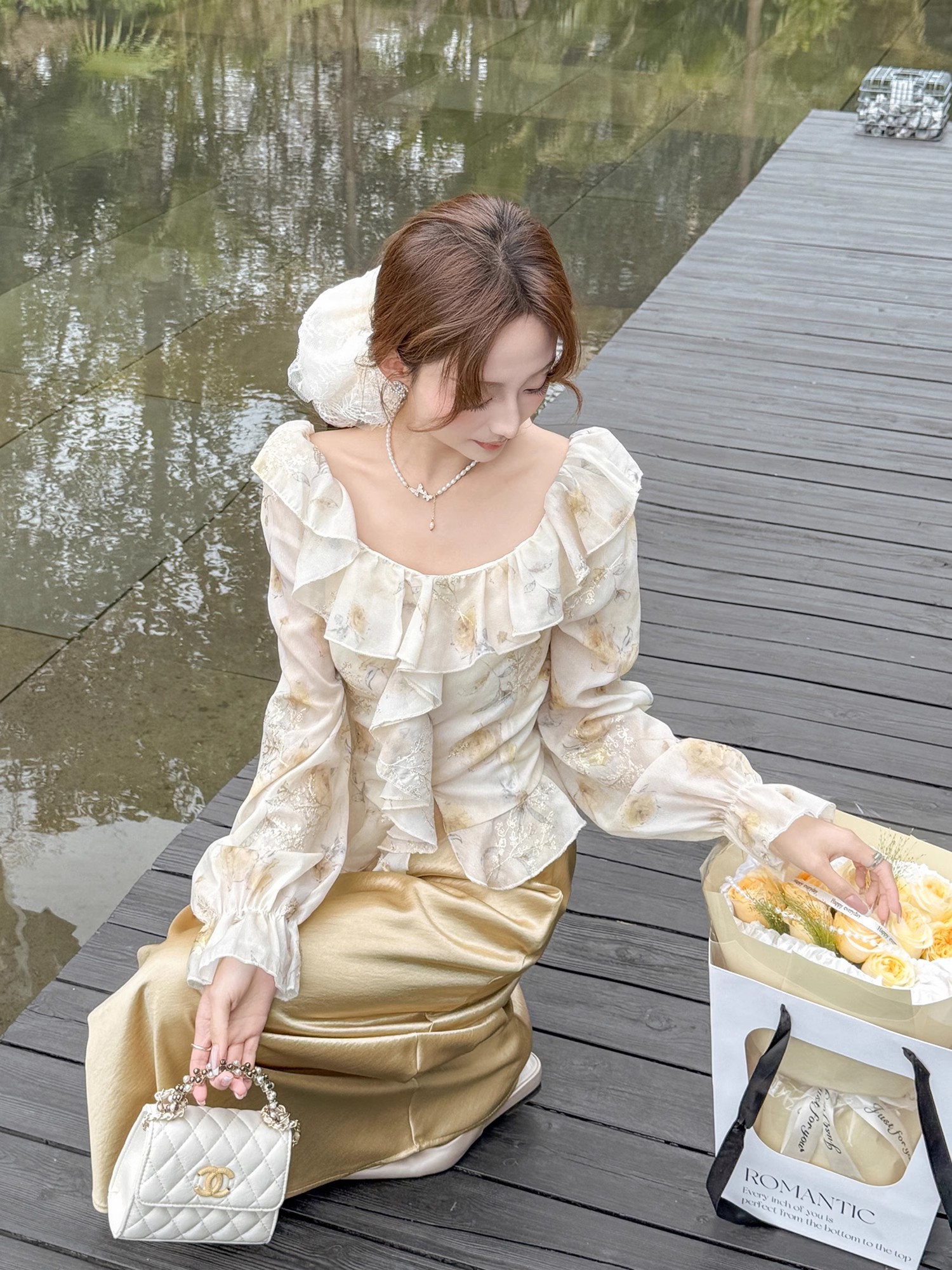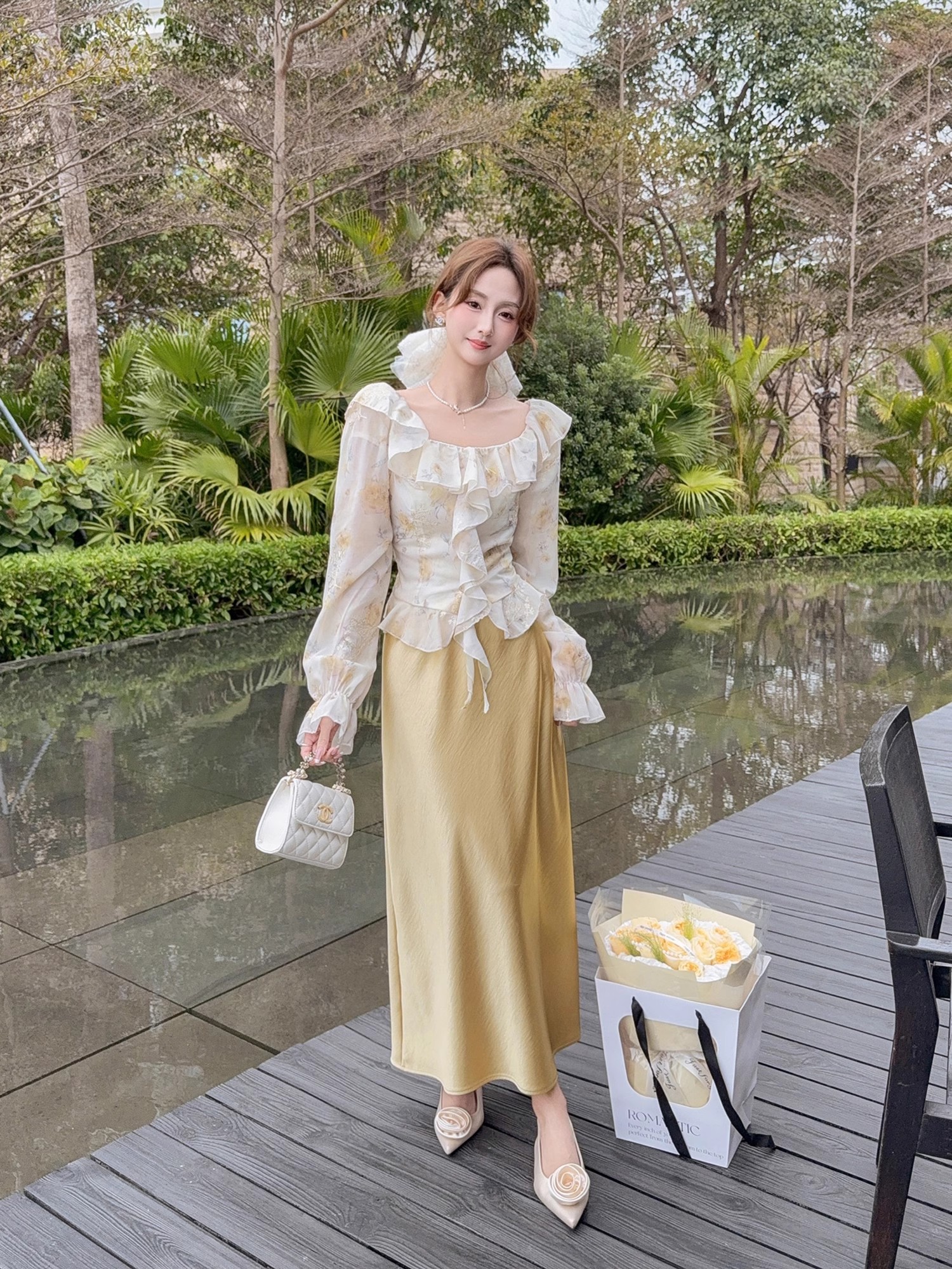 张心子【私有浪漫】春夏防晒气质天丝碎花一字肩上衣 U2502015