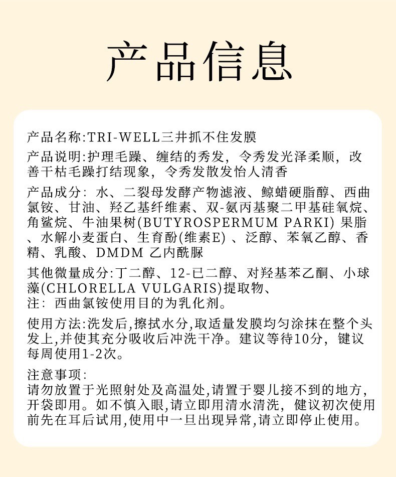 【染烫星人干枯秀发!一袋全搞定】三井抓不住发膜500ML干枯毛躁受损打结柔顺光泽,口子不大,丝毫不用担心发膜会撒了出来,外出携带也非常方便。ry