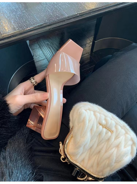 ROAADN专柜正品,线下专柜售价398,我们开团价100+就可以到手! 质量跟实拍图一样,到手绝对物超所值 日常给大家省钱了!!! 正儿八经品牌门店正品货 而且是今年刚出的新款 专柜100%在售的,正品有授权放心入 这个夏天来了,和姐妹们约着去露营吧~ 不得不说这双水晶透明粗跟拖鞋,真的太好穿了! 跟高低有5cm的跟,相信姐妹们都喜欢这种有纯嫩嫩素色的面料吧~ 跟脚踝部分的做工很不一样,这双看起来非常非常性感, 还有点小增高,瞬间变成大长腿!!! 脚底还很软,穿上走路非常舒服 跟高也刚好,是那种穿着跳舞一点也不会累脚的类型 还有步伐不羁的性感~