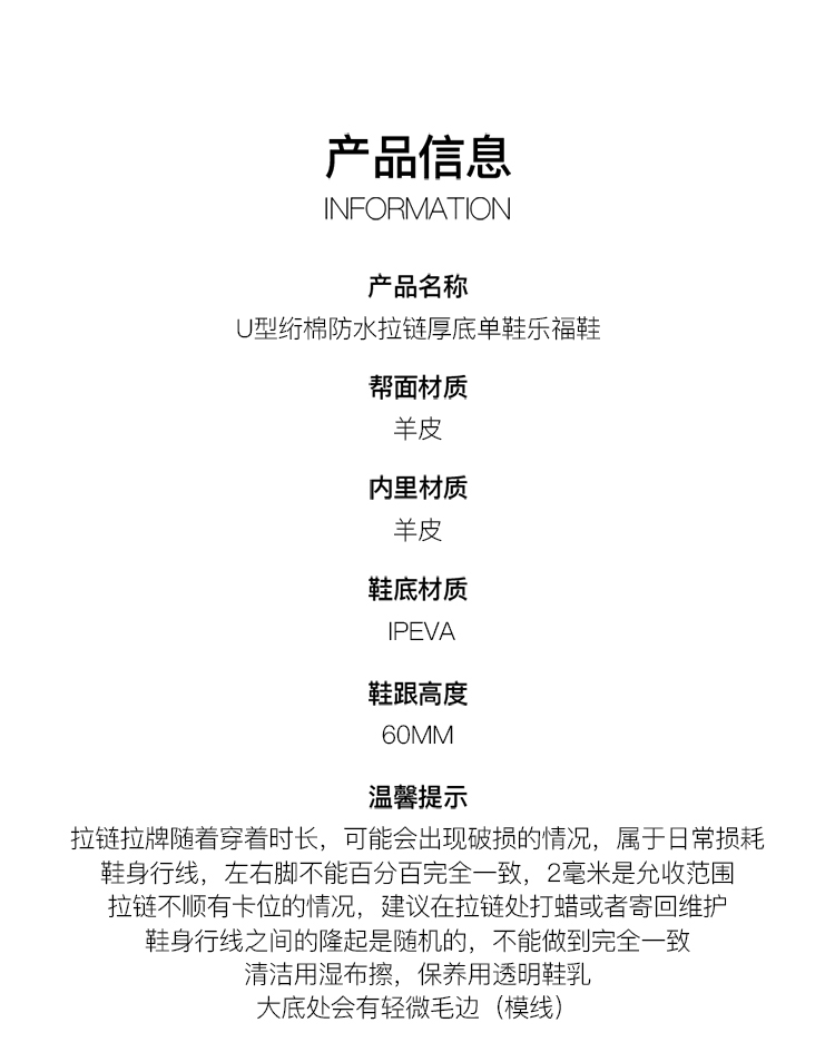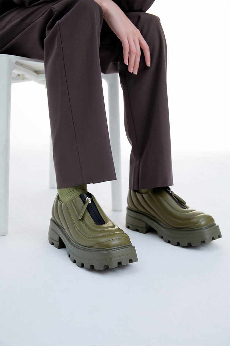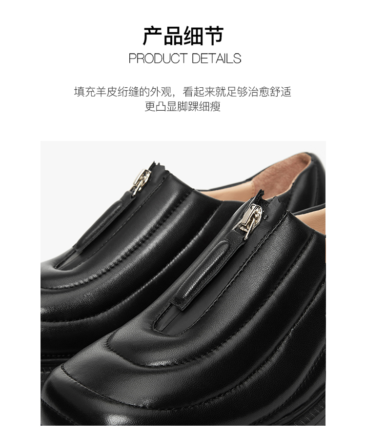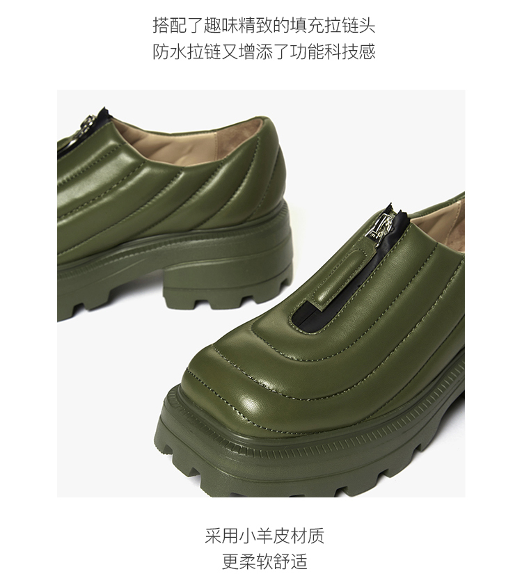 lost in echo设计师原创 U型绗棉防水拉链厚底单鞋乐福鞋