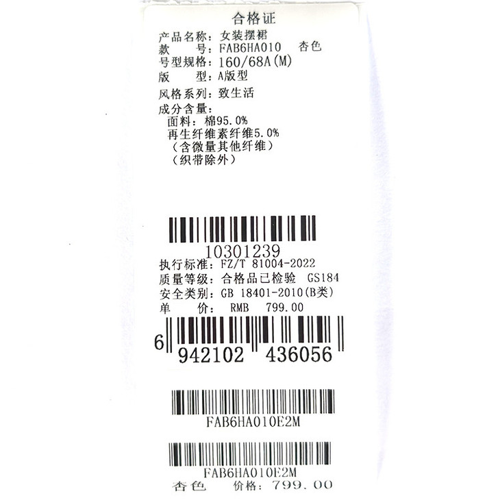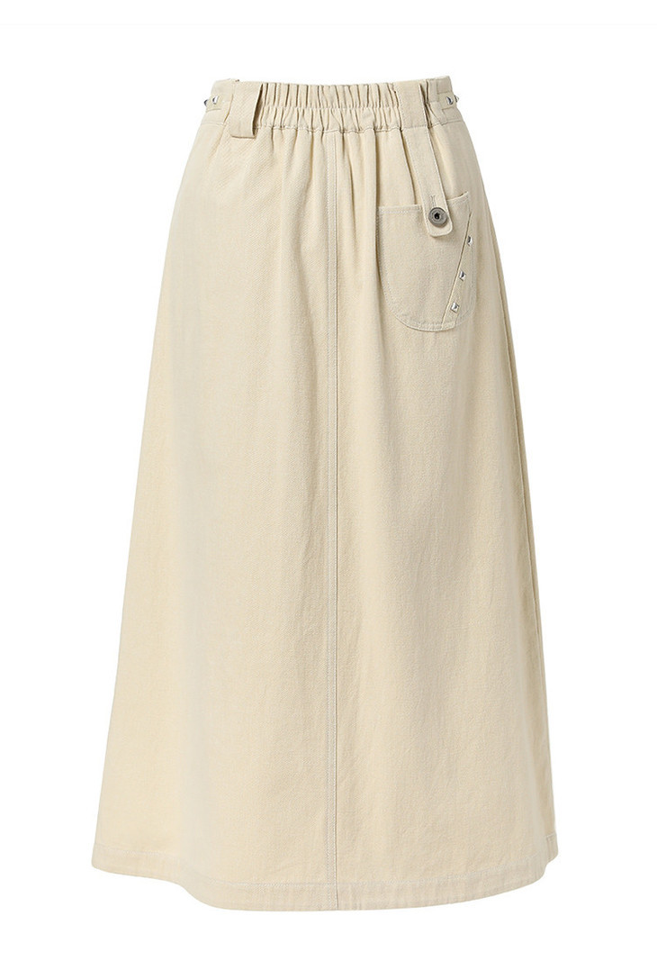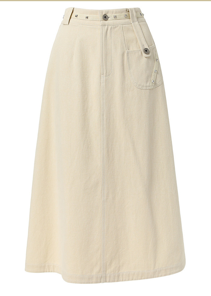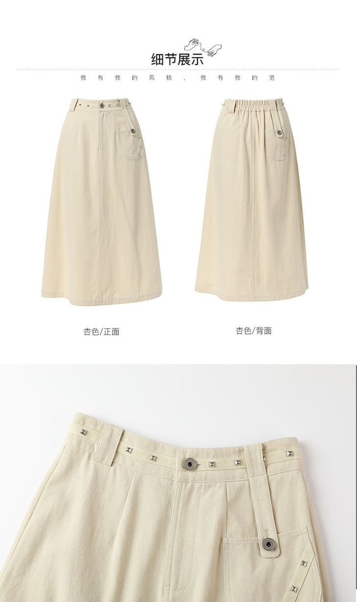 Famecoco范可儿通勤舒适棉质半裙秋季织带拼接松紧腰设计感中长款A字半身裙FAB6HA010