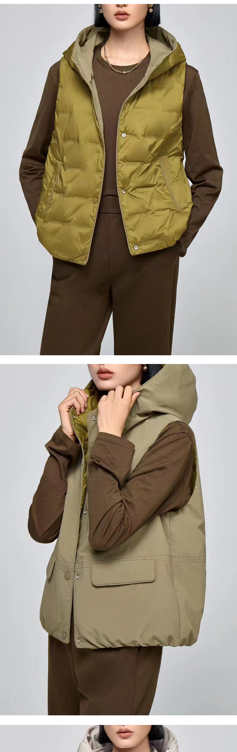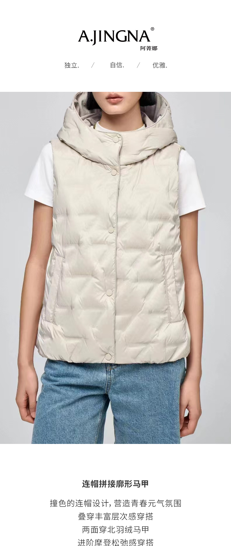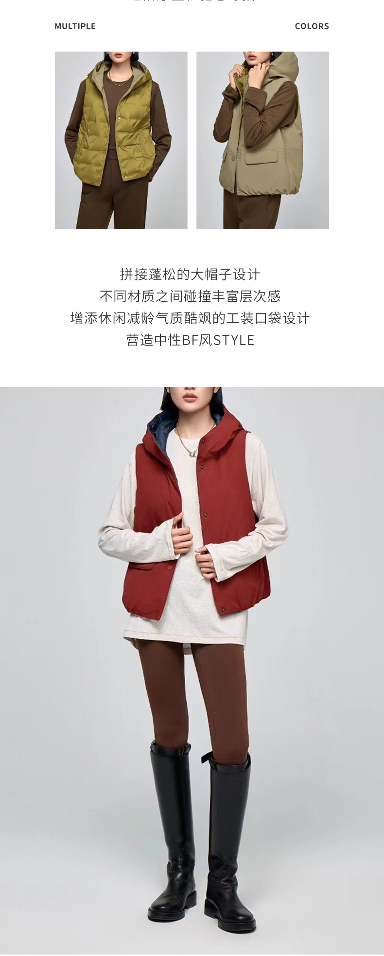 【双面羽绒马甲】阿菁娜秋季新款双面穿羽绒马甲慵懒风连帽两穿设计工装口袋圆弧下摆F30D203088