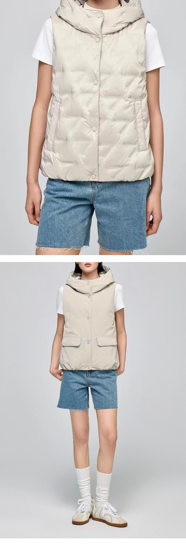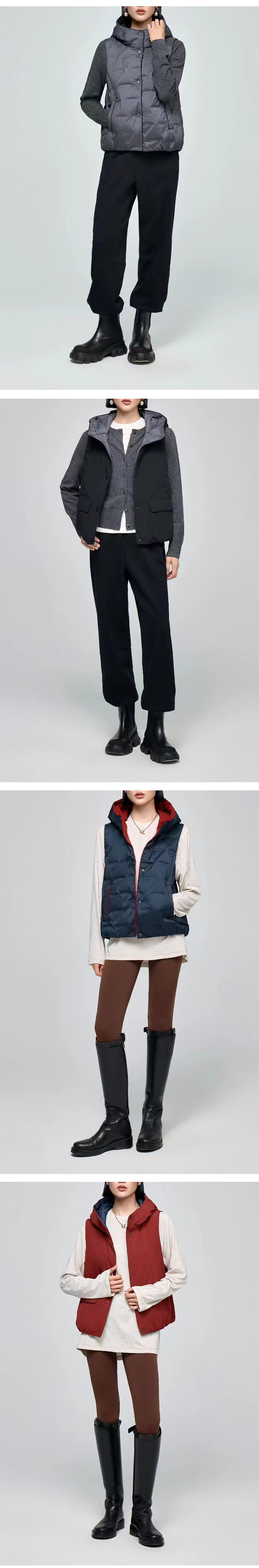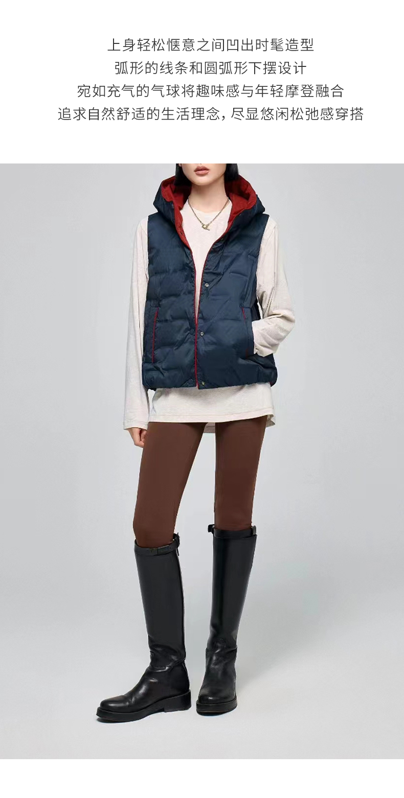 【双面羽绒马甲】阿菁娜秋季新款双面穿羽绒马甲慵懒风连帽两穿设计工装口袋圆弧下摆F30D203088