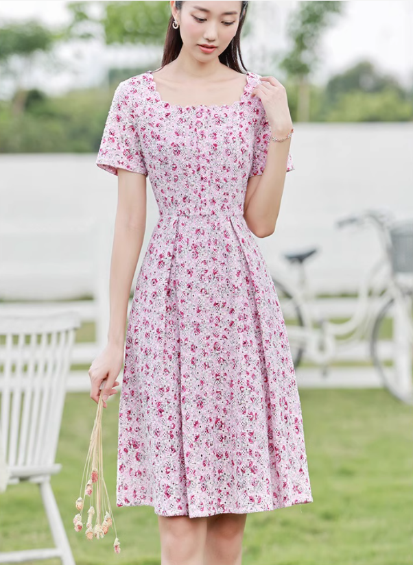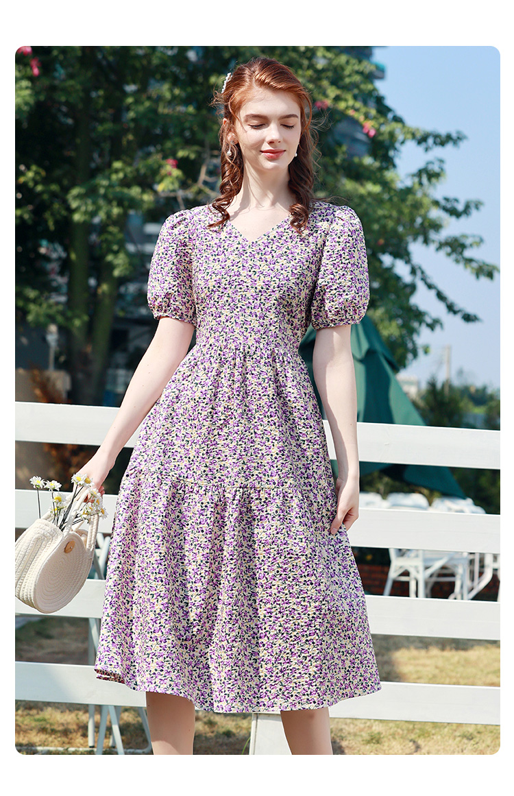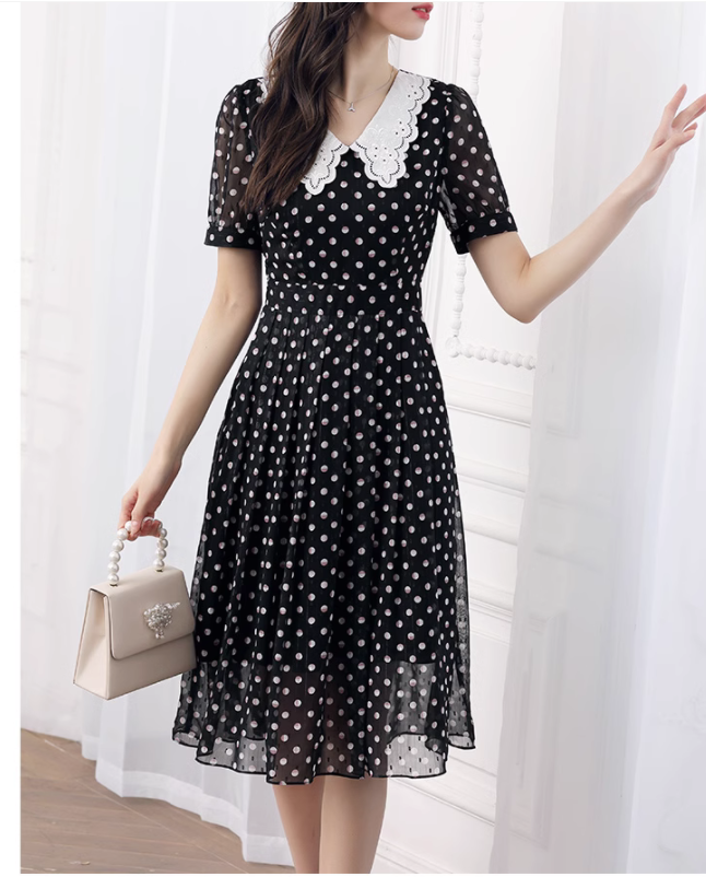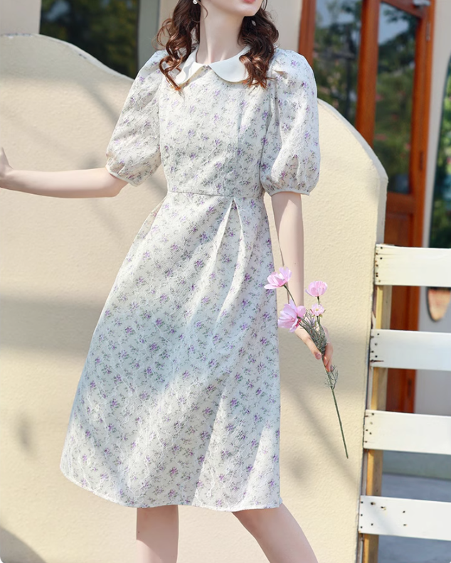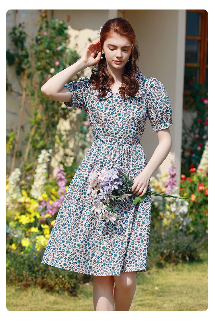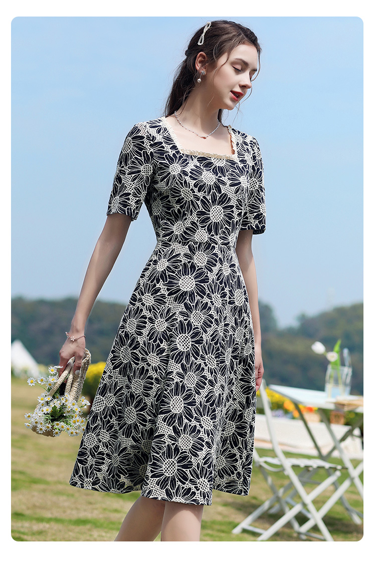 勿忘花黑色纯棉碎花气质连衣裙女2024春季新款今年流行的漂亮裙子