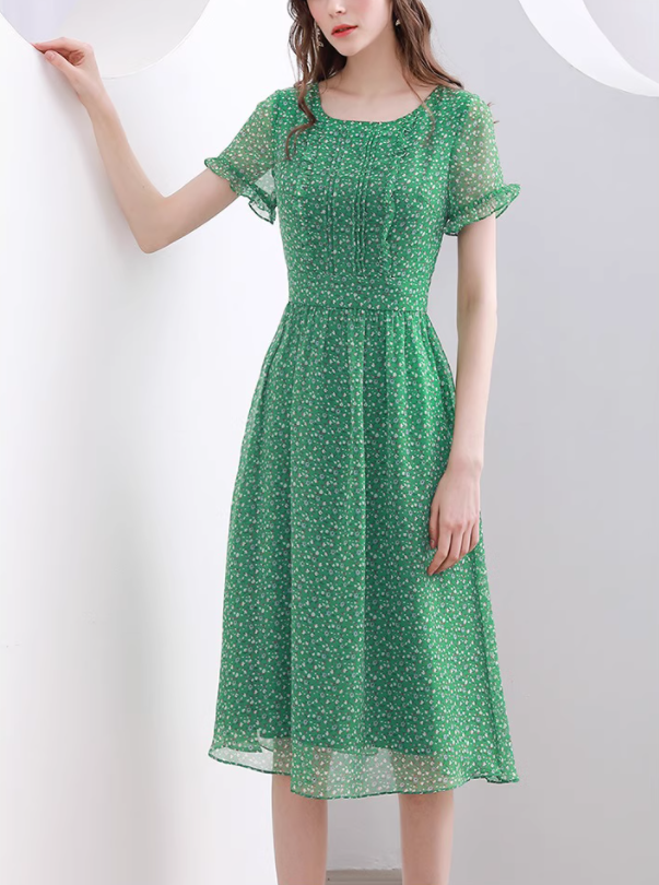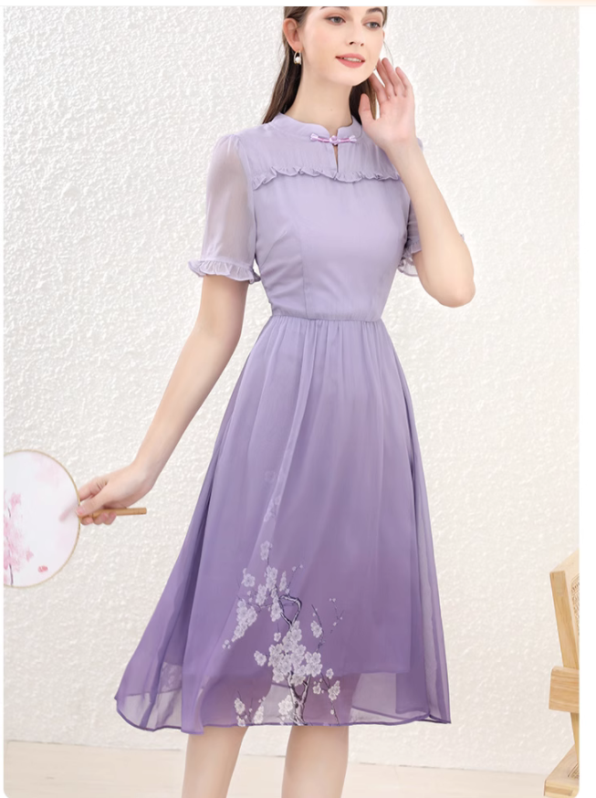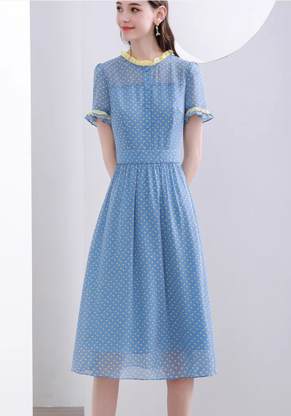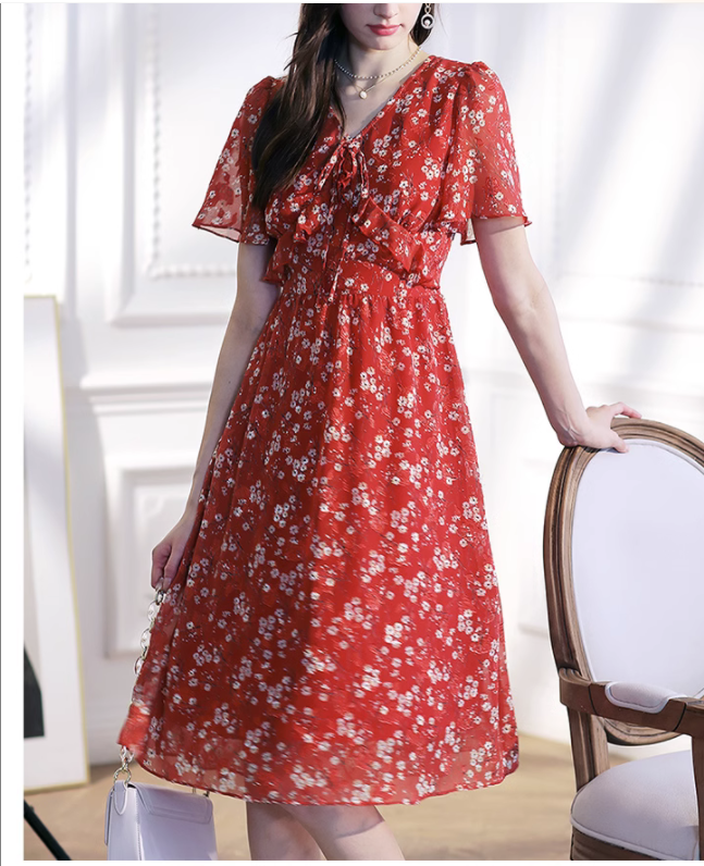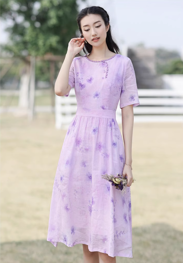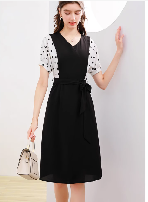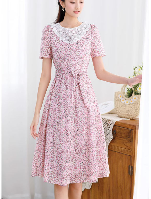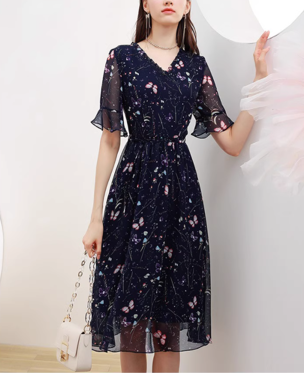 勿忘花黑色纯棉碎花气质连衣裙女2024春季新款今年流行的漂亮裙子