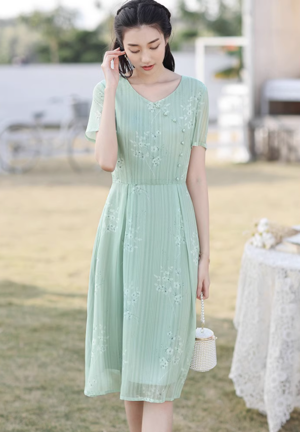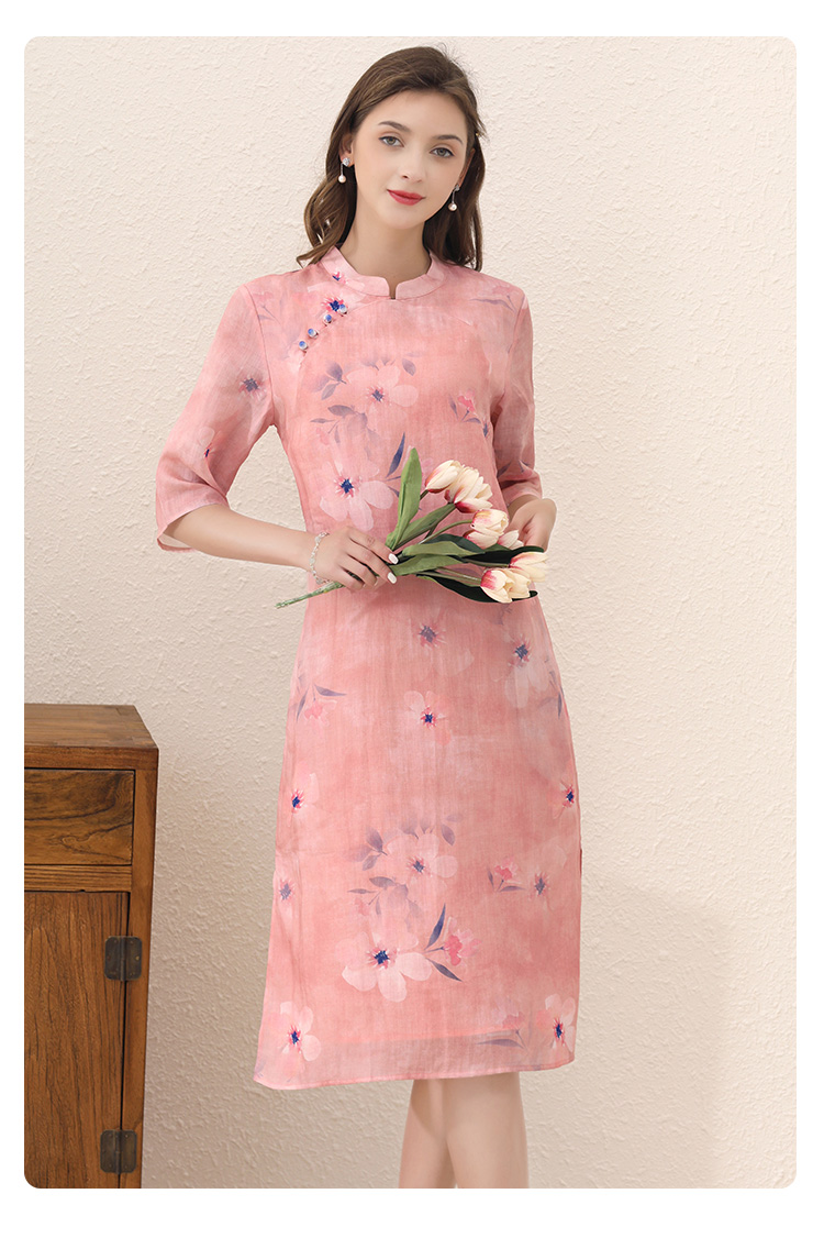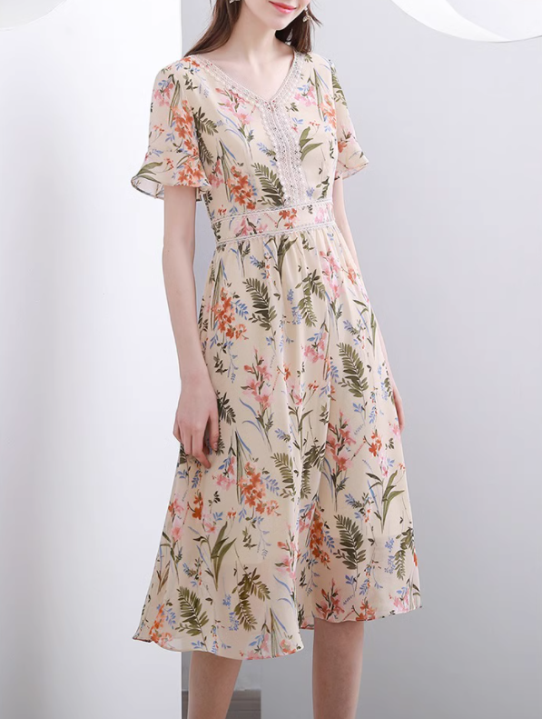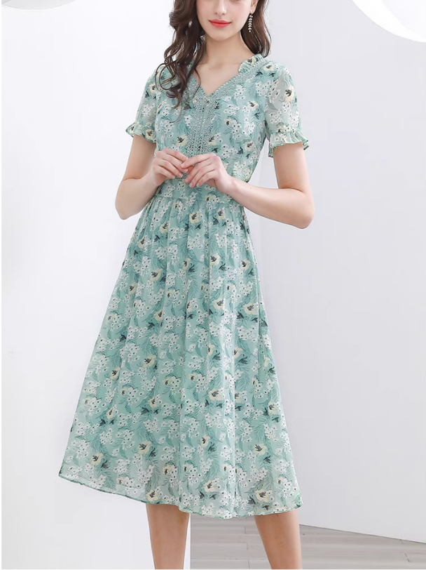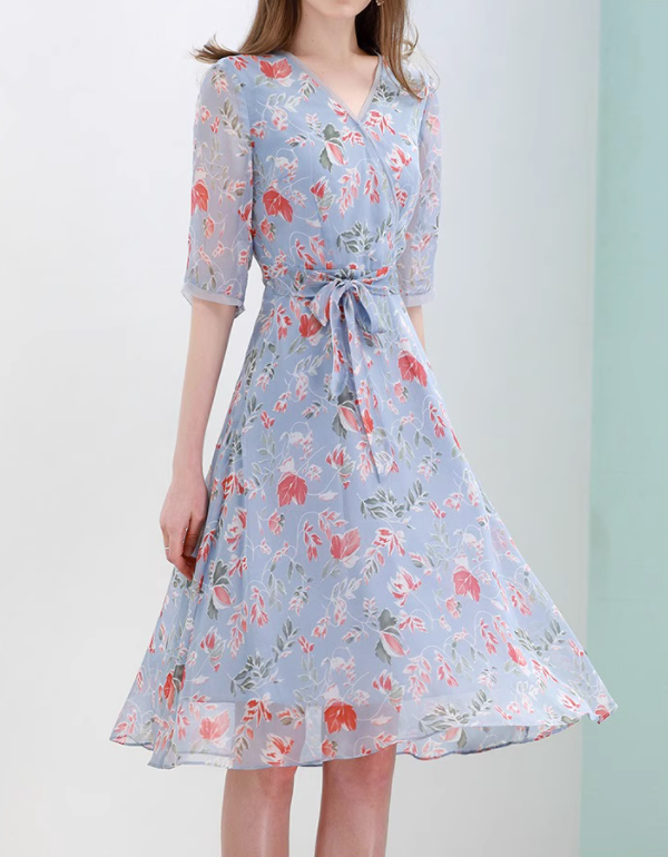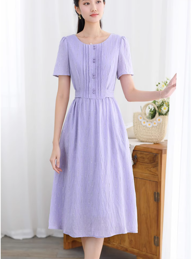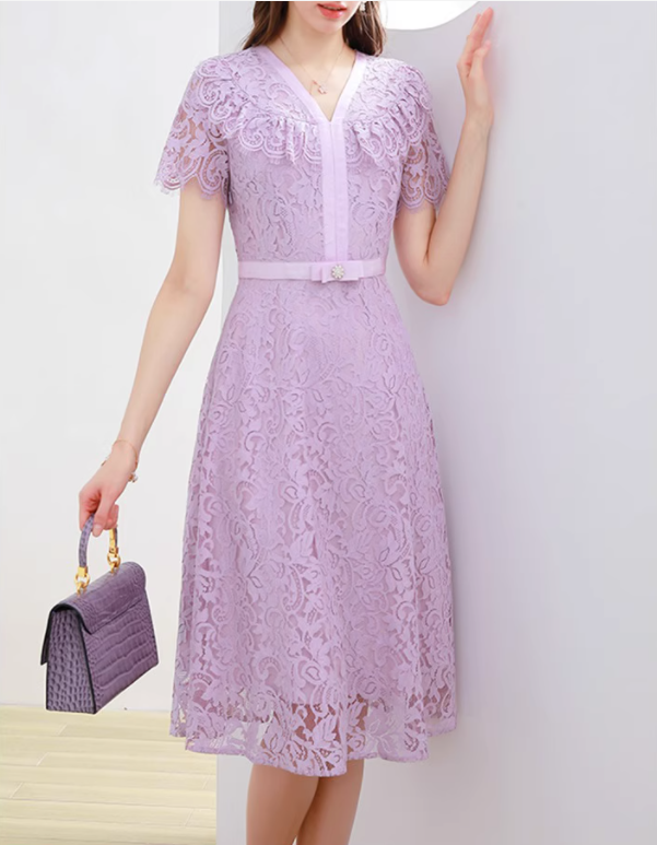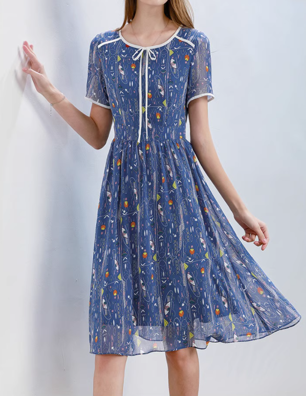 未风网纱刺绣连衣裙女春2024春季新款女装气质淑女七分袖显瘦裙子