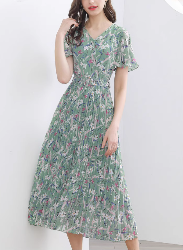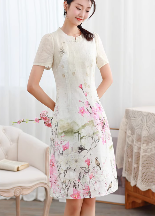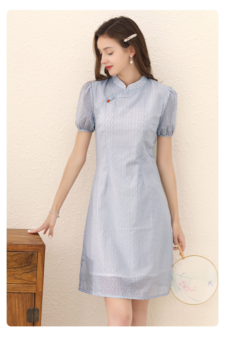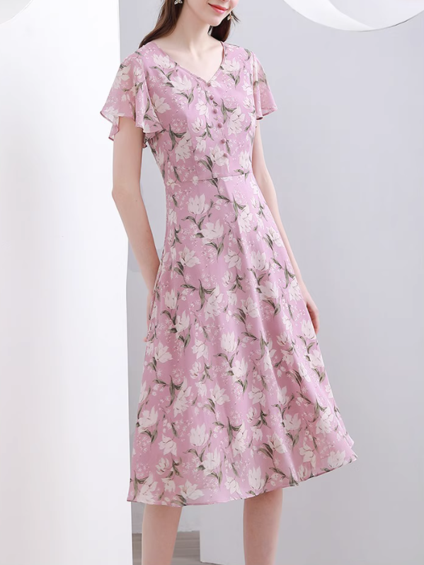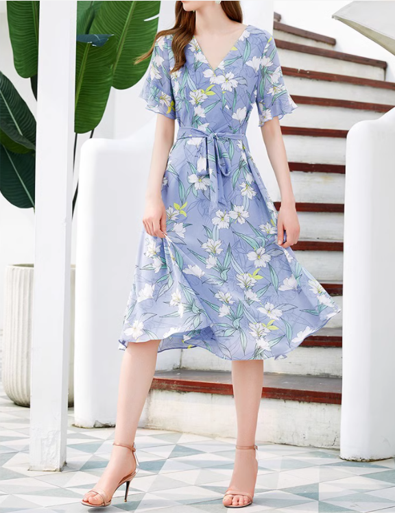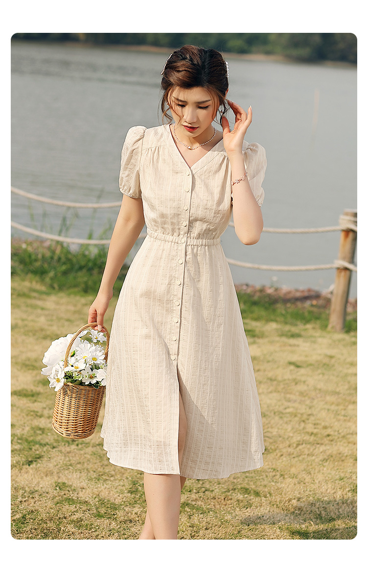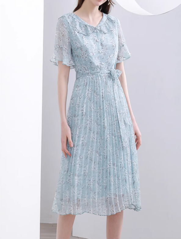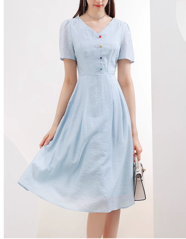 未风网纱刺绣连衣裙女春2024春季新款女装气质淑女七分袖显瘦裙子