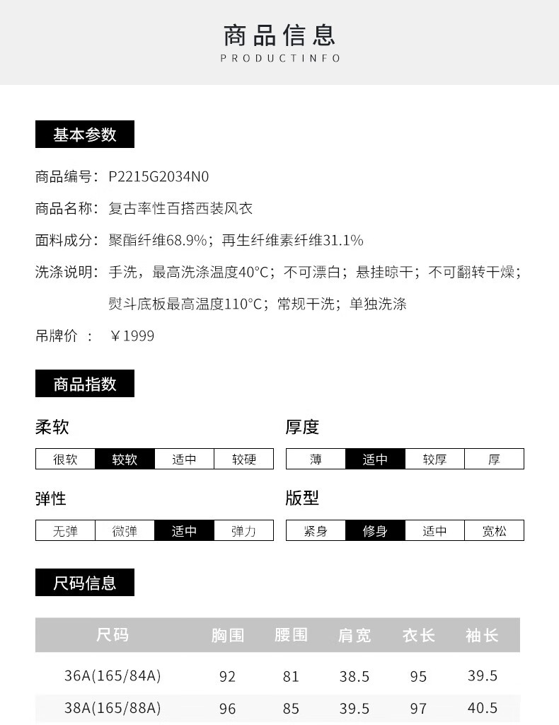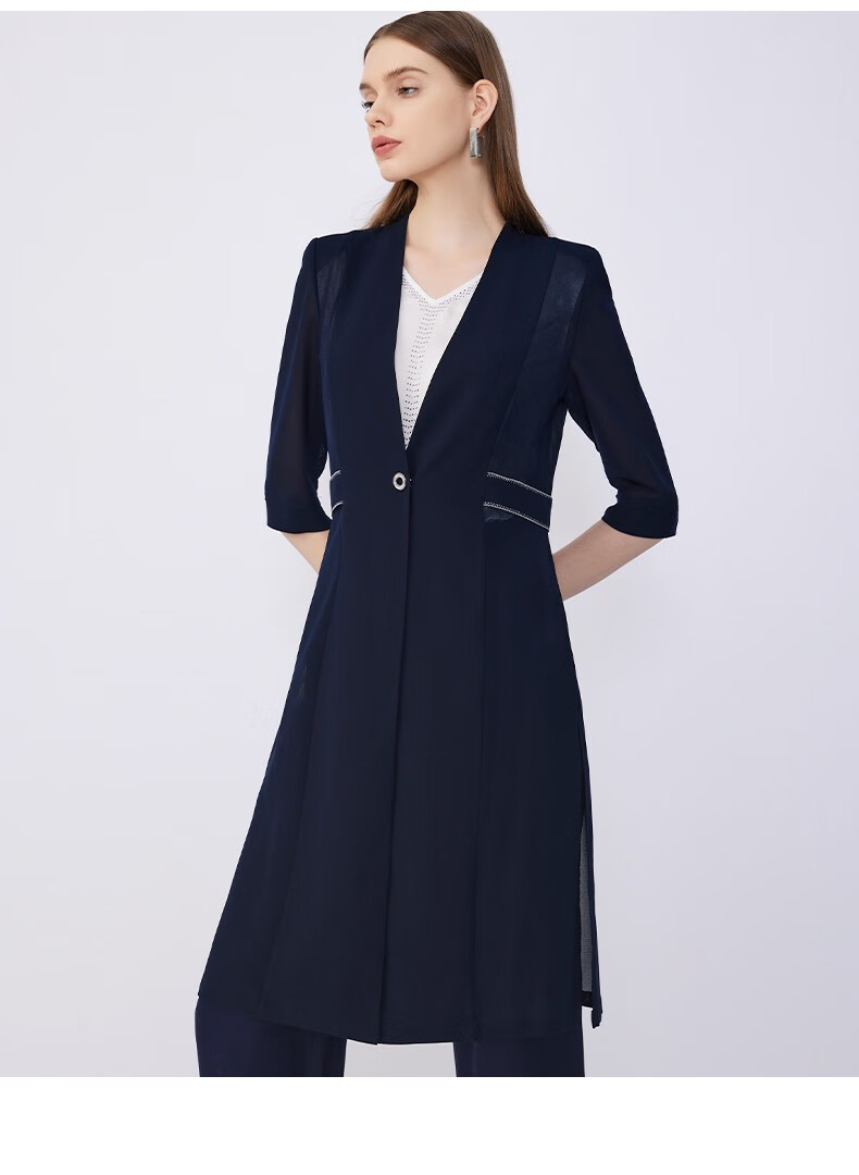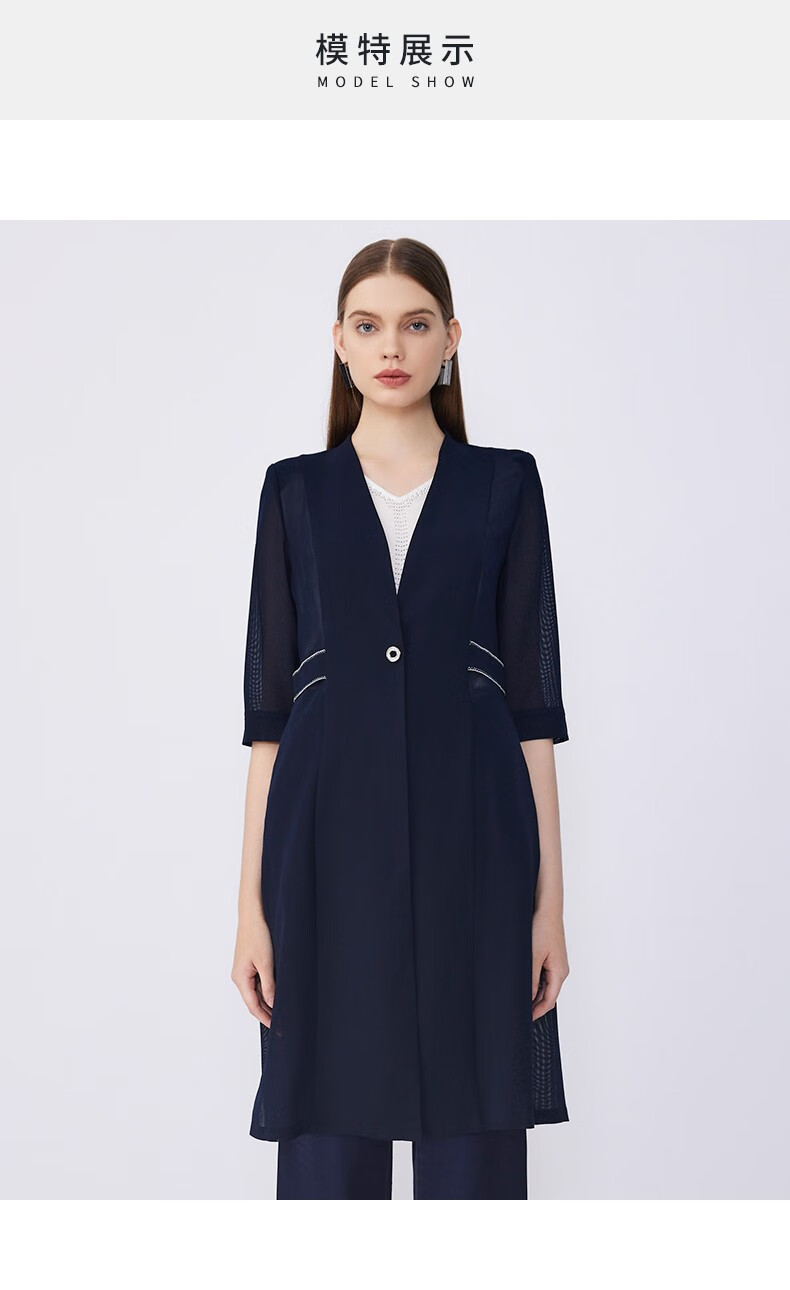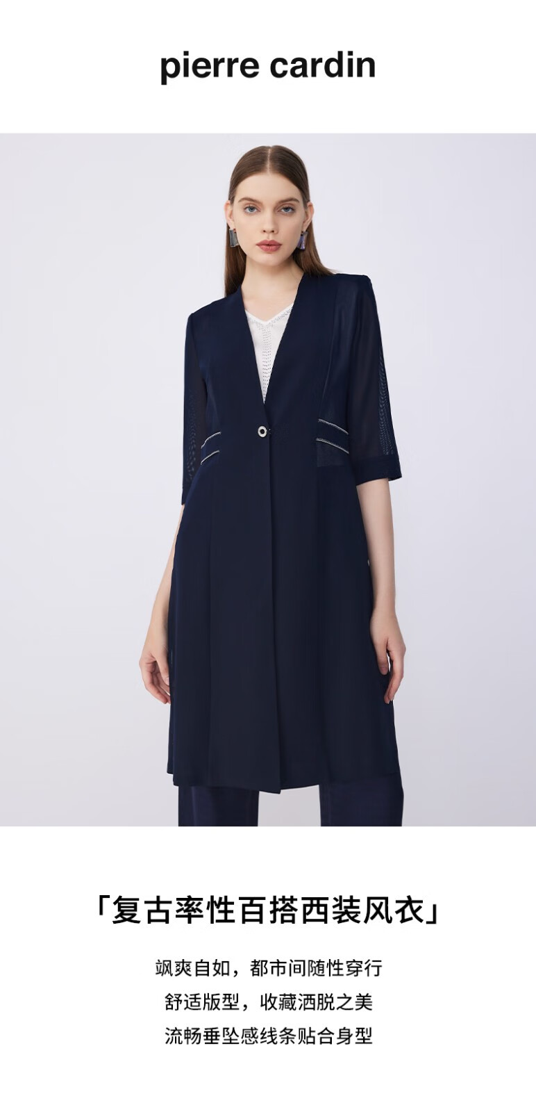 皮尔卡丹女装风衣简约知性轻薄通勤七分袖风衣P2215G2034N0