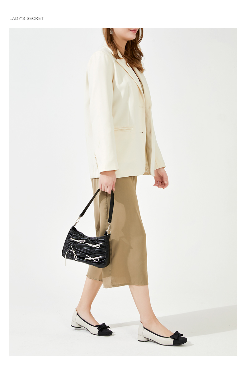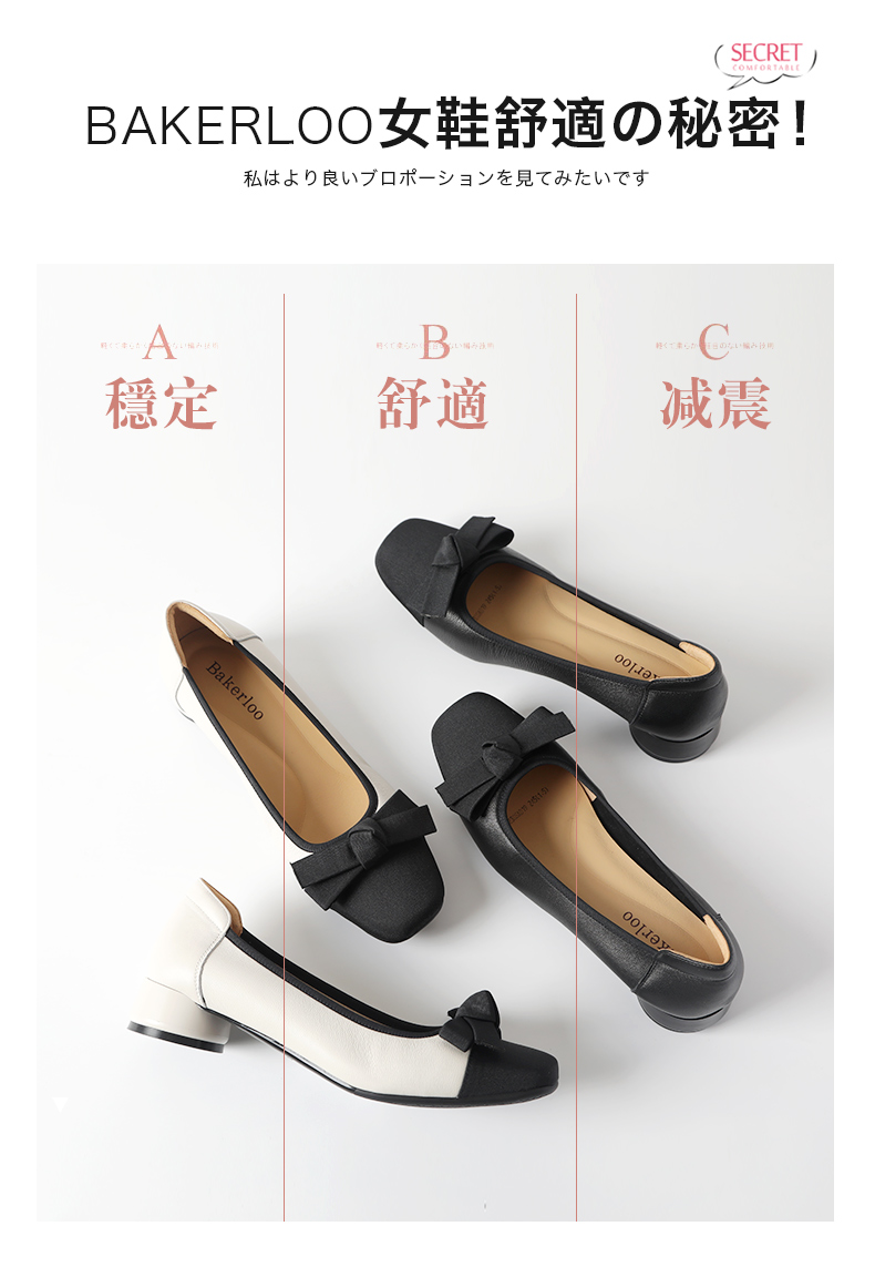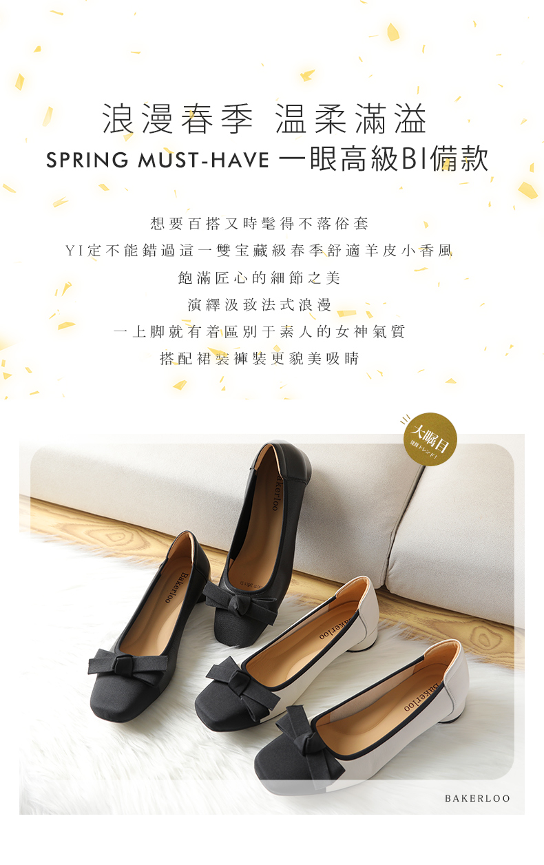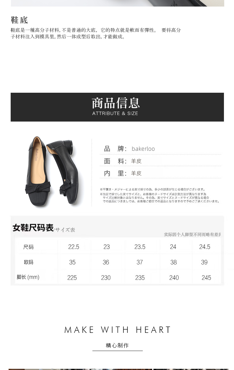 Bakerloo日系蝴蝶结小香风中跟羊皮单鞋