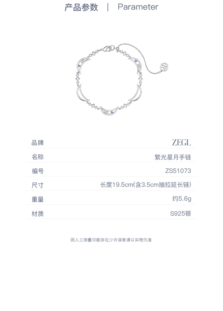 ZEGL设计师月映星河系列925银手链女2024新款小众精致月亮手饰品