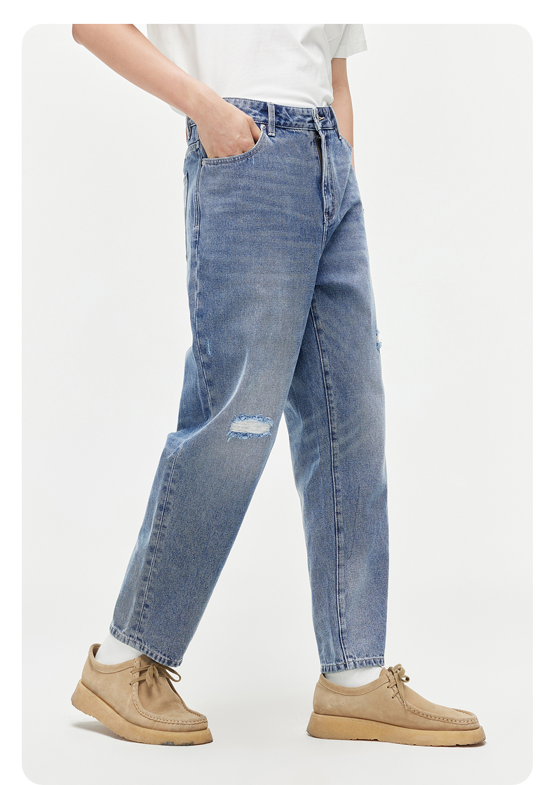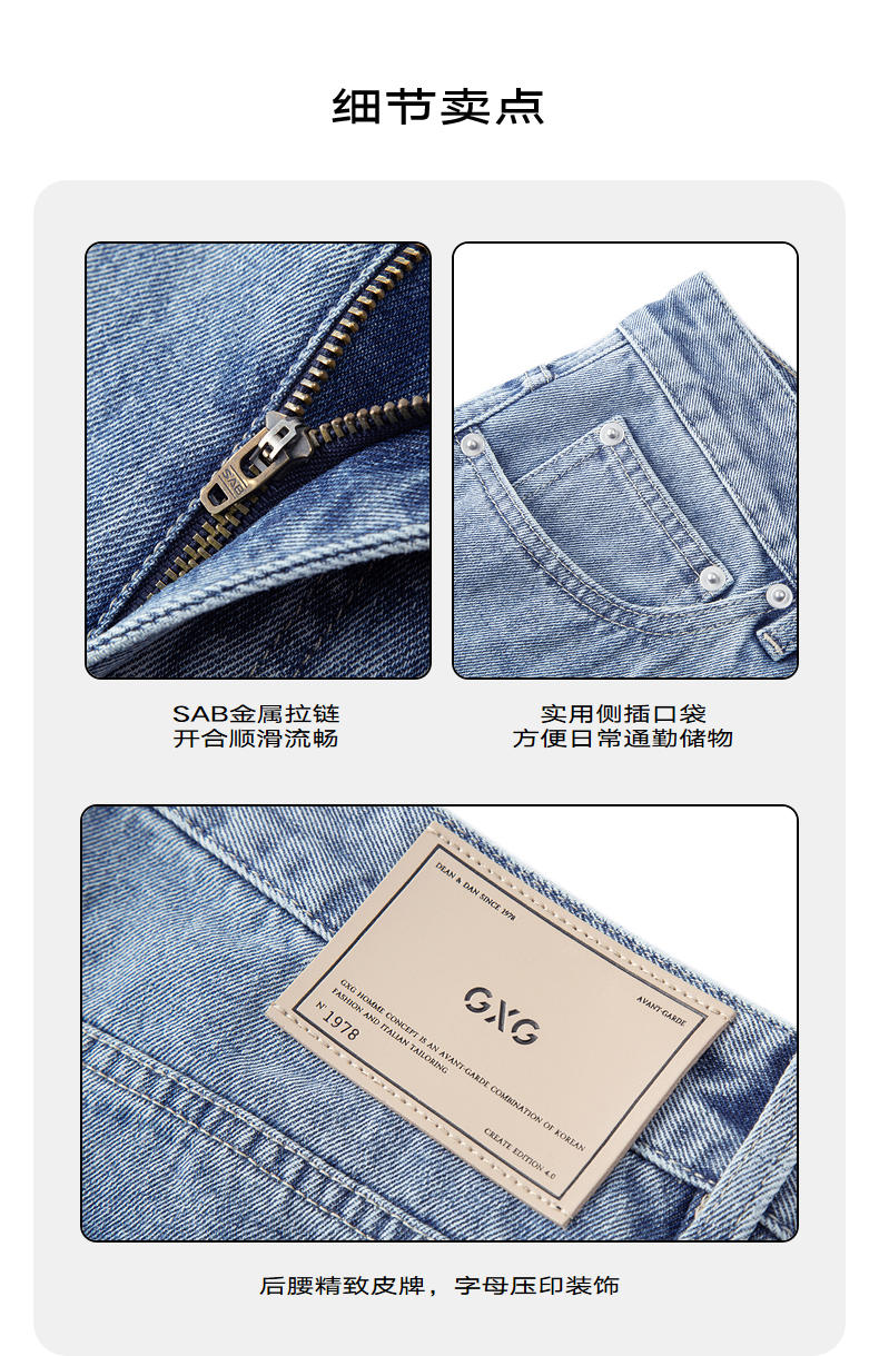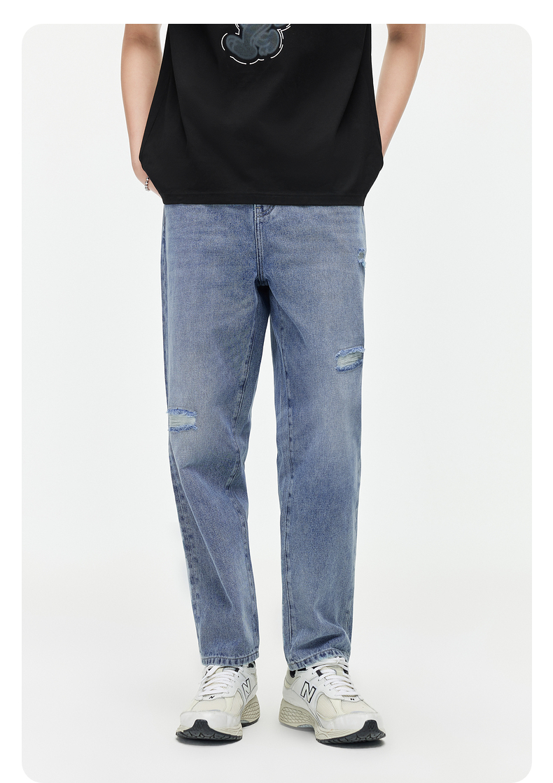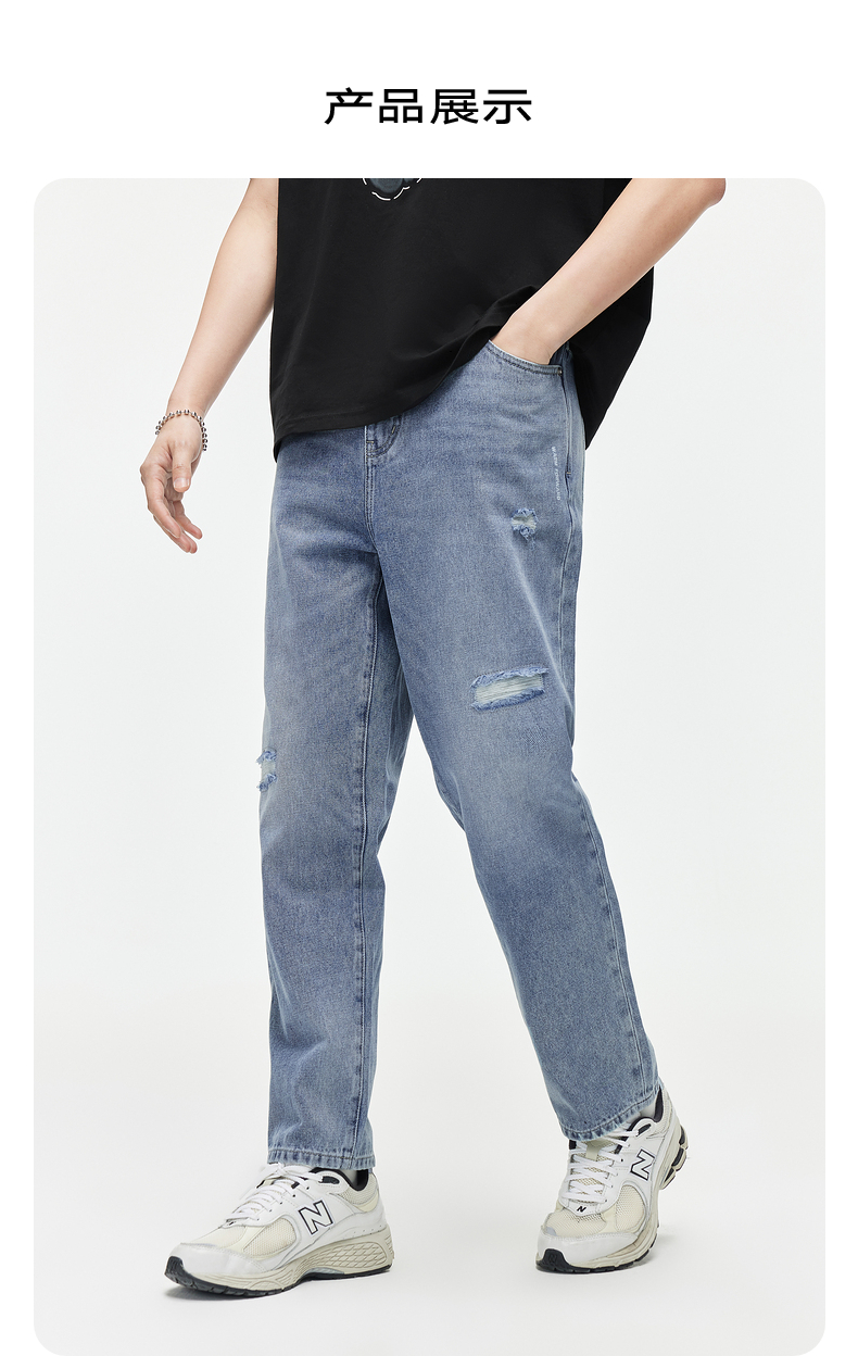 GXG夏季牛仔裤破洞设计宽松锥形牛仔裤男长裤
