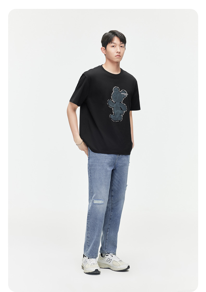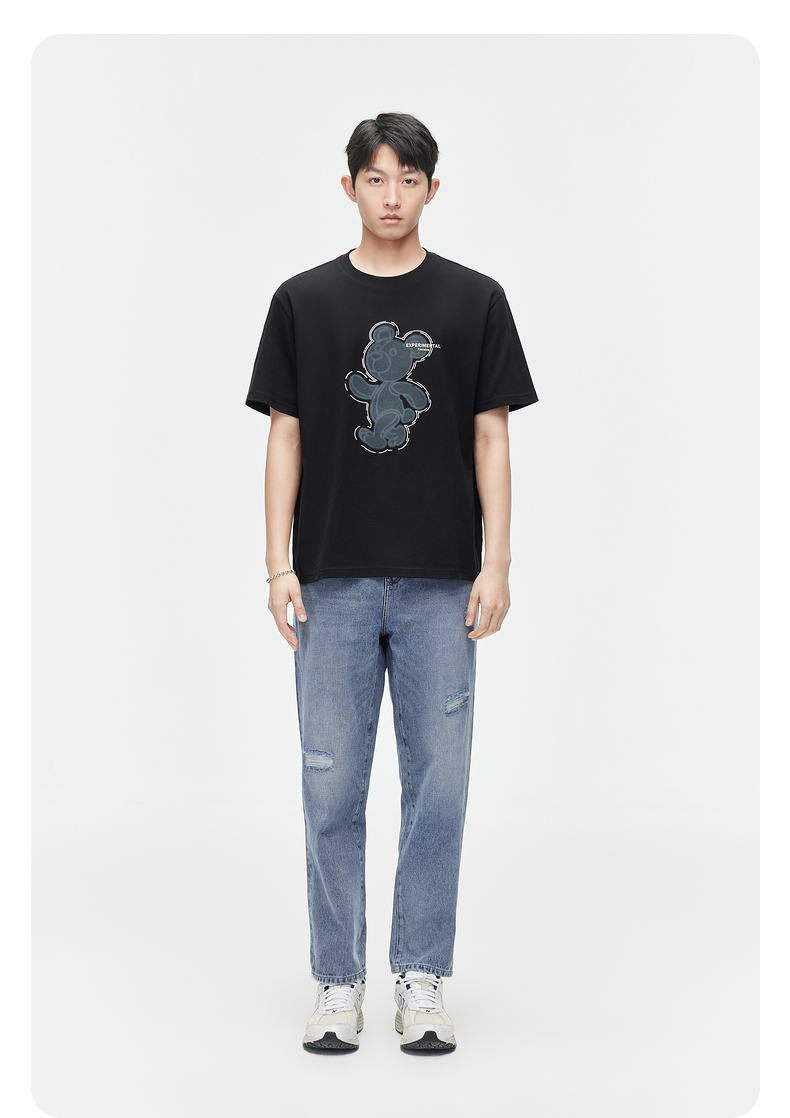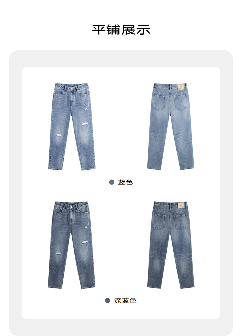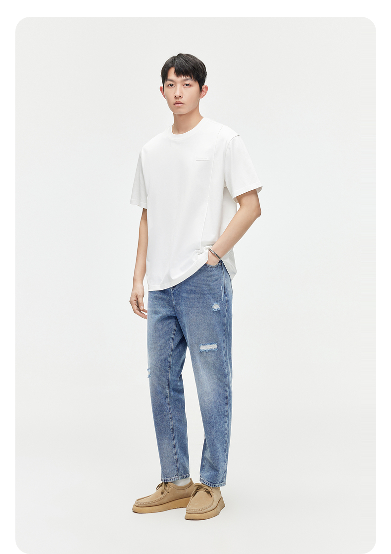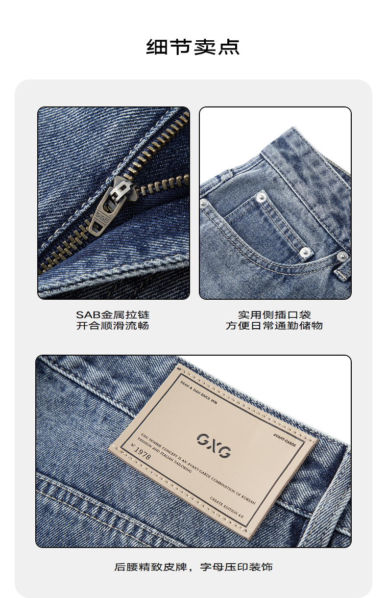 GXG夏季牛仔裤破洞设计宽松锥形牛仔裤男长裤