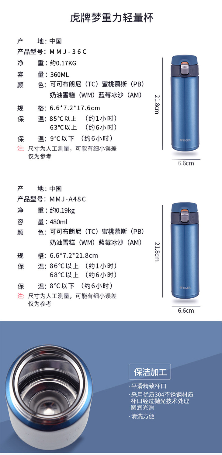 tiger虎牌弹跳盖保温杯时尚新色360ML 480ML MMJ-A系列