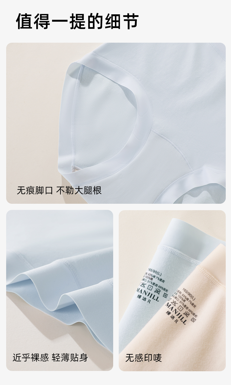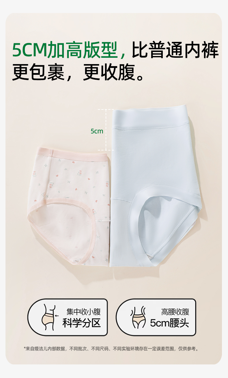 【5条盒装】熳洁儿 10A抗菌基础百搭高腰纯色内裤微收腹纯棉底档26262103