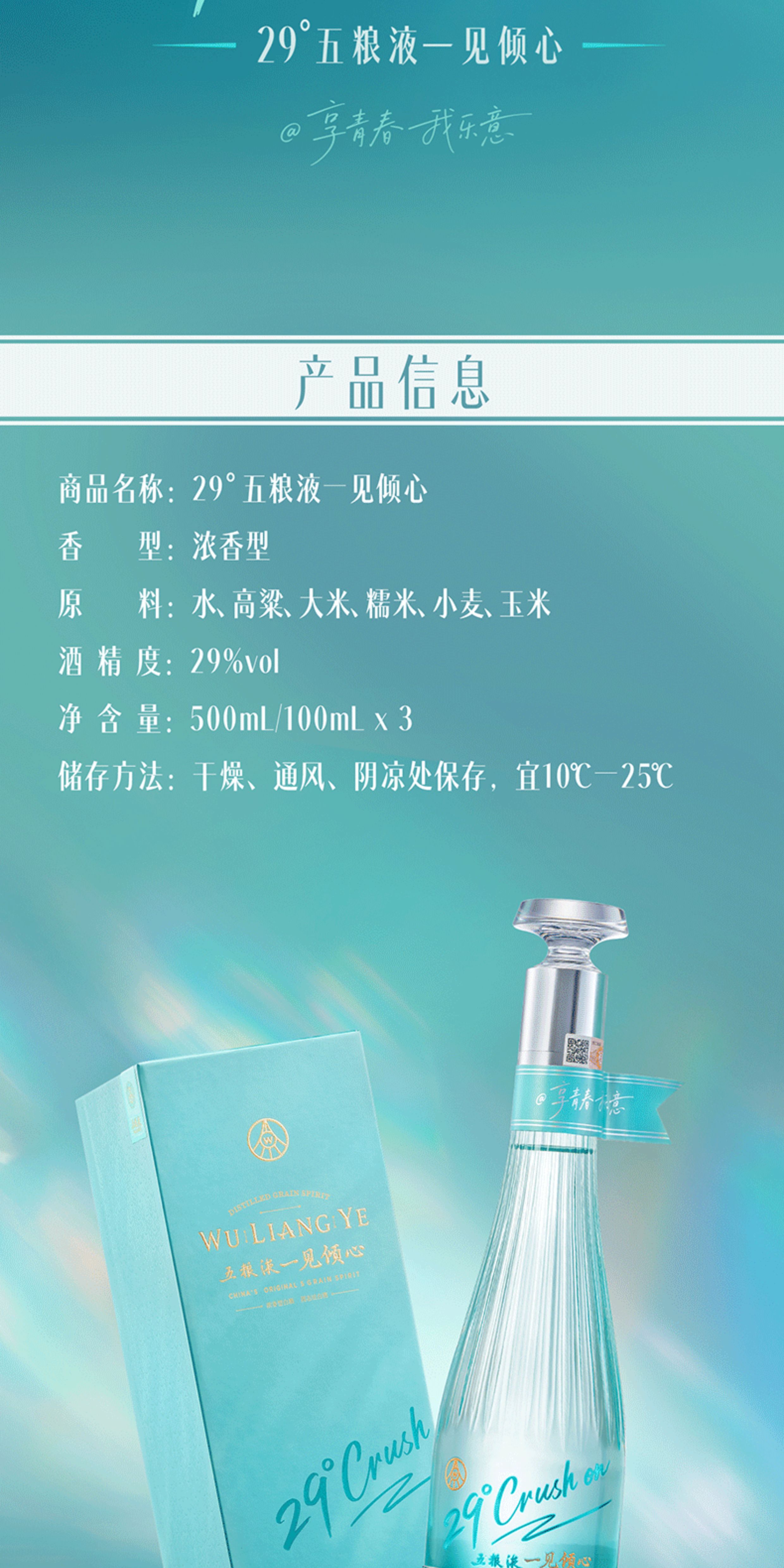 五粮液·29度系列·一见倾心 29度 100mL*3瓶