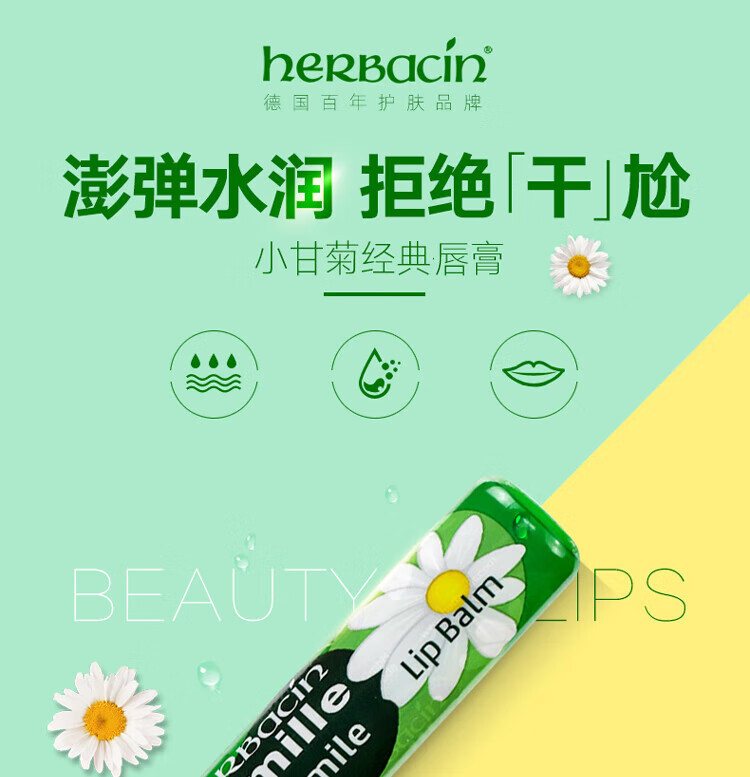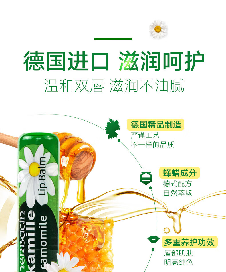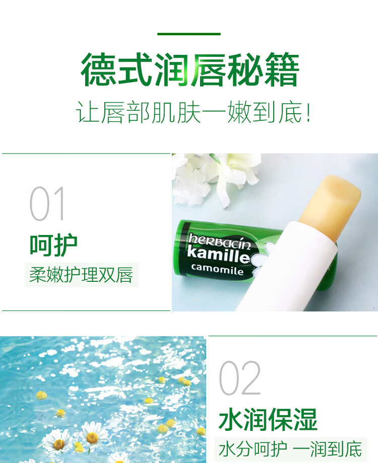 (Herbacin)德国小甘菊经典修护唇膏保湿补水 4.8g