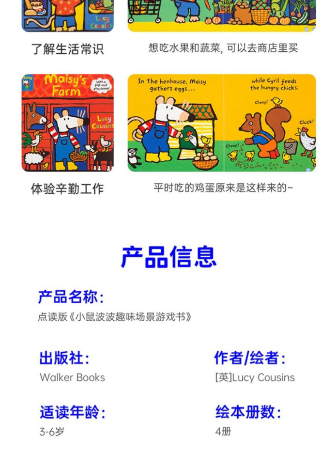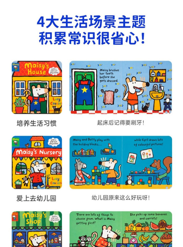 【英文原版】小彼恩小鼠波波趣味场景游戏书 套装4册 英文原版 点读版Maisy Complete with Durable Play Scene