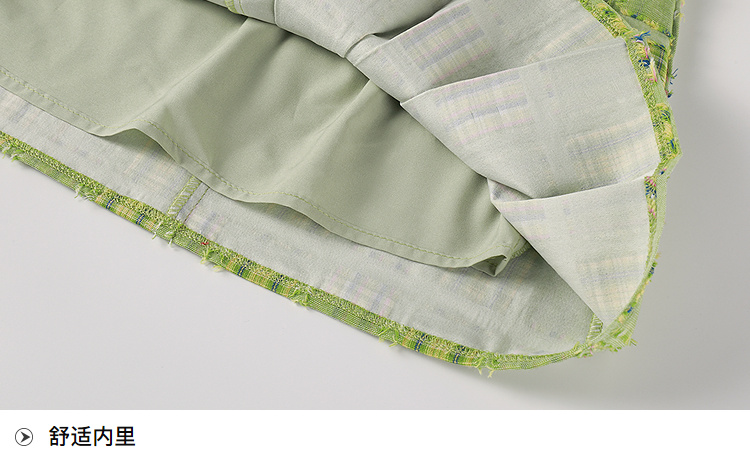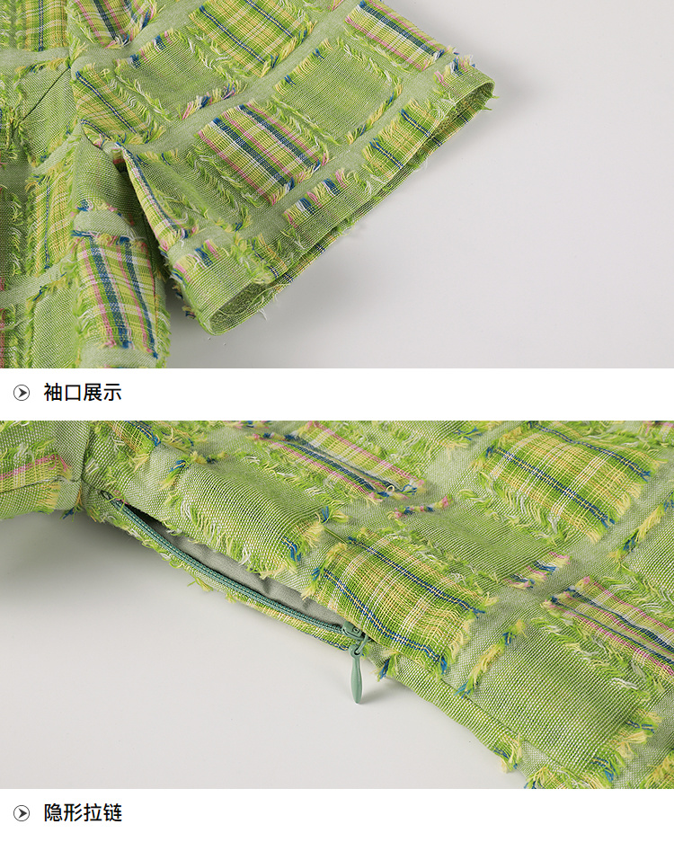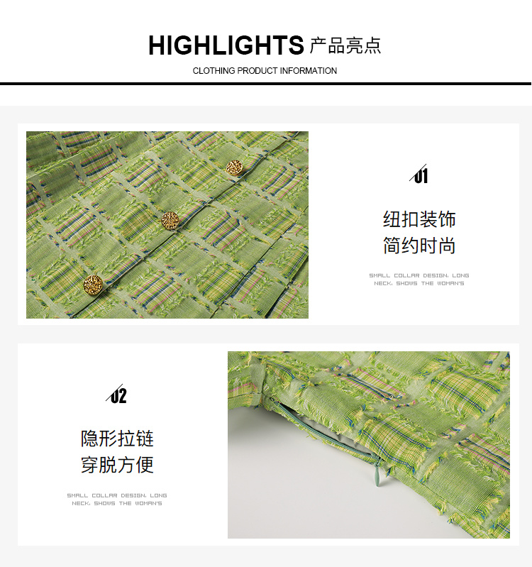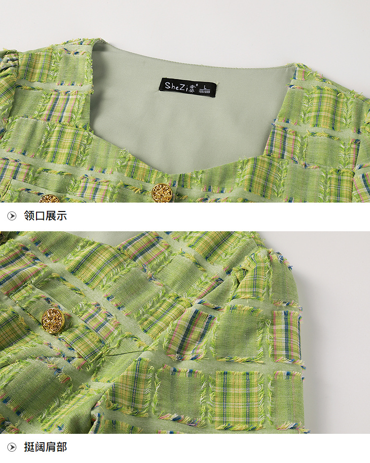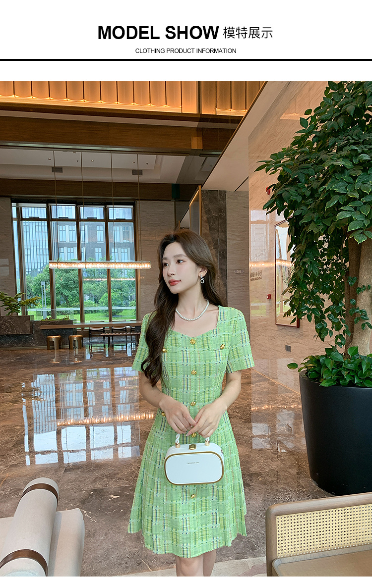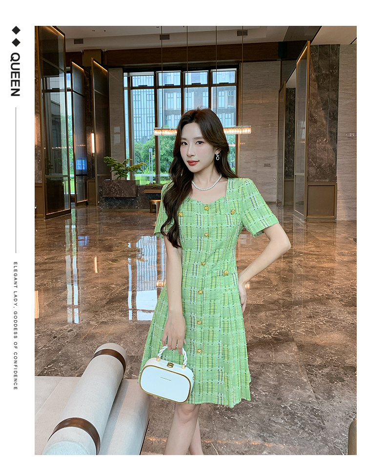 奢姿大码女装2025年夏季新款时尚复古方领格纹短袖百褶连衣裙子9952869830
