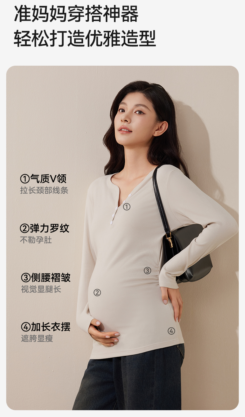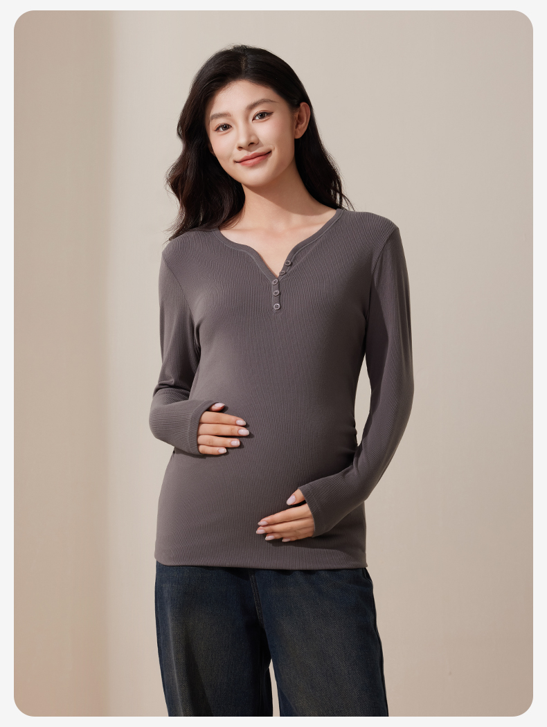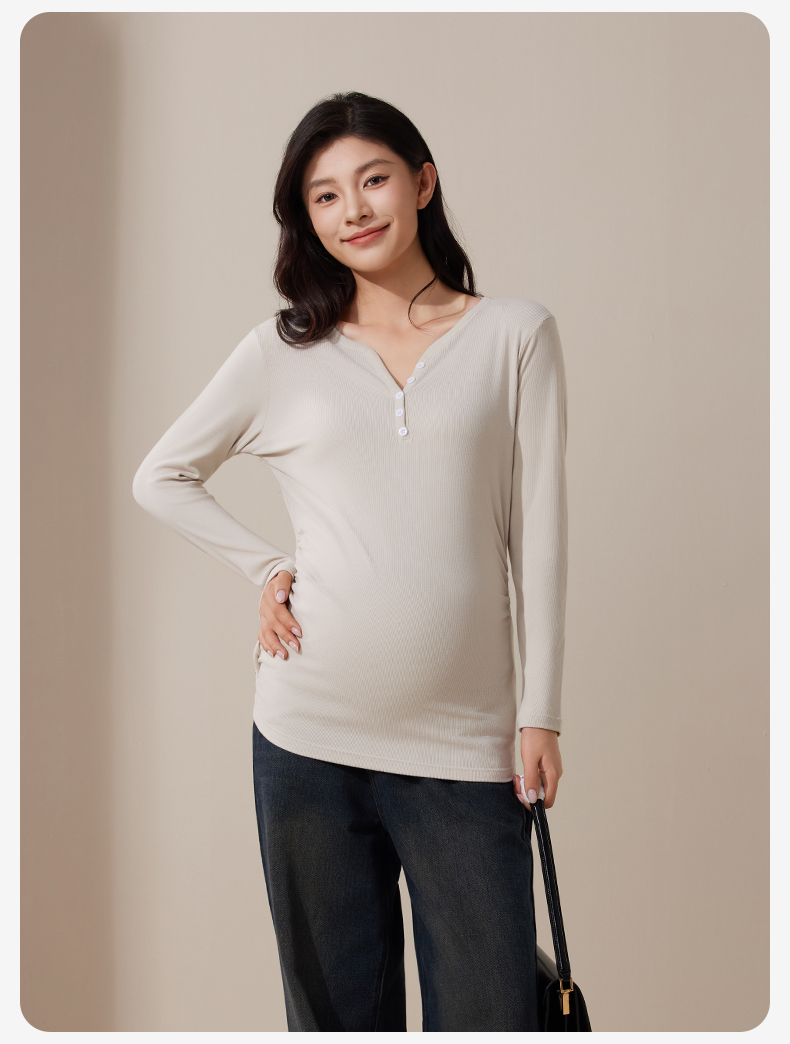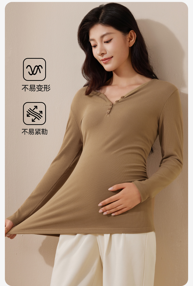 孕妇V领打底衫秋衣产后秋冬款保暖内衣产妇打底内搭上衣