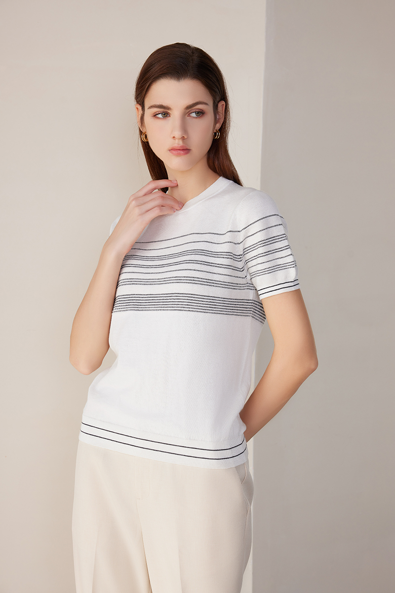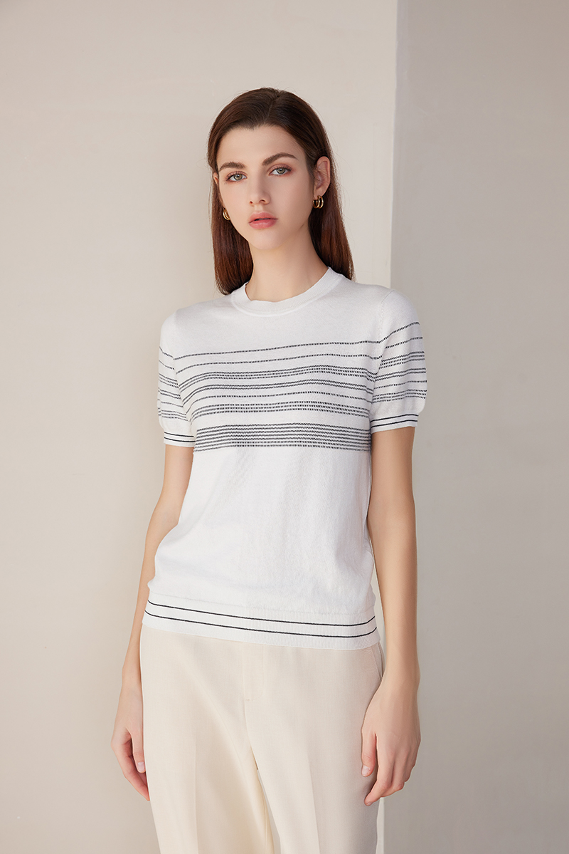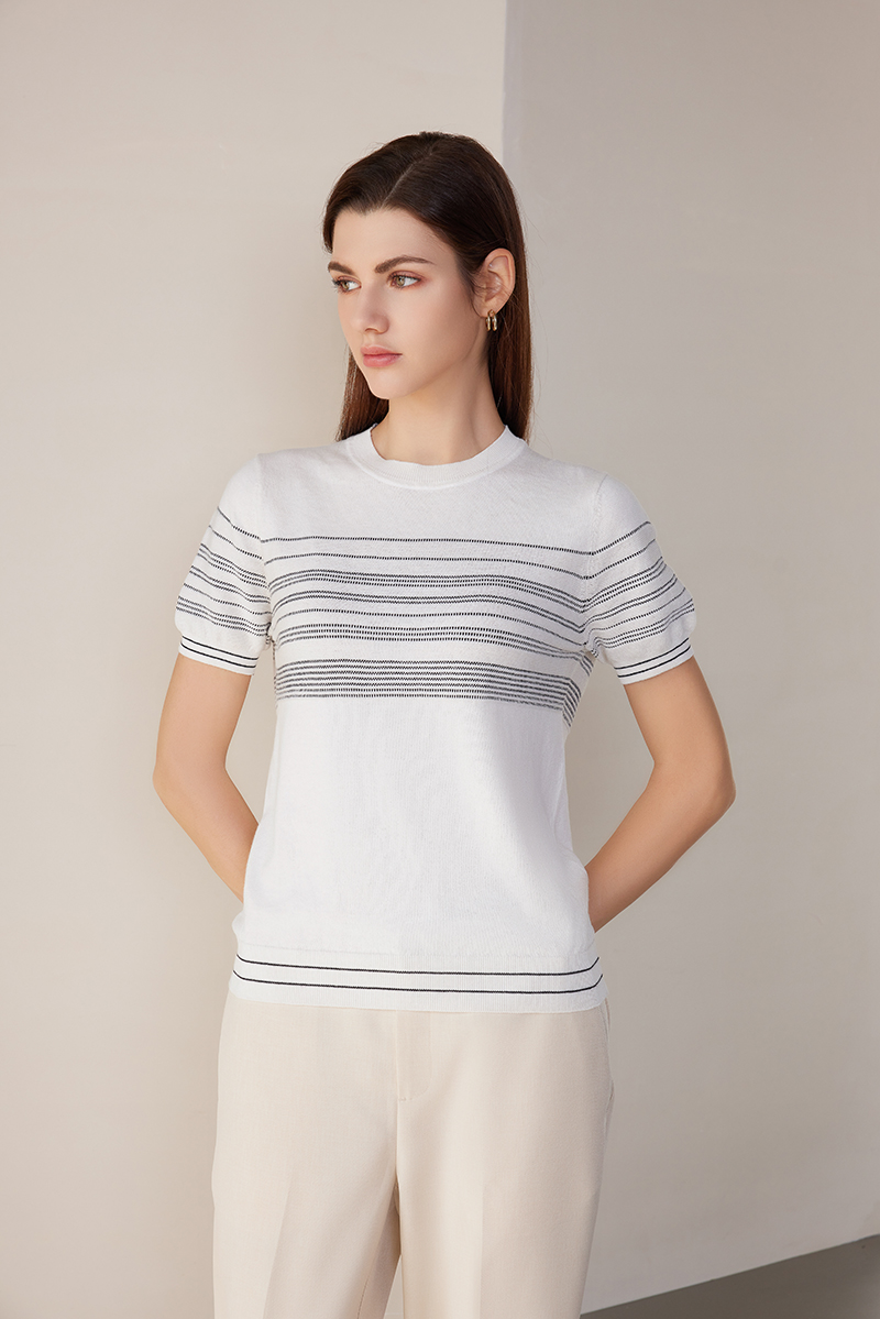 【白色黑条纹撞色毛衣】2024夏季新款时尚黑白条纹短袖毛衣