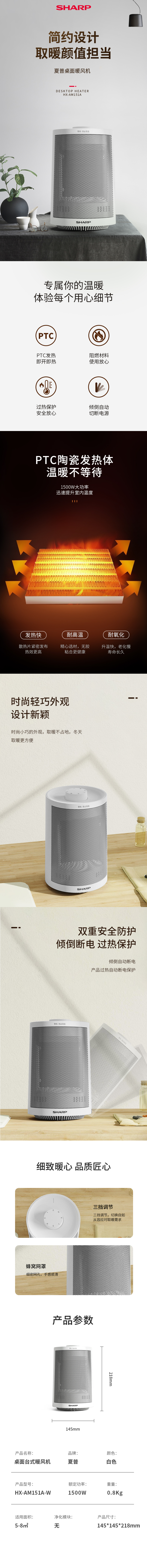 夏普桌面小圆桶暖风机HX-AM151A-W(白)-S