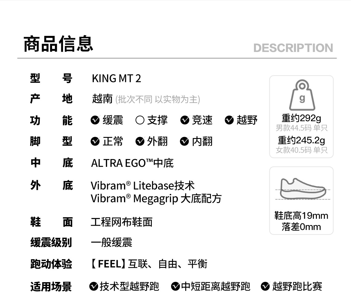 ALTRA奥创 King MT 2轻量缓震越野跑鞋男女户外山地防滑徒步鞋