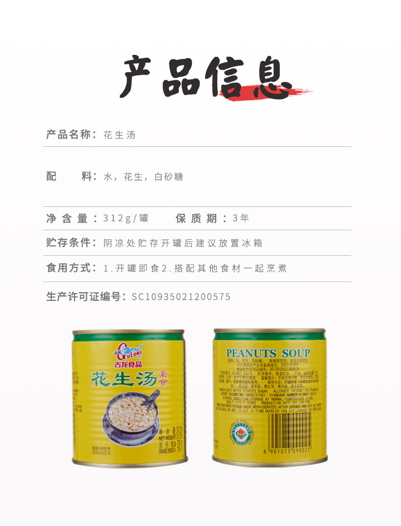 【到手3罐】古龙花生汤/1份(312g*3罐)生产日期:25年3月