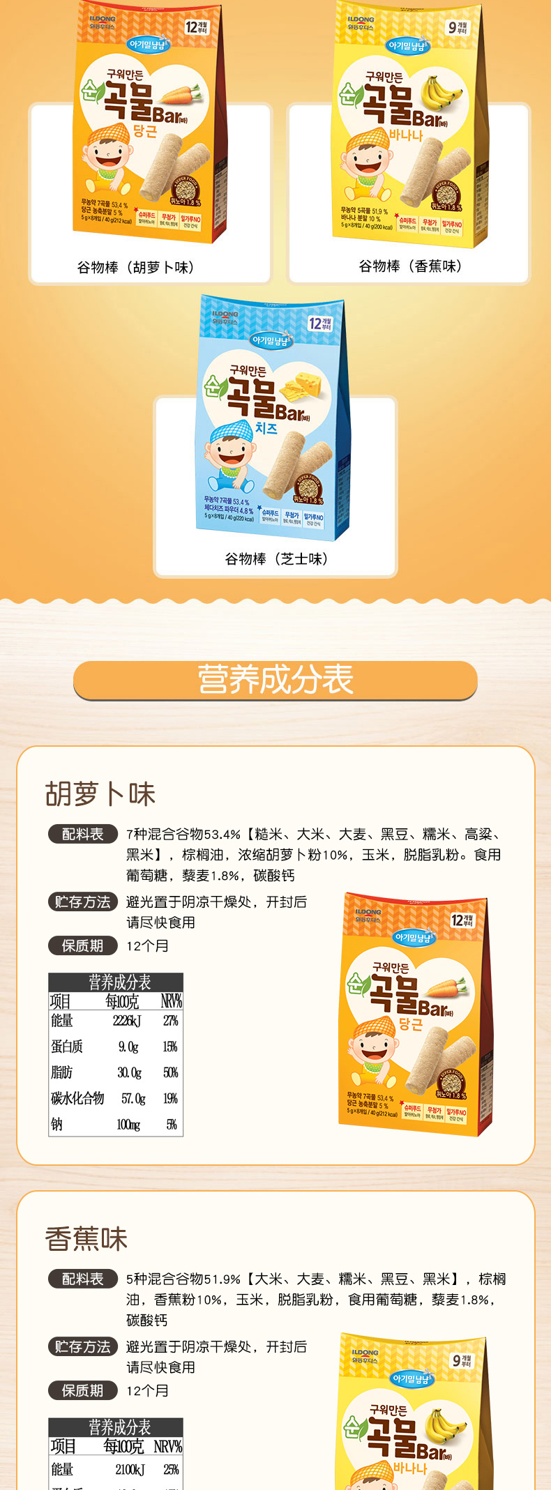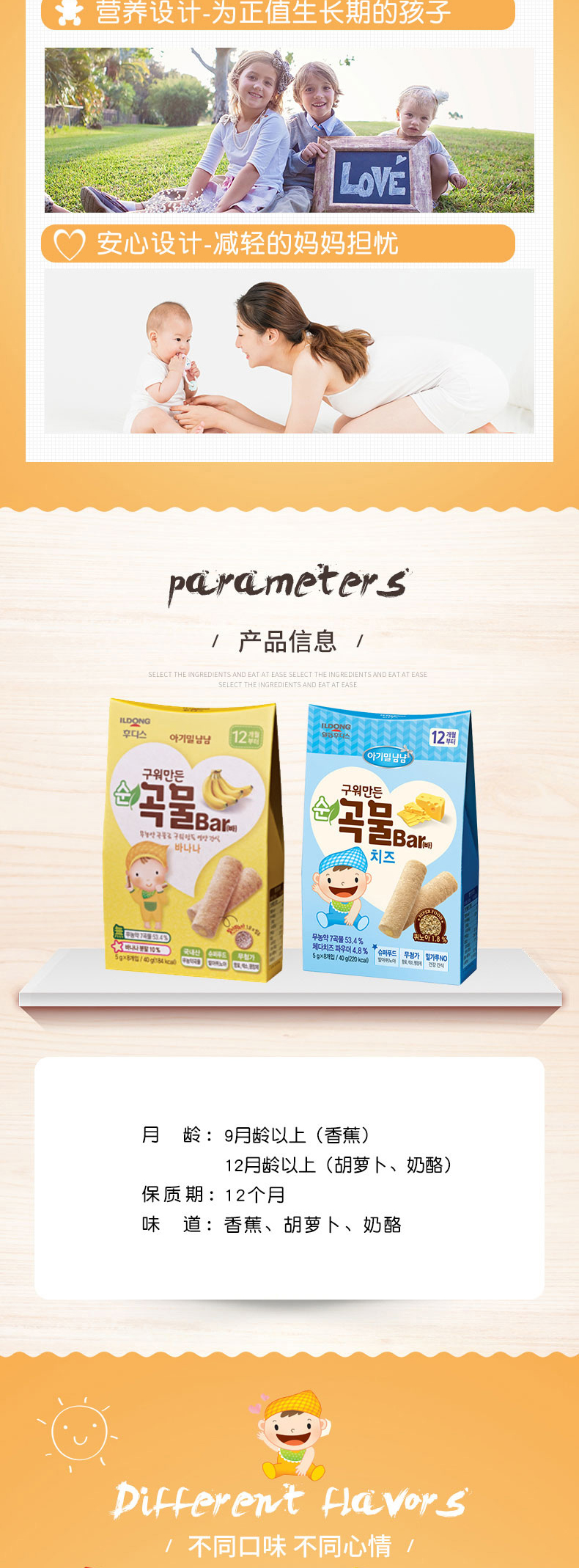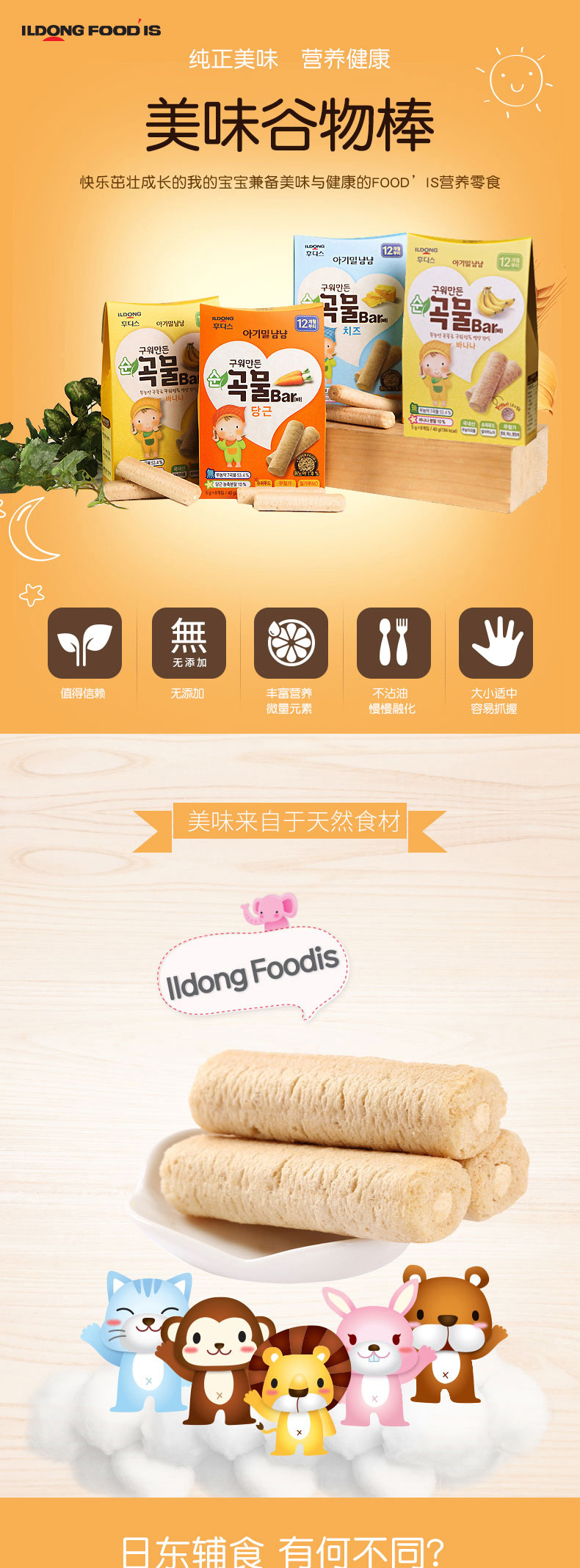 【3盒装】日东福德食谷物棒1岁+【3种口味】韩国进口 宝宝零食