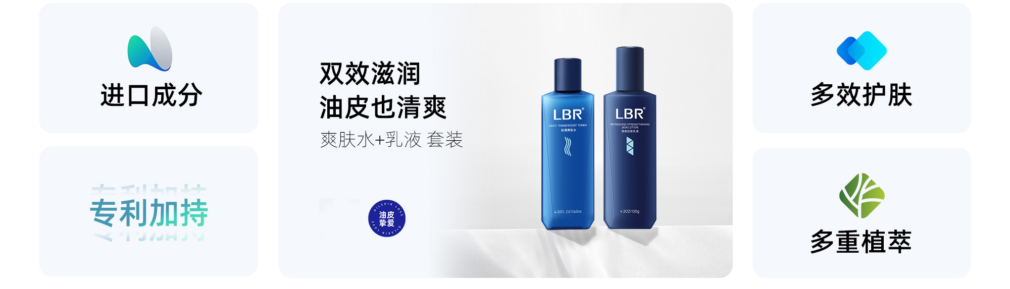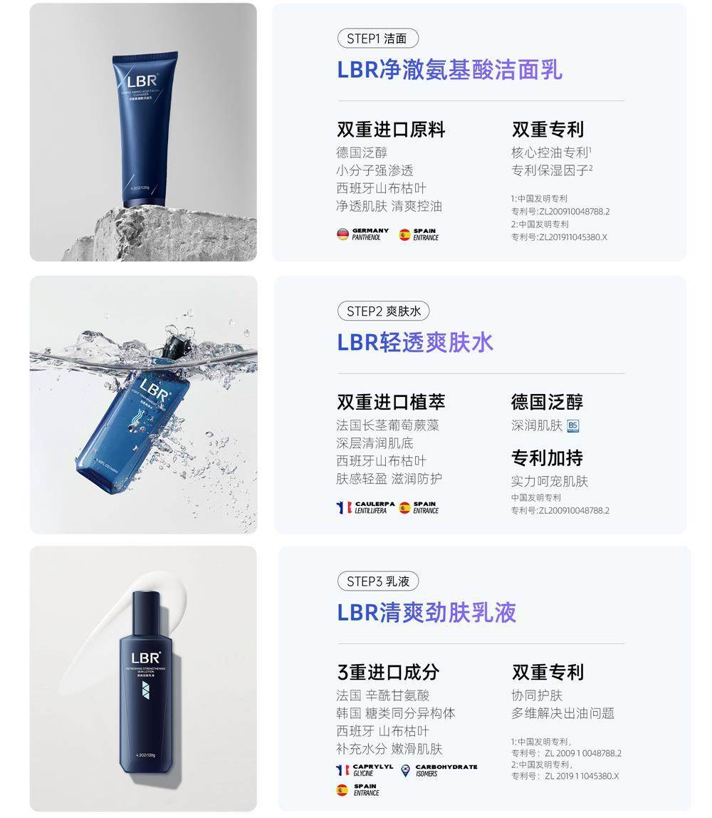 LBR护肤品套装三部曲氨基酸控油洗面奶舒缓保湿补水乳男油皮