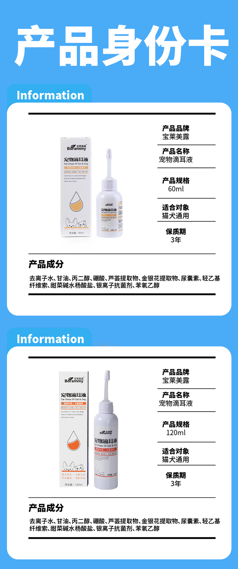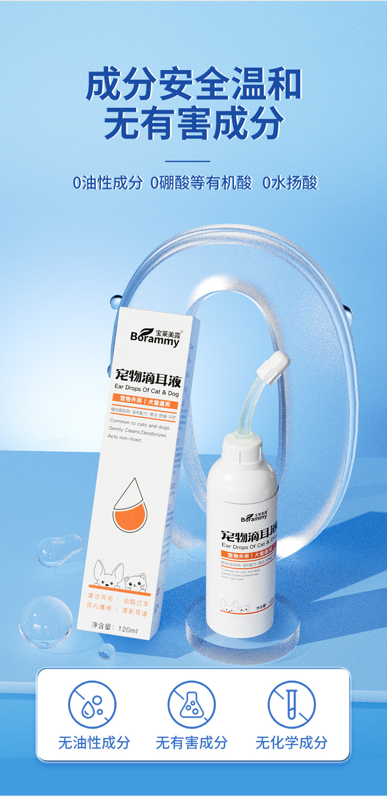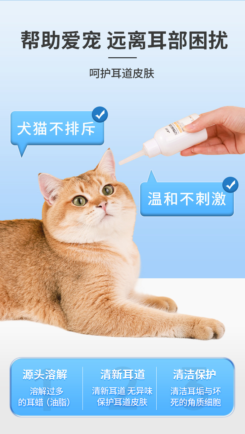 宝莱美露 宠物洁耳液120ml狗狗耳道清理 猫咪除耳臭清理耳螨滴耳液洗耳水