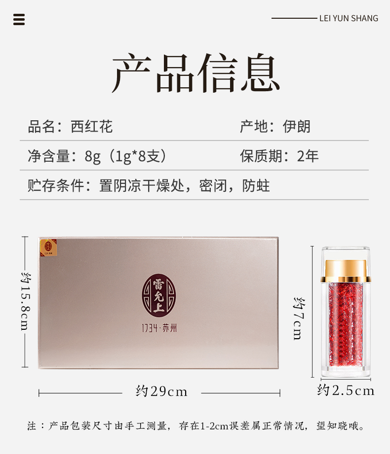 雷允上直营 |伊朗进口西红花8g礼盒装 大容量 一天3-4根 可喝半年 女神好物