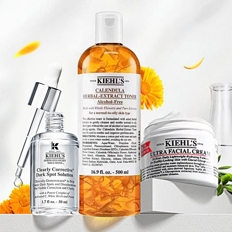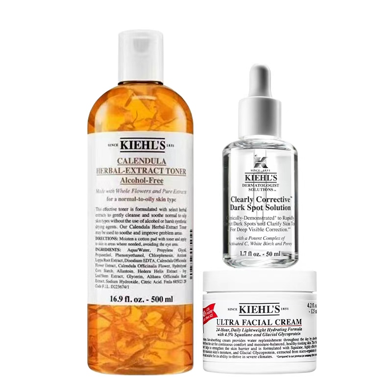 【品牌授权】科颜氏金盏花500ml 科颜氏高保湿面霜125ml(新版) 科颜氏美白精华50ml 礼盒礼袋