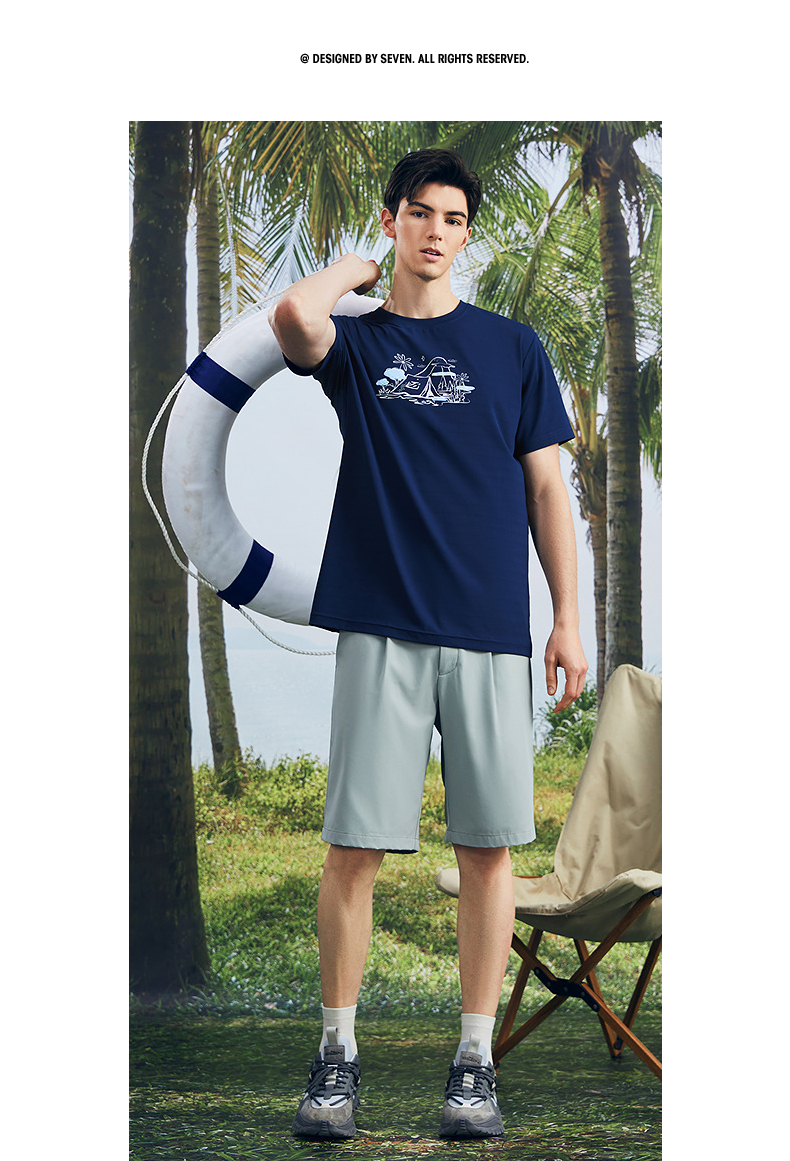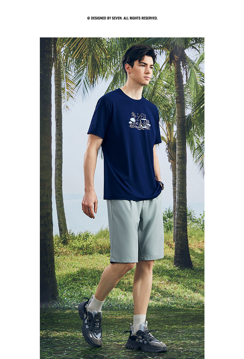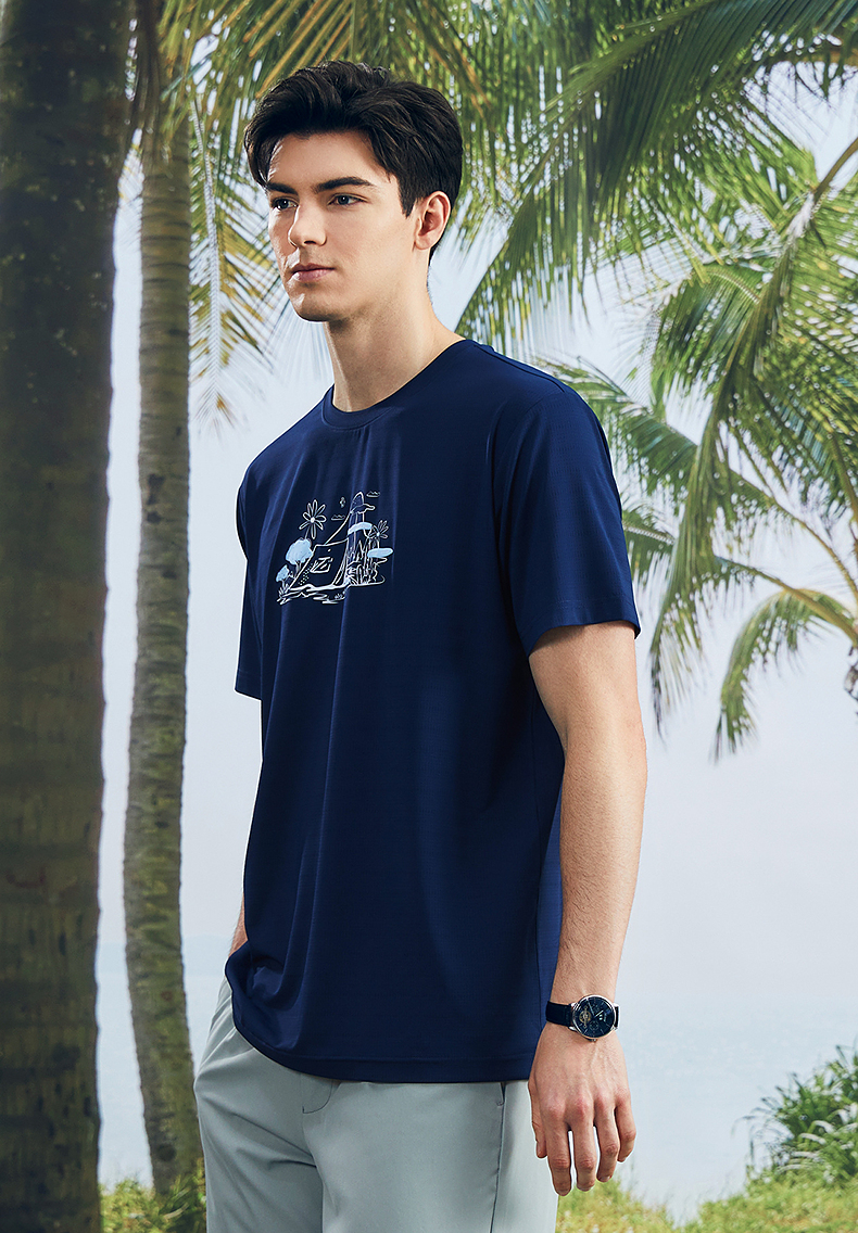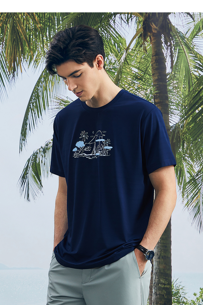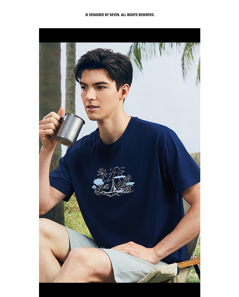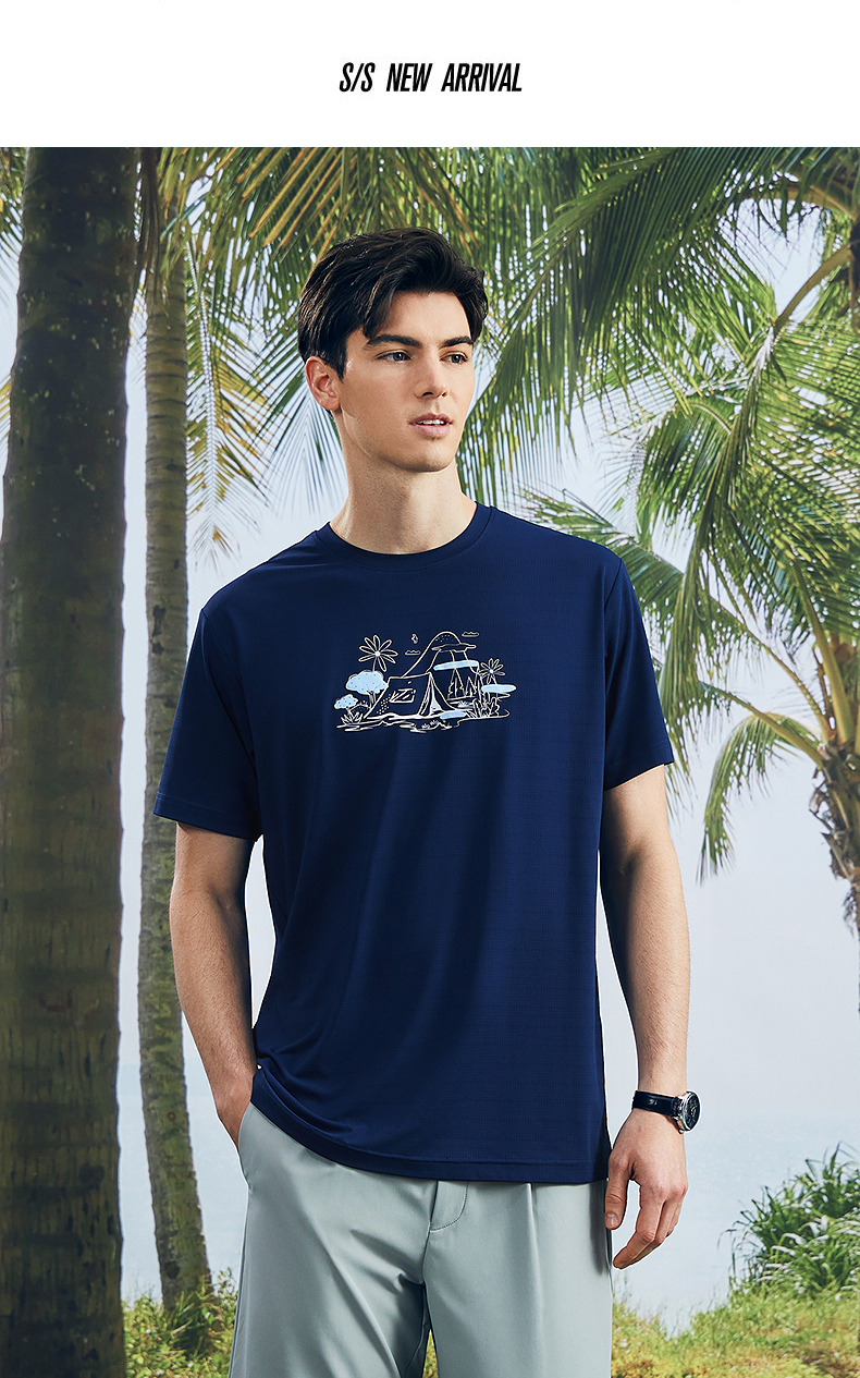 柒牌弹力短袖T恤男夏季新款时尚潮流中青年透气网眼圆领休闲上衣 126T73500