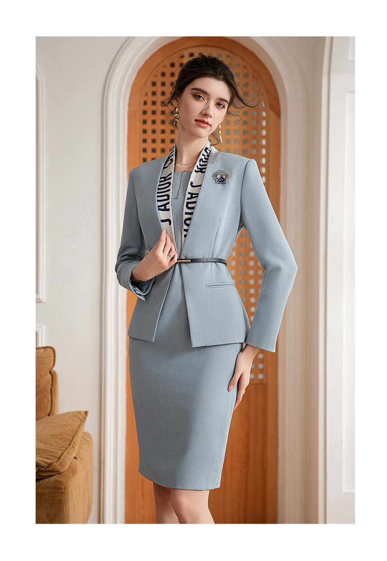 IWY/时尚雾霾蓝西装套装女高端播音主持人正装套裙气质女神范职业装C1638+Q812
