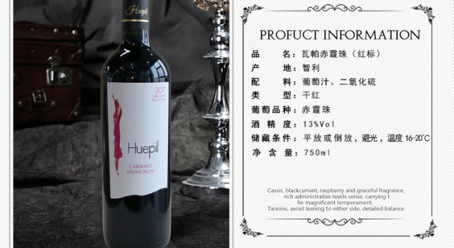 智利进口 Huepil 瓦帕赤霞珠有机红葡萄酒 750ml/瓶 (红标) 包邮