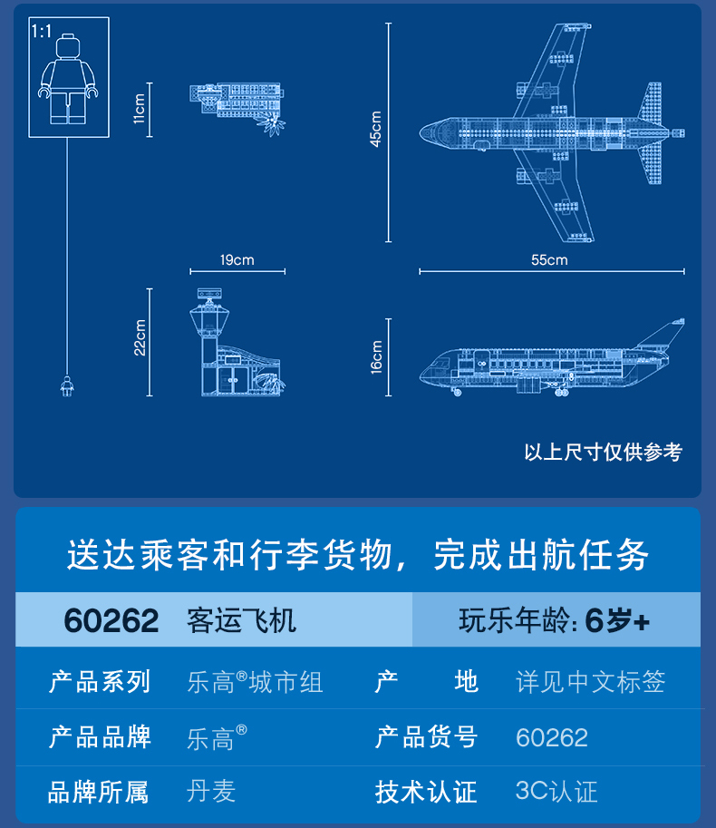 乐高LEGO城市客运飞机LEGC60262儿童小颗粒积木拼装