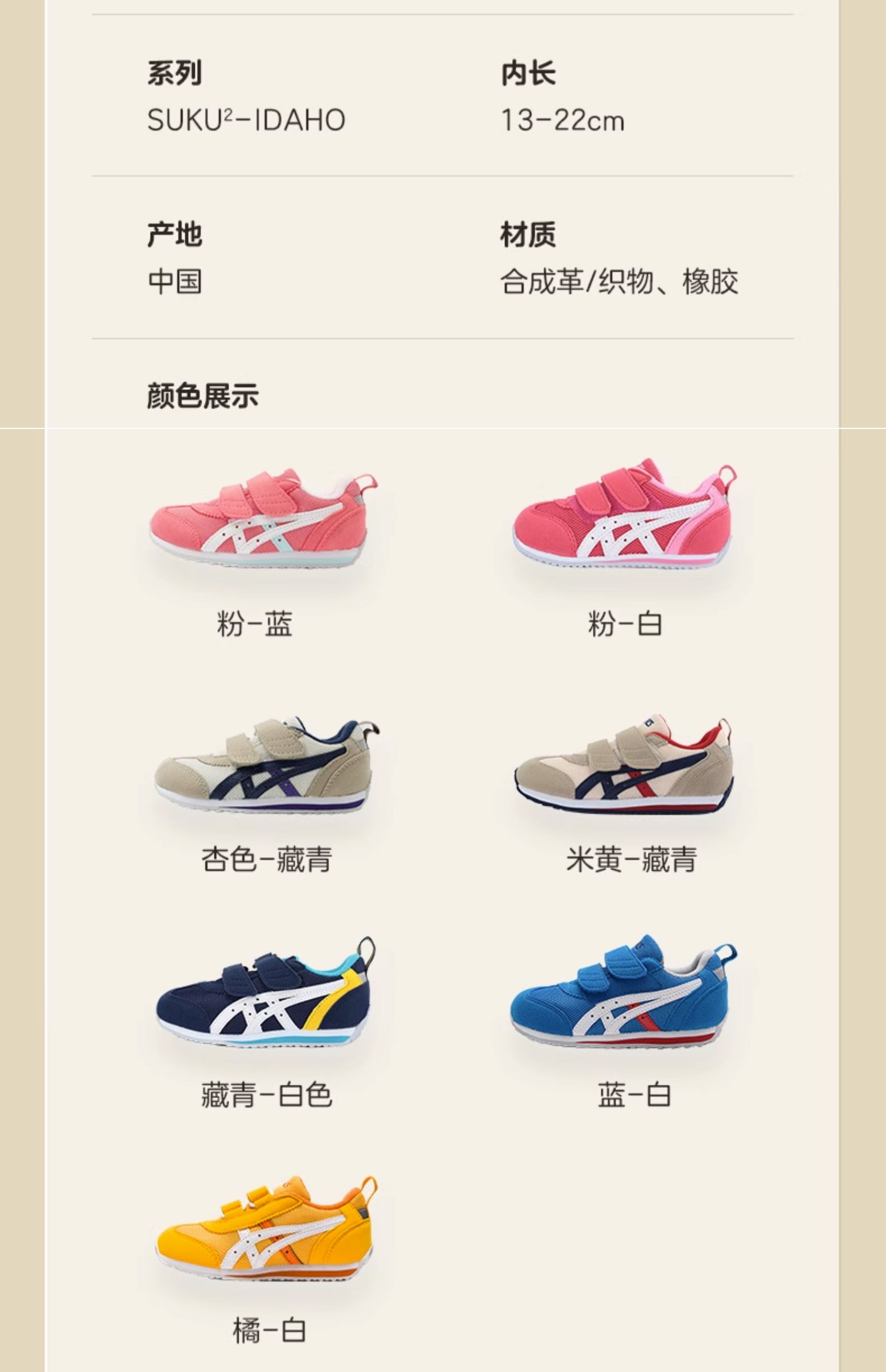 温馨提示:亚瑟士童鞋偏小一码,请根据鞋子内长拍相应码数