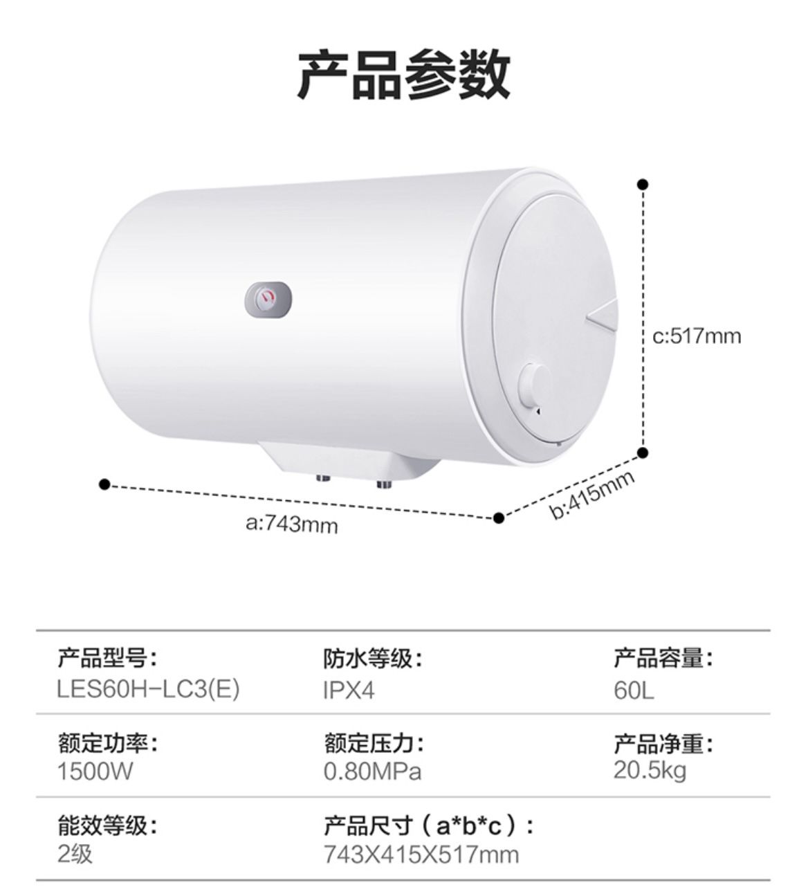 统帅(Leader)电热水器LES60H-LC3(E)(海尔出品)