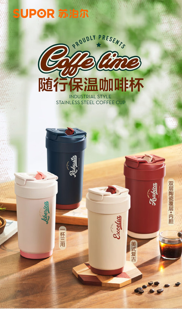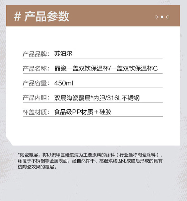 苏泊尔晶瓷一盖双饮保温杯KC45KR10