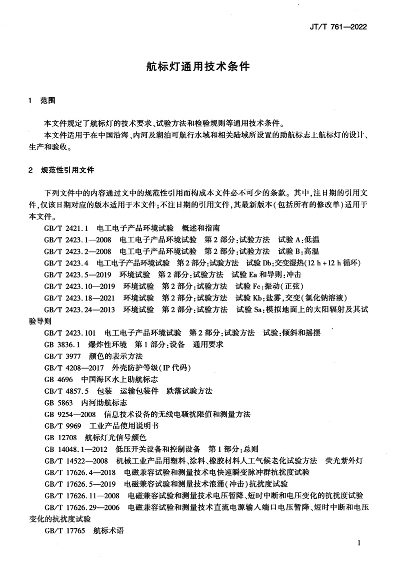 书名:航标灯通用技术条件(JT/T 761—2022)