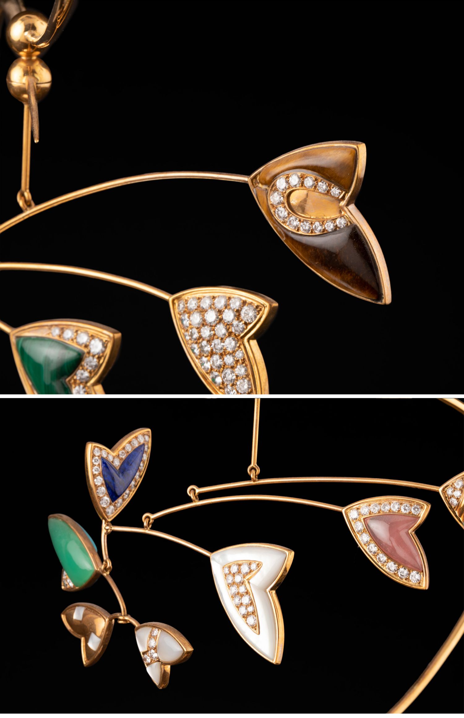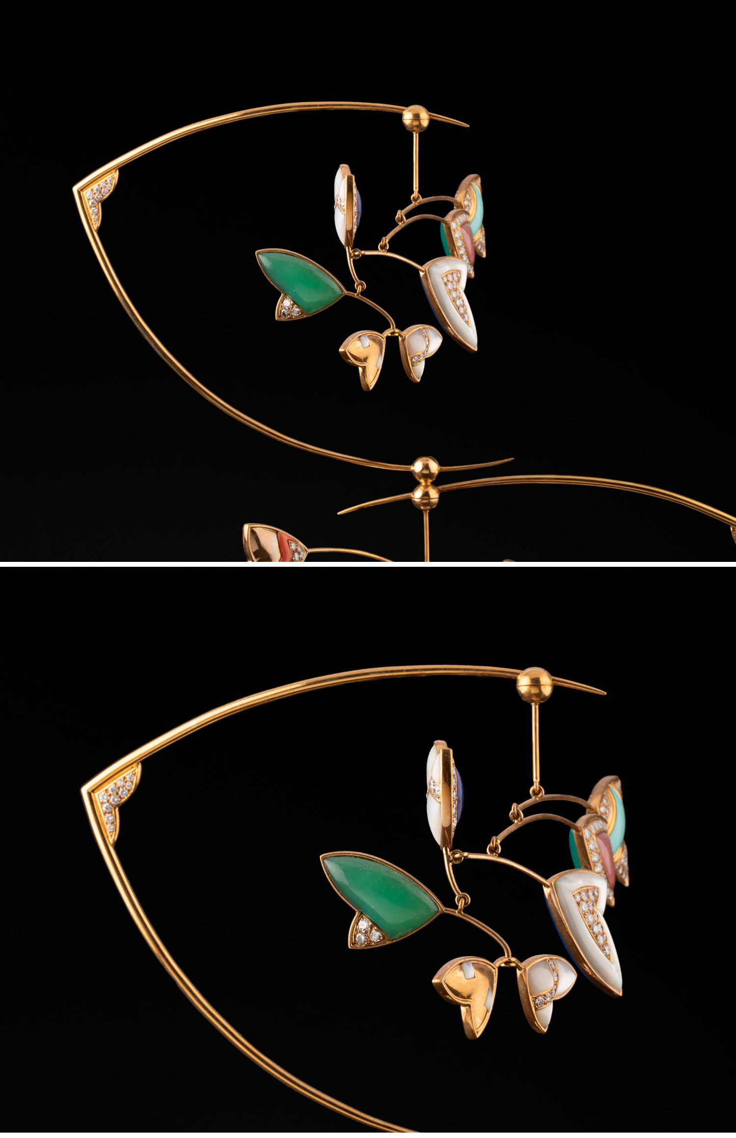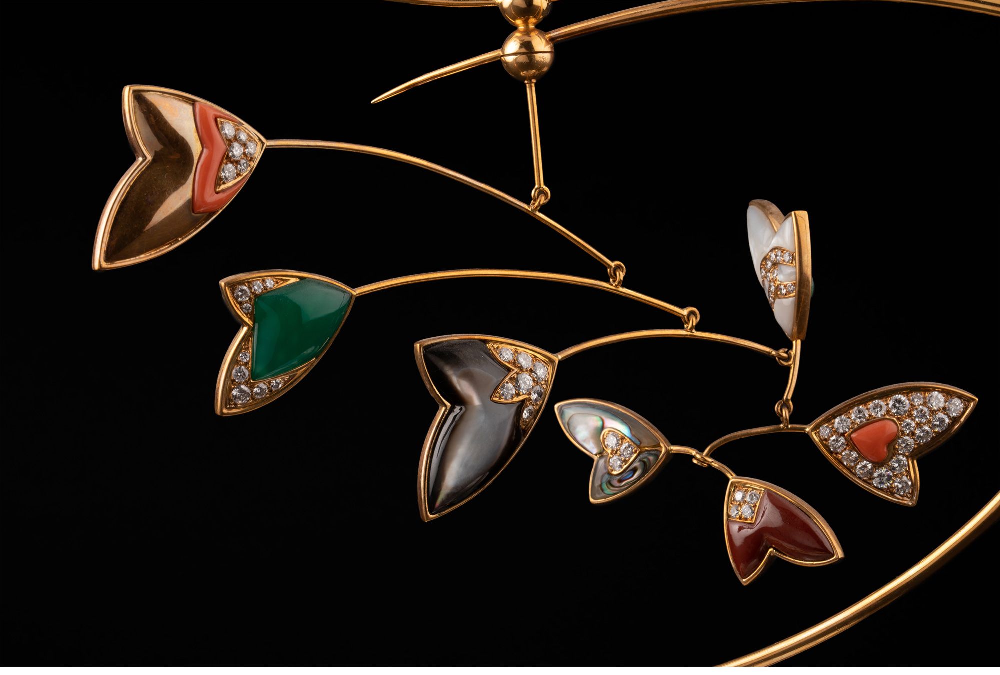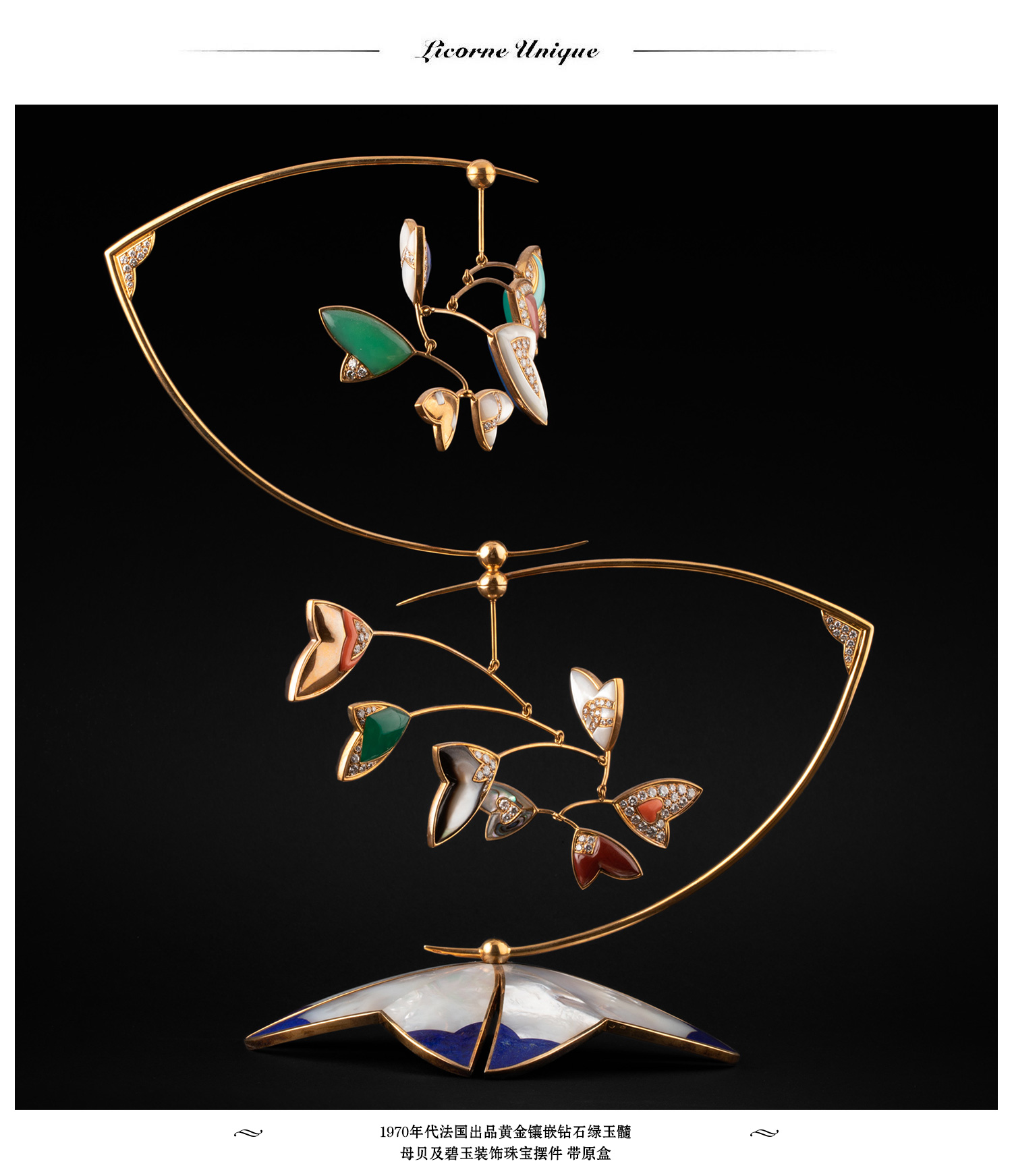 独角鹿西洋古董黄金镶嵌钻石绿玉髓母贝碧玉装饰珠宝摆件带原盒