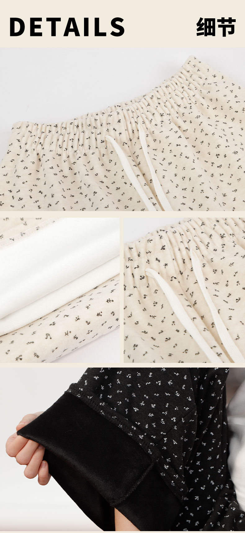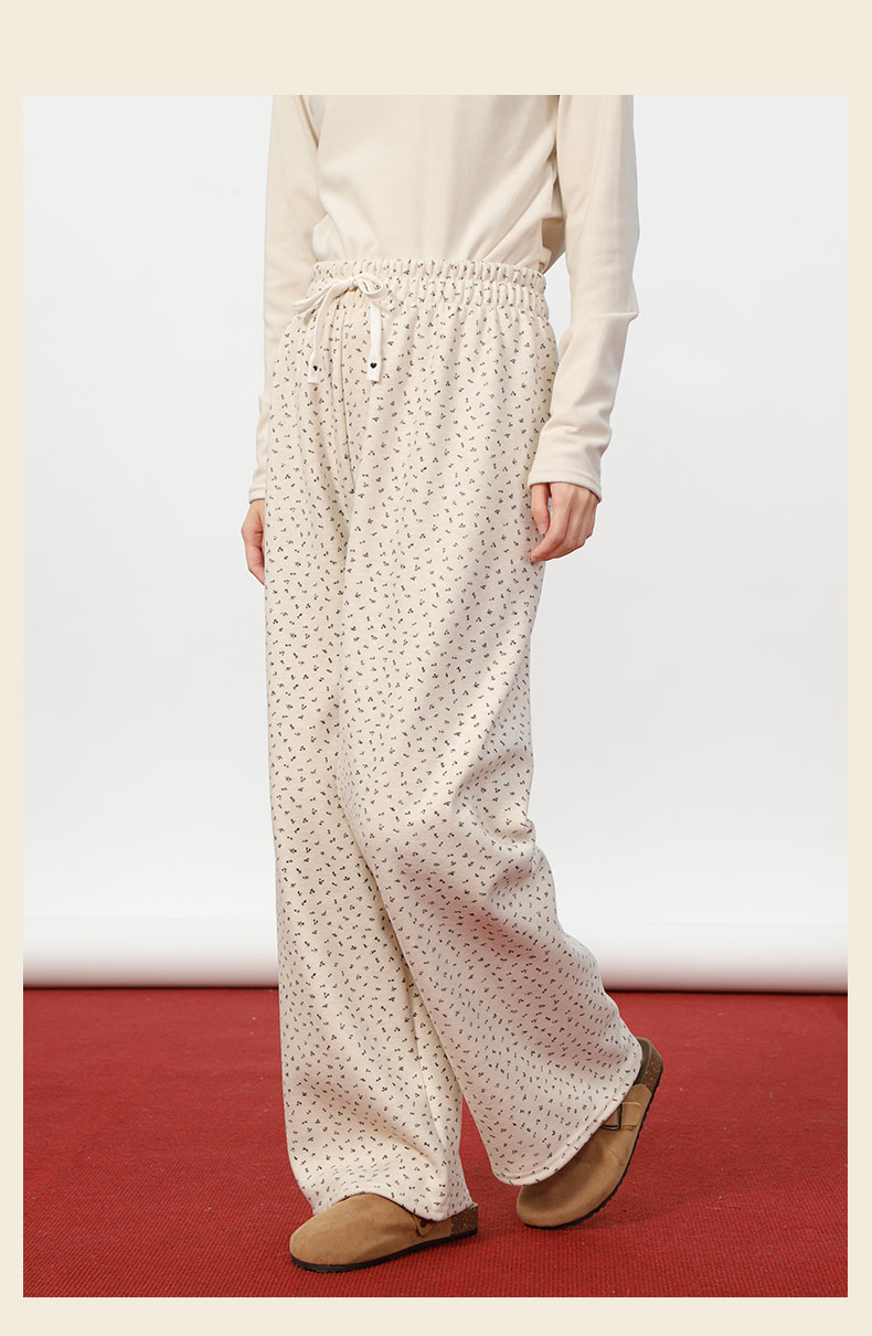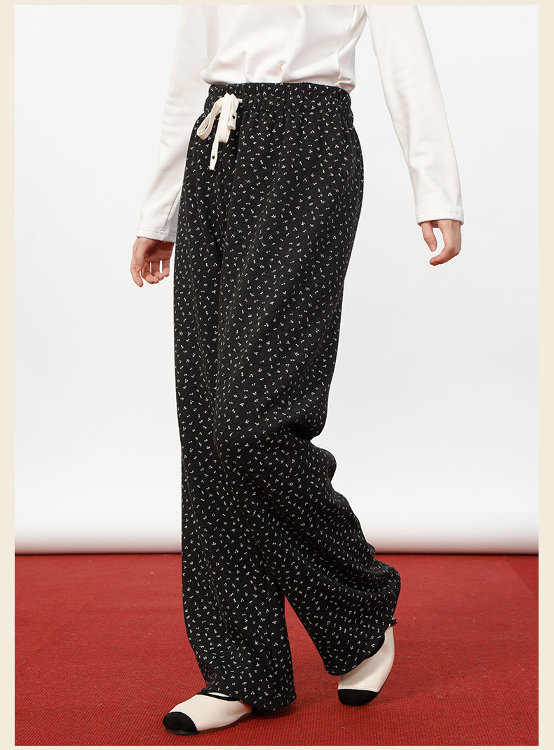 复古小碎花女秋冬高腰显瘦垂感宽松慵懒风碎花裤-纪念日百货门店同款167896718