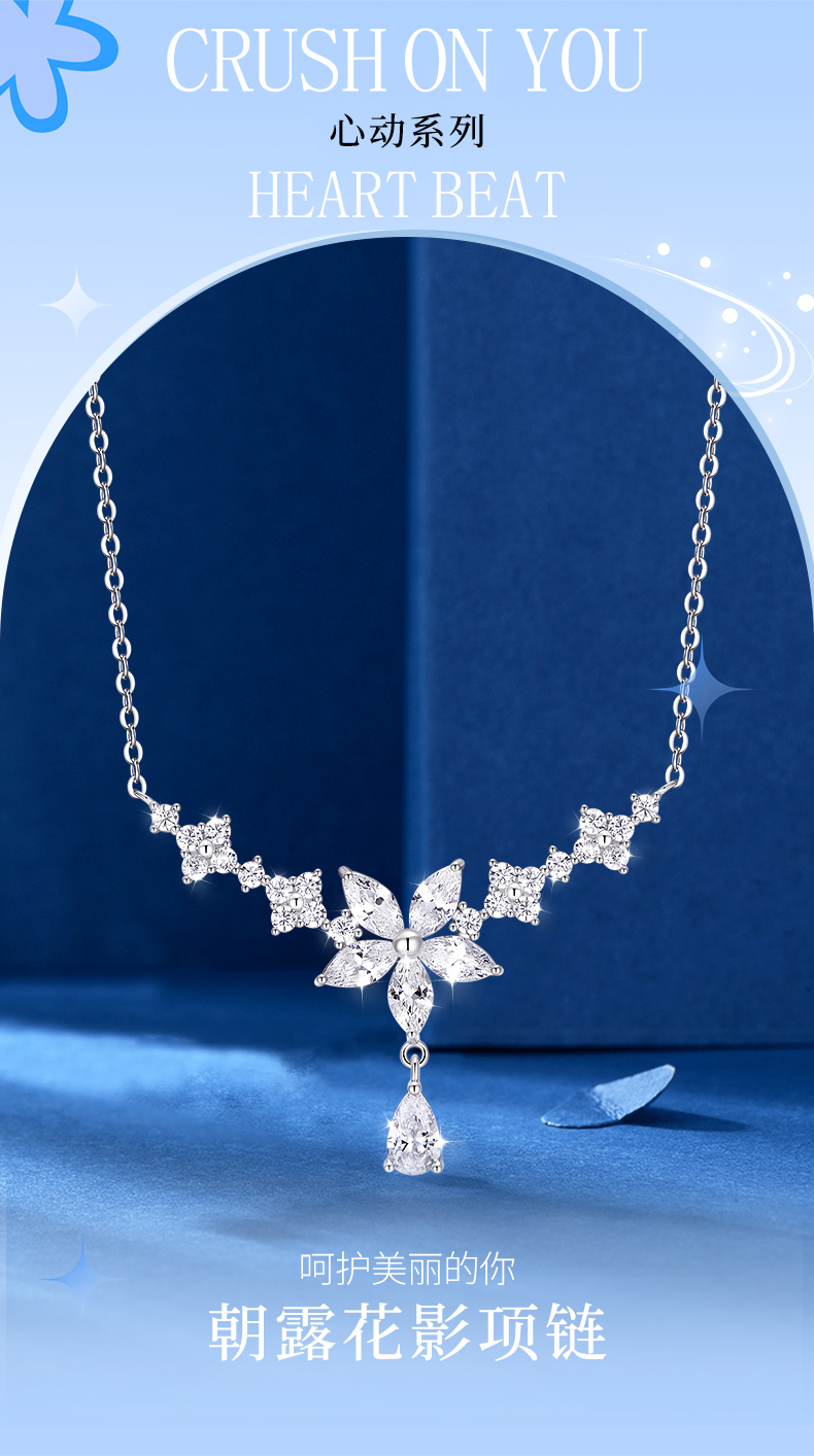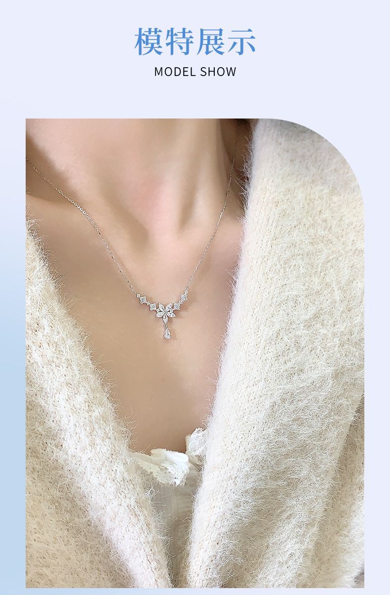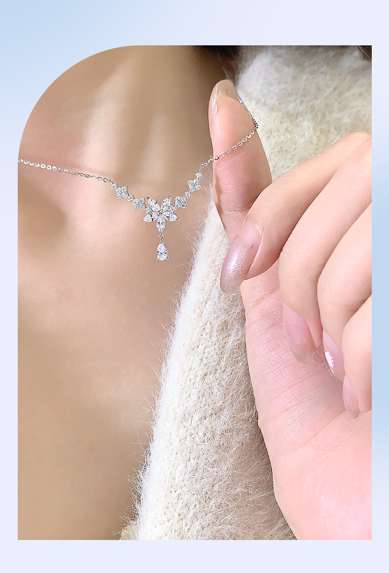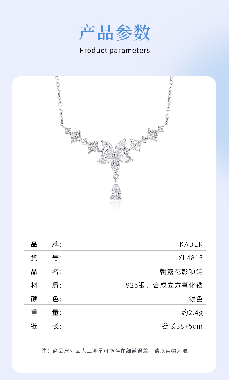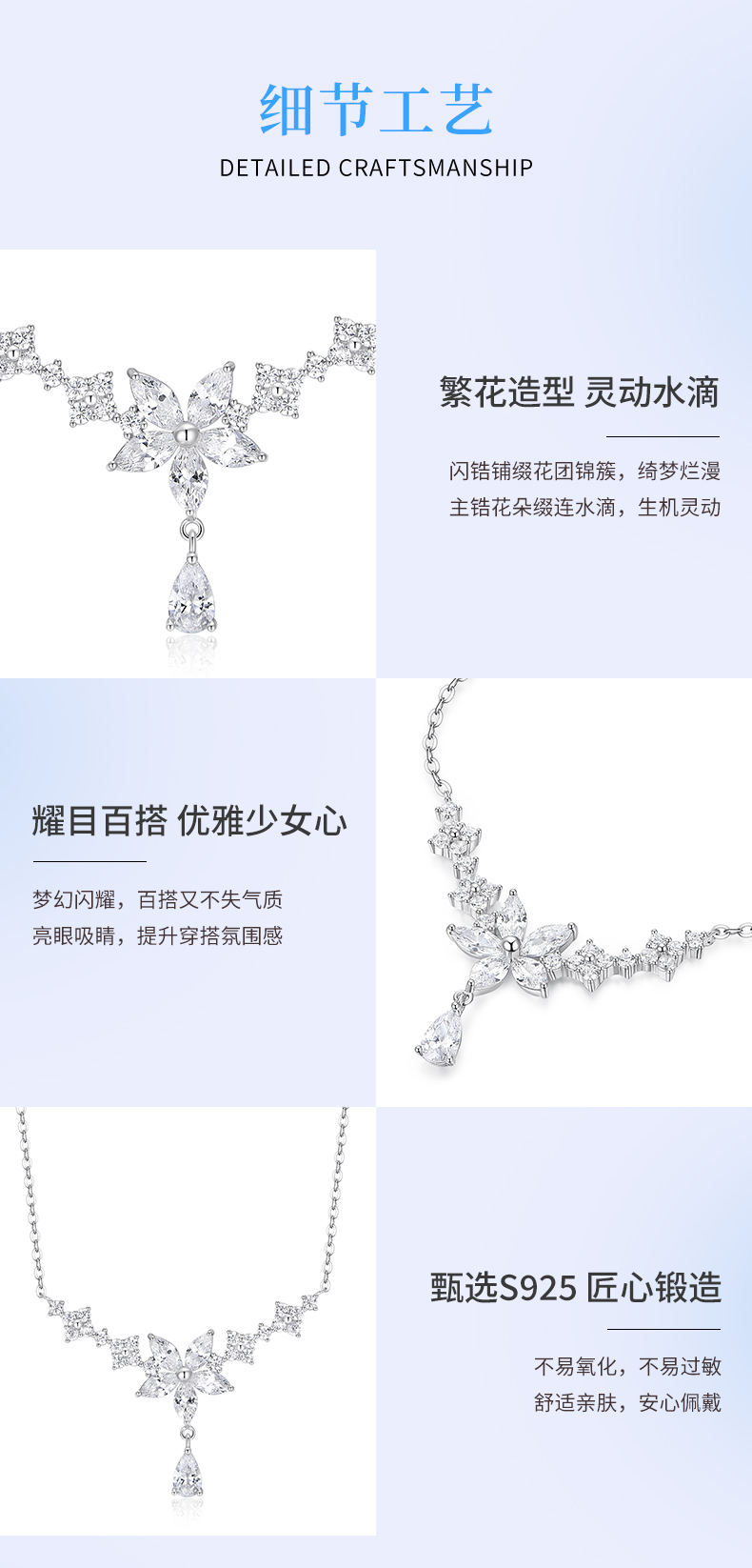 卡蒂罗/KADER 朝露花影项链 璀璨繁花满镶宝石闪耀吸睛设计可调节流苏锁骨链 灵动水滴梦幻甜美吊坠 925银