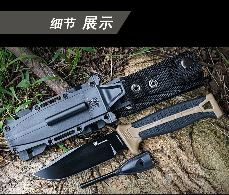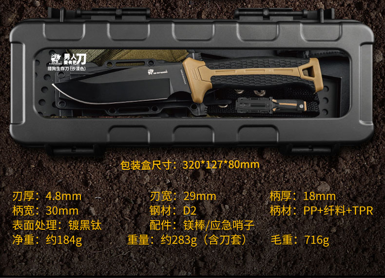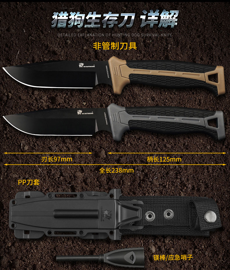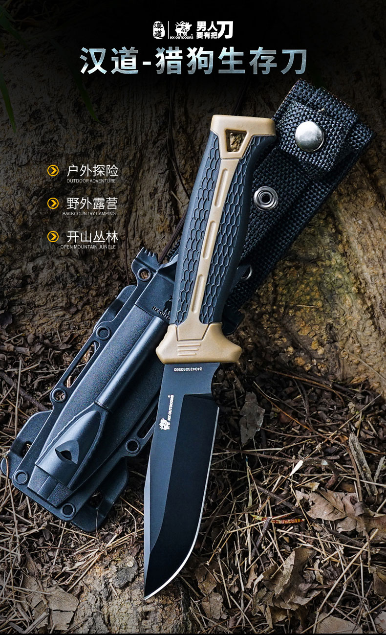 汉道【猎狗生存刀】D2钢荒野求生刀野外露营防身刀高硬度户外锋利直刀随身战术刀