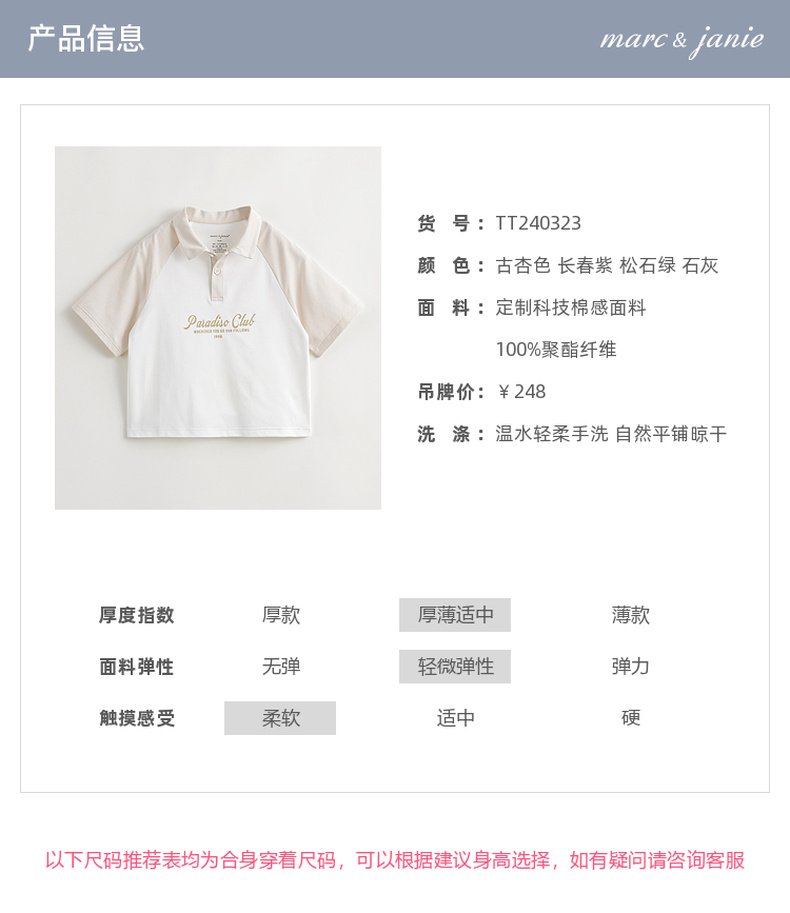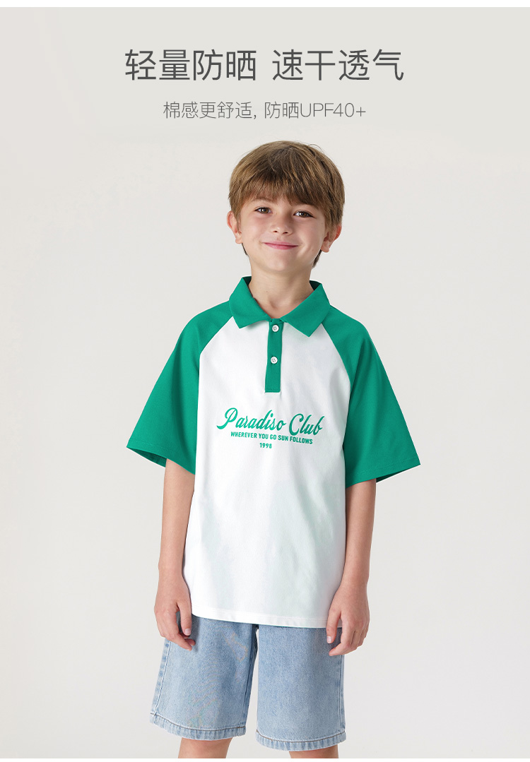 【棉感速干】马克珍妮2024年夏装新款男女童撞色短袖polo衫240323